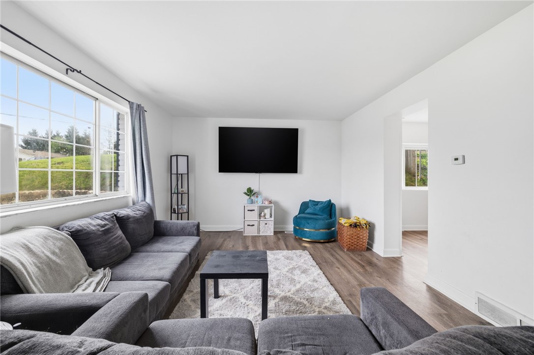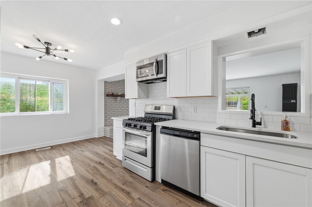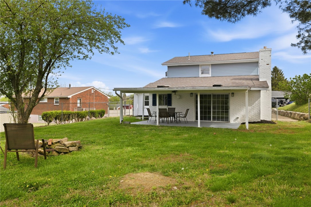 WELCOME HOME to this move-in ready gem in the heart of North Fayette! IDEAL LOCATION - just minutes from Pittsburgh International Airport, Rt. 22/30 & the Montour Walking Trail, plus only a quick drive to Robinson Town Center, shopping, dining & MORE! Step inside to a BRIGHT, SPACIOUS main living room filled with NATURAL LIGHT & durable vinyl flooring - creating a warm & inviting atmosphere! The main level also features a DEDICATED dining room, perfect for everyday meals or entertaining, along with a MAIN-LEVEL bedroom offering FLEXIBILITY for a home office, guest space or additional living! The kitchen is BEAUTIFULLY UPDATED with quartz countertops & stainless steel appliances - offering both STYLE & FUNCTION for daily living! Just off the main living space, enjoy a BONUS living room featuring a FUNCTIONING brick woodburning fireplace - perfect for cozy nights & extra living space! Upstairs, you'll find THREE spacious bedrooms showcasing GORGEOUS hardwood flooring & ample closet space throughout! Two FULL bathrooms (one on each level) add everyday convenience & practicality. Additional highlights include a MAIN-LEVEL mudroom/laundry room, making organization easy & efficient! Step outside to your ENORMOUS covered patio overlooking a GREAT-SIZED, fenced-in backyard - ideal for relaxing, entertaining or enjoying the outdoors! MOVE-IN READY with a functional layout, thoughtful updates & an unbeatable location - just unpack & enjoy. A MUST SEE! Large driveway for OFF-STREET parking!