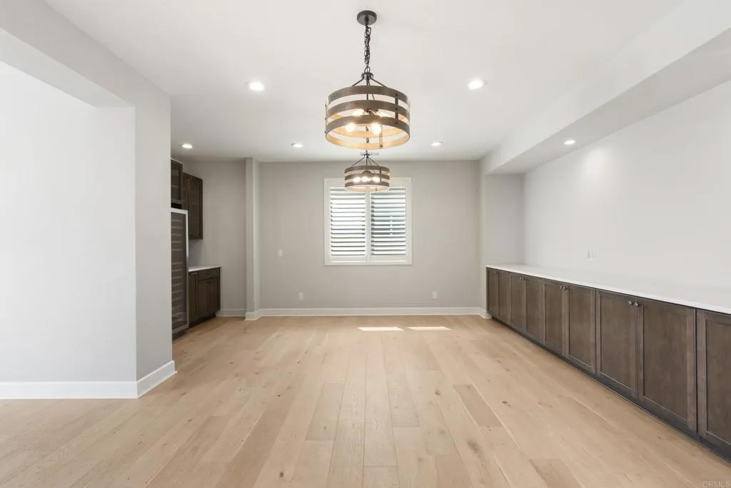 Perfectly positioned on a premier view lot with open canyon and mountain views, this extensively upgraded 5-bedroom, 4.5-bath residence offers 4,118 sq ft, an attached casita with its own private entrance, pool/spa, and owned solar with battery storage. A dramatic two-story foyer introduces volume and natural light, leading into the heart of the home, where wide-plank hardwood floors connect the kitchen, family room, and dining areas. The kitchen is centered around an expansive island and features quartz countertops, Bosch appliances, walk-in pantry, and spacious daily dining area. Formal dining room is scaled for larger gatherings and anchored by a built-in buffet and dedicated bar area with wine refrigerators. Family room features a gas fireplace and opens to the outdoor living areas. Attached casita offers a private exterior entrance and dedicated patio that includes an open living space, walk-in closet, bath with walk-in shower, and kitchenette and also connects to the main home. Half bath completes the main level. Upstairs, the primary suite includes built-in cabinetry with a beverage refrigerator and opens to a private deck with stunning views. Spa-inspired bath includes dual vanities, soaking tub, an oversized walk-in shower with bench and dual shower heads, and two walk-in closets. Two additional bedrooms share a Jack and Jill bath, and an ensuite bedroom offers its own private bath. Laundry room completes the upper level. Outdoors, the California room extends the living area, complete with fireplace, ceiling fan, recessed lighting, and motorized drop-down screens. Pool with elevated spa, and Baja entry has unobstructed views framed by glass fencing. A turfed side yard with privacy hedge and fruit trees adds usable space. Additional features include 11.90 kW solar, 10 kW battery, plantation shutters, motorized shades, whole-house water filtration, reverse osmosis, epoxy garage floor, and Tesla charger.