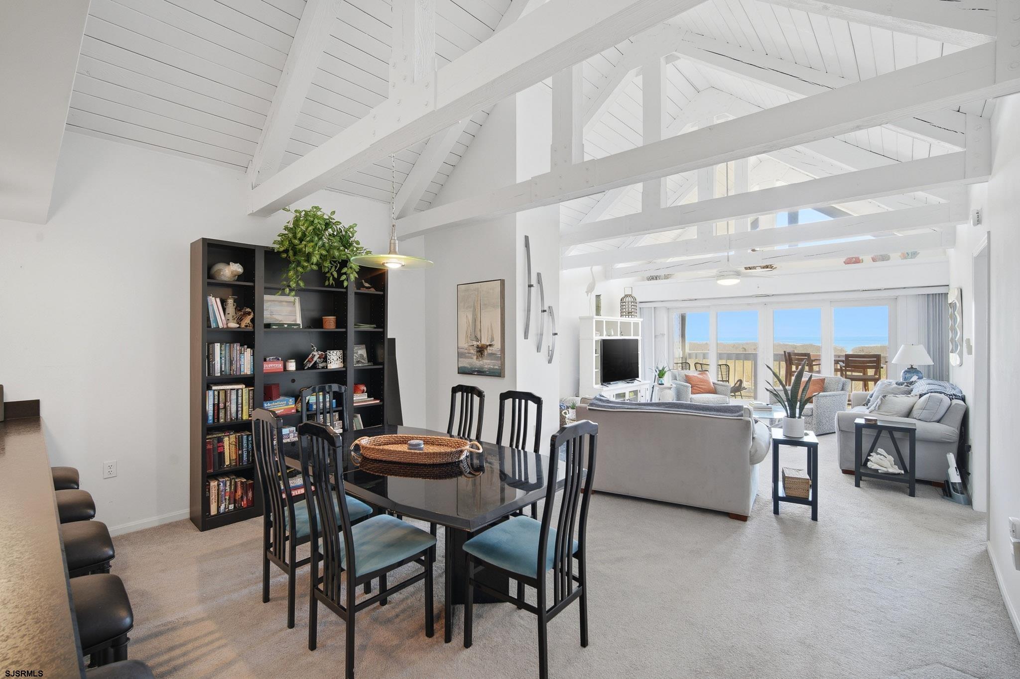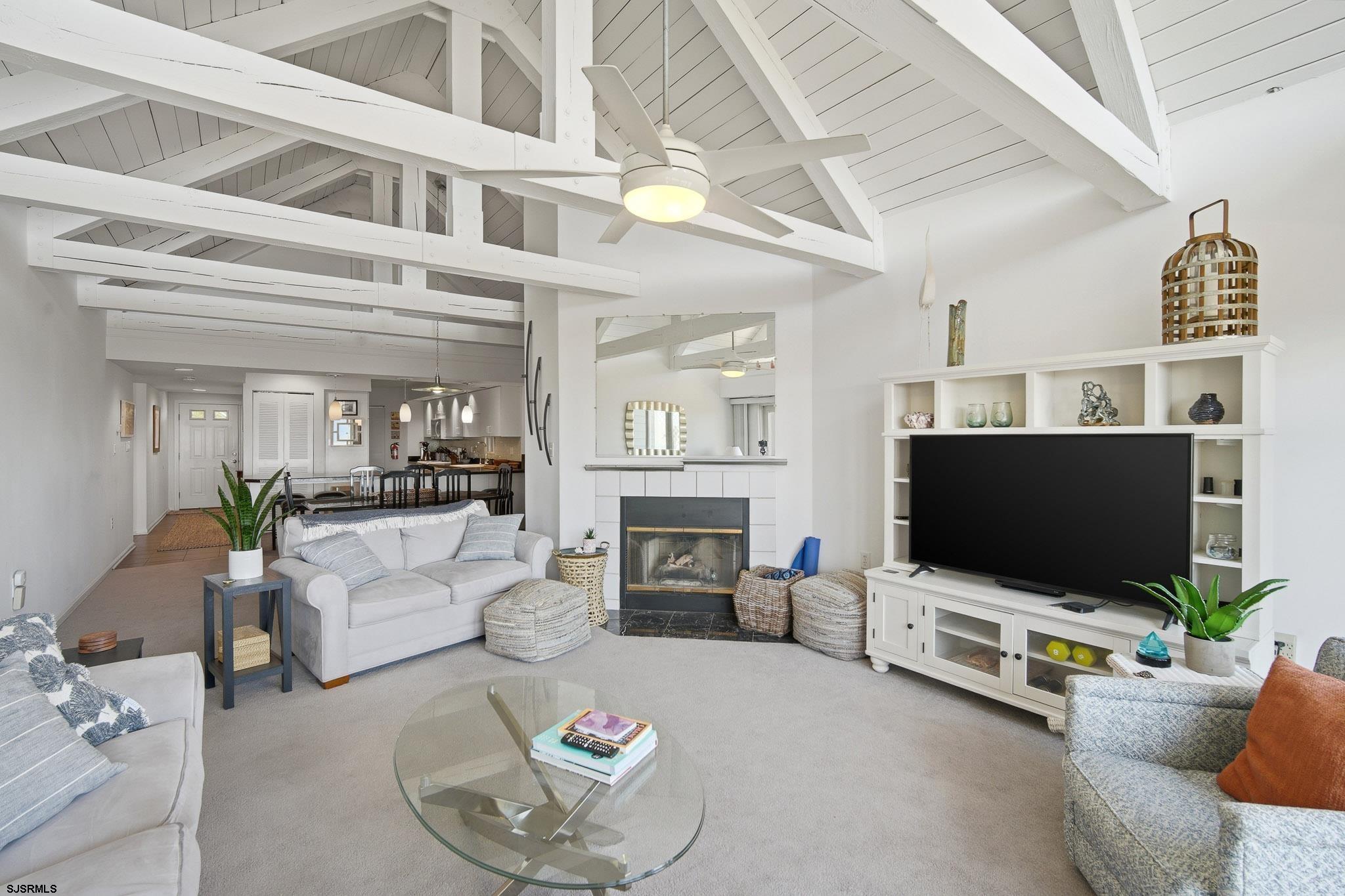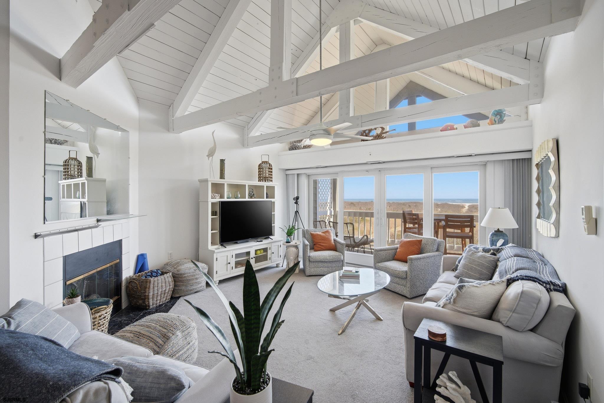 Experience oceanfront living at its finest in this stunning top-floor 2-bedroom, 2-bath condo located in the highly sought-after Cloisters in Brigantine. Offering breathtaking, unobstructed ocean views and the soothing sound of the waves, this residence delivers the ultimate coastal escape. This top-floor unit features soaring vaulted ceilings with exposed trusses, creating a bright, airy atmosphere that enhances the open-concept living, dining, and kitchen areas - perfect for entertaining or simply relaxing by the sea. Natural light pours in, highlighting the unique architectural character rarely found in condo living. The spacious primary suite includes a private bath, while the second bedroom offers comfortable accommodations for guests. Step outside and enjoy the peaceful surroundings of this beautifully maintained community. The Cloisters is renowned for its lush, meticulously landscaped grounds filled with vibrant flora and vegetation, creating a serene, park-like setting that attracts over 50 species of birds - truly a nature lover's paradise at the beach. Residents enjoy resort-style amenities including a sparkling in-ground pool, clubhouse, and direct beach access, all within a private, well-managed community just minutes from Brigantine's dining, shopping, and a short drive to Atlantic City. Whether you're seeking a luxurious shore retreat, full-time residence, or investment opportunity, this exceptional oceanfront condo offers a lifestyle that is both elevated and unforgettable.