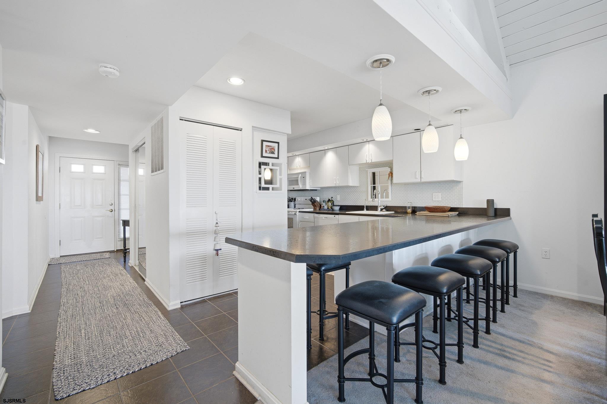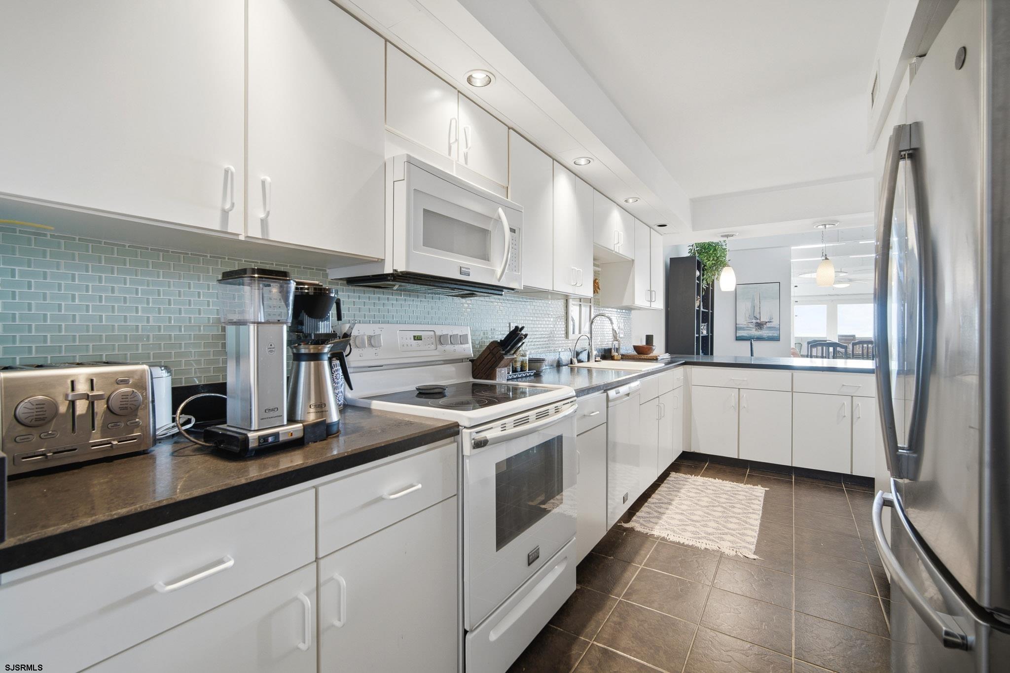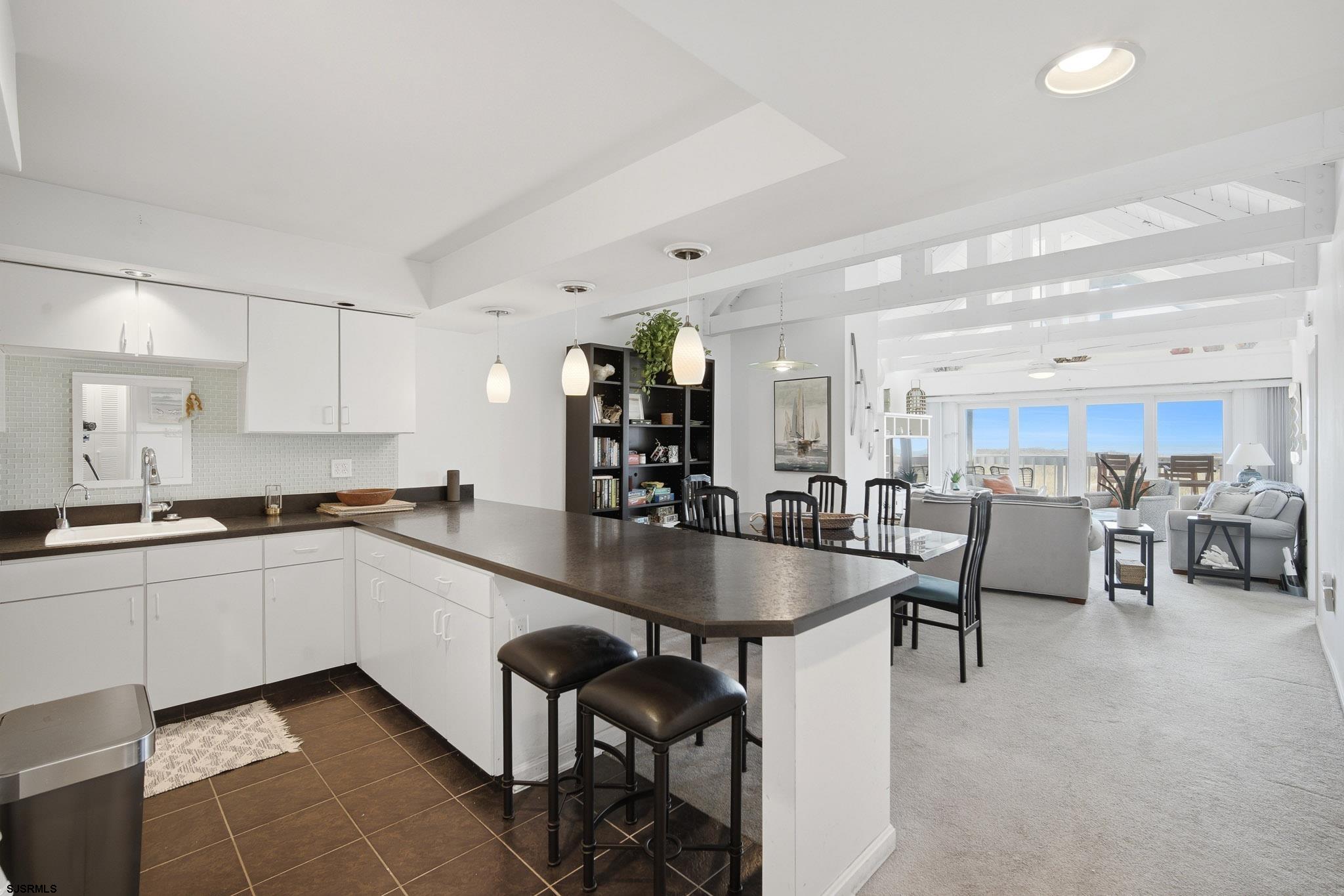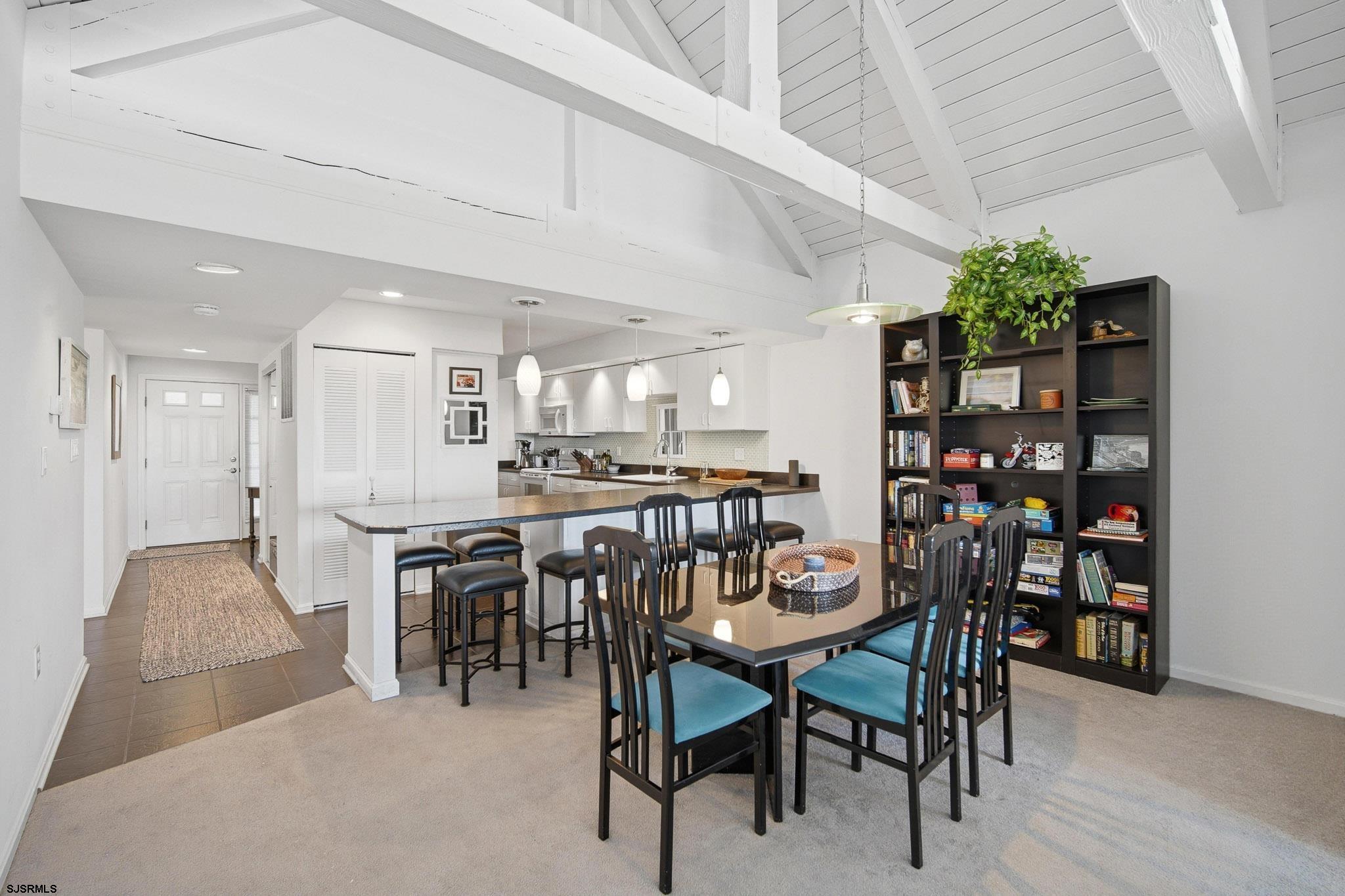 Experience oceanfront living at its finest in this stunning top-floor 2-bedroom, 2-bath condo located in the highly sought-after Cloisters in Brigantine. Offering breathtaking, unobstructed ocean views and the soothing sound of the waves, this residence delivers the ultimate coastal escape. This top-floor unit features soaring vaulted ceilings with exposed trusses, creating a bright, airy atmosphere that enhances the open-concept living, dining, and kitchen areas - perfect for entertaining or simply relaxing by the sea. Natural light pours in, highlighting the unique architectural character rarely found in condo living. The spacious primary suite includes a private bath, while the second bedroom offers comfortable accommodations for guests. Step outside and enjoy the peaceful surroundings of this beautifully maintained community. The Cloisters is renowned for its lush, meticulously landscaped grounds filled with vibrant flora and vegetation, creating a serene, park-like setting that attracts over 50 species of birds - truly a nature lover's paradise at the beach. Residents enjoy resort-style amenities including a sparkling in-ground pool, clubhouse, and direct beach access, all within a private, well-managed community just minutes from Brigantine's dining, shopping, and a short drive to Atlantic City. Whether you're seeking a luxurious shore retreat, full-time residence, or investment opportunity, this exceptional oceanfront condo offers a lifestyle that is both elevated and unforgettable.