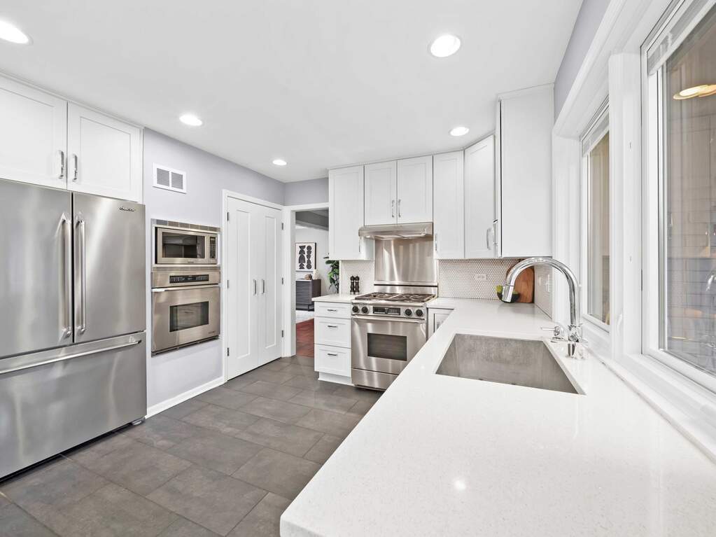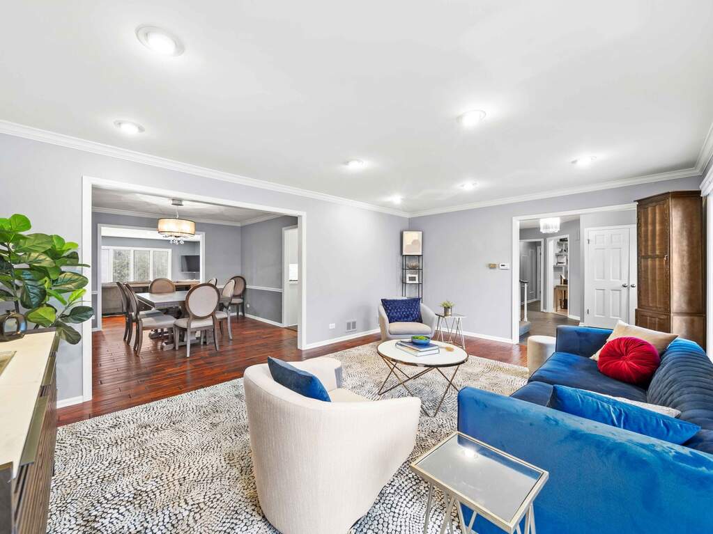 The layout strikes that rare balance: open when you want it, defined where you need it, and designed to feel as good as it looks. A polished foyer with porcelain tile and generous storage sets the tone, leading into sunlit living and dining spaces with crown molding and clean, timeless finishes, equally suited for hosting or just hanging out. The kitchen anchors the home with quartz countertops, a penny tile backsplash, and a premium appliance package, all centered around an island that naturally becomes the place everyone gathers. From there, the eating area and expansive family room, with a gas-start fireplace, flow effortlessly out to the patio, while a separate great room with its own access to the yard gives you flexibility to spread out, entertain, or reimagine the space entirely. A true main-level office, complete with built-ins, offers a great work from-home setup, and the mudroom/laundry area is exactly where you want it, functional, tucked away, and with direct access outside. Upstairs, the huge primary suite delivers on both space and storage, with multiple closets including a well-organized walk-in, and an en suite bath featuring dual vanities, a Whirlpool tub, and a steam shower that feels like a daily escape. Three additional bedrooms are well-proportioned with thoughtful storage, supported by updated, stylish hall baths. The finished lower level adds even more versatility with a large recreation space, built-ins, and plenty of storage, ideal for movie nights, workouts, or play. With key updates already handled, including mechanicals, roof, and a renovated kitchen, this is a move-in ready home. Set on a property with a concrete driveway and inviting outdoor space, it's the kind of home that simply works. Best of all, it is located in District 30 with award winning schools, a stone's throw to Greenview Park and just minutes to shopping, dining, entertainment, highway, Metra and more!