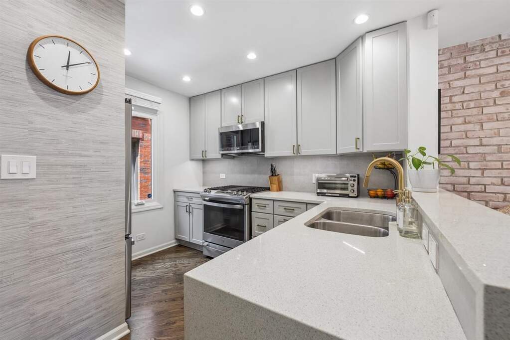 Ideally located in Lincoln Park, this thoughtfully updated 3-bedroom, 3.1-bath townhouse offers a well-balanced layout within a gated community. Situated in the Oscar Mayer school district, the home combines functionality with a comfortable, modern feel. One-car garage parking is included, along with access to a communal rooftop deck. The main level features an open living and dining space with hardwood floors, a built-in banquette, and an updated fireplace that serves as the room's focal point. The kitchen has been renovated with light cabinetry, quartz countertops, a full-height backsplash, under-cabinet lighting, and stainless steel appliances. A powder room is conveniently located on this level, along with access to a private patio ideal for outdoor living. Upstairs, a skylit staircase leads to two spacious bedrooms, each with an ensuite bathroom and a walk-in closet. The primary suite overlooks a tree-lined street and includes dual sinks, quartz countertops, and a clean, timeless bathroom design. The lower level offers additional living space, including a family room, a built-in bar, and a third bedroom with an ensuite bath-well-suited for guests or a private office. A side-by-side washer and dryer with folding space and storage complete this level. Set on a quiet, tree-lined one-way street, this home offers a balance of privacy and convenience, with parks, dining, and transit just moments away.