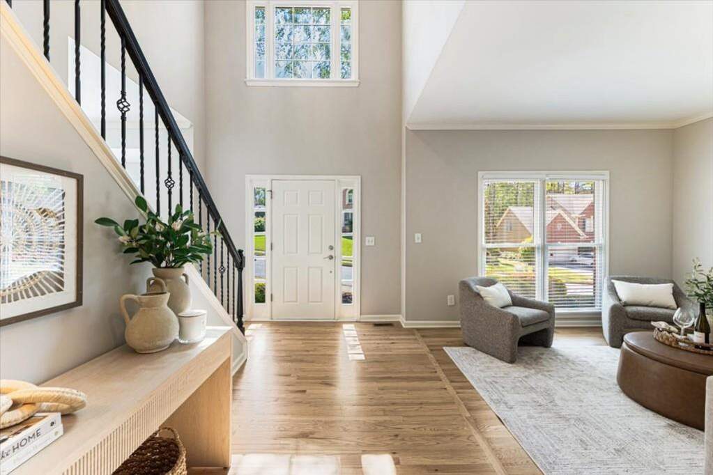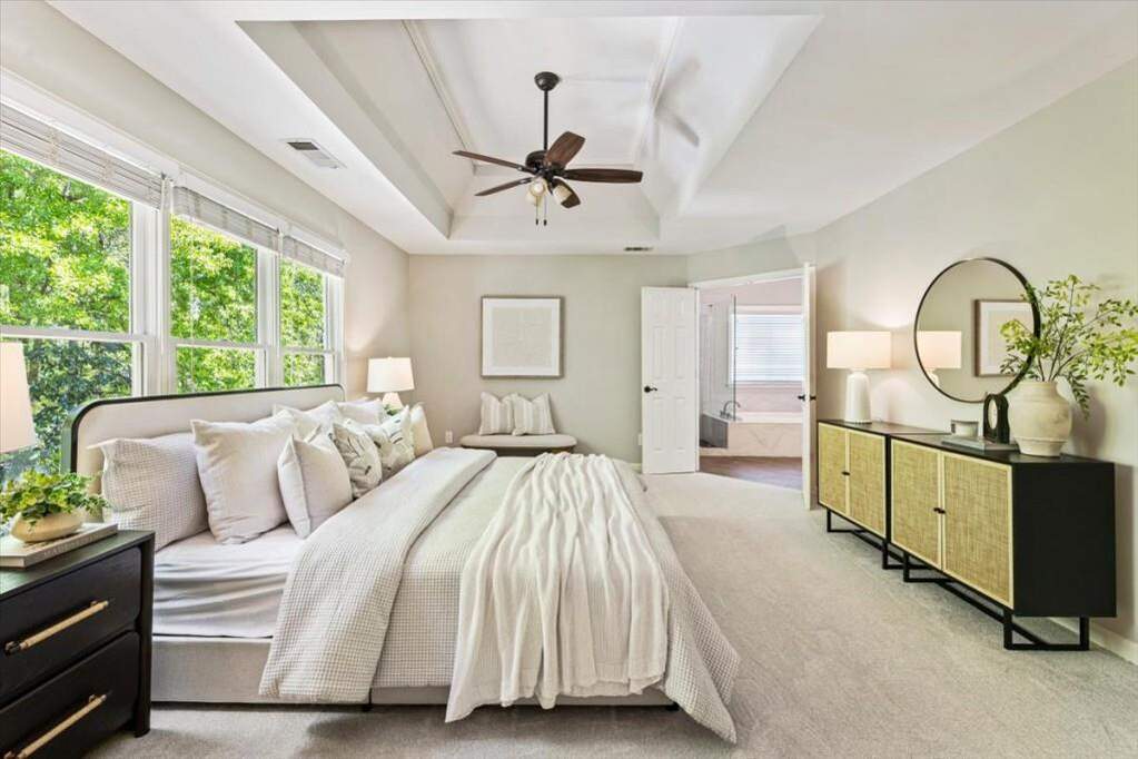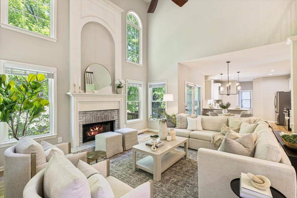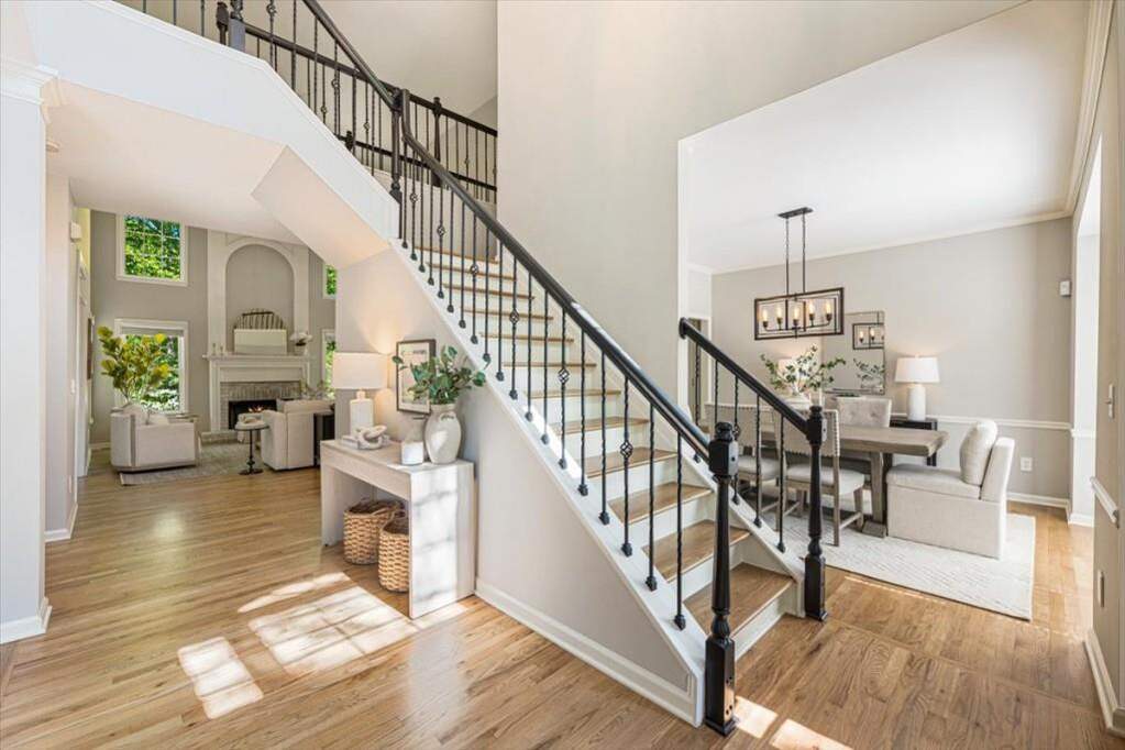 Located in Windward, this beautifully renovated home offers five bedrooms, three full bathrooms, and two half bathrooms on nearly 3/4 of an acre with direct access to the scenic Big Creek Greenway. The home has undergone extensive updates, including a renovated kitchen, updated bathrooms, fresh carpet, and thoughtful improvements throughout. A welcoming two story foyer opens to a bright great room with large windows overlooking the private backyard. The updated kitchen features refinished cabinetry, updated countertops, lighting, and appliances and connects seamlessly to the living room. The main level also includes a formal dining room, a separate home office, and a flexible additional space ideal for a second office, study, or playroom, along with a conveniently located half bath. Upstairs you will find four bedrooms and three full bathrooms, including the spacious primary suite with a beautifully updated bathroom featuring dual vanities, a soaking tub, separate shower, and a large walk-in closet. One secondary bedroom offers a brand new en suite bathroom, ideal for guests, while two additional bedrooms share an updated hall bathroom. The finished terrace level includes an additional bedroom, a half bath, and a large recreation space with flexibility for a theater room, game room, or exercise area, along with walkout access to the covered patio and backyard. A large unfinished area provides ample storage space. Outdoor living is just as appealing with a spacious deck overlooking green space and direct access to the Big Creek Greenway, where miles of walking and biking trails are just steps from your backyard. Windward residents enjoy access to the community lake, boat access, and nearby parks, along with close proximity to the shopping and dining of Downtown Alpharetta and Avalon. Reach out to schedule your private tour today.