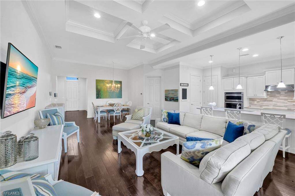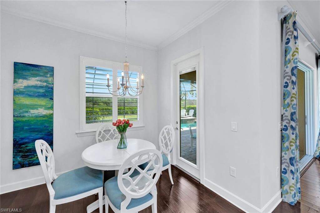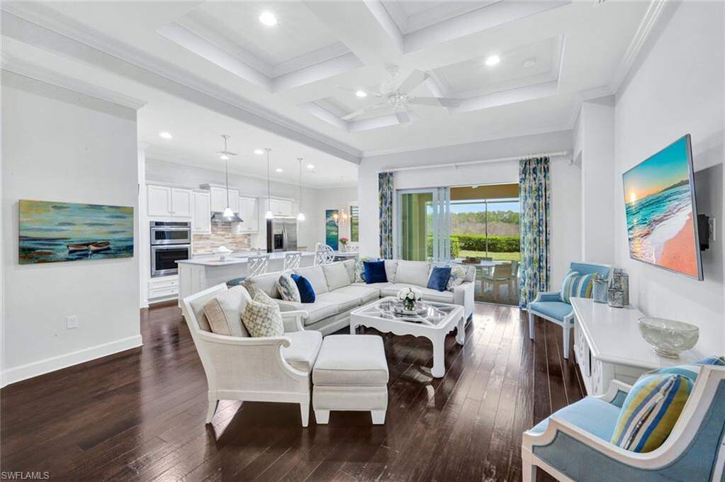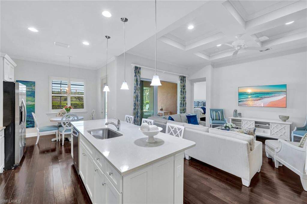 Experience the ultimate Naples resort lifestyle in the prestigious gated community of The Quarry-a premier golf, boating, and beach club community known for its 500 acres of navigable lakes and world-class amenities. This beautifully maintained single-story 3-bedroom + den, 2-bath pool home offers serene preserve views and a highly desirable open-concept great room floor plan, perfect for both everyday living and entertaining. Inside, you'll find hardwood flooring throughout the main living areas, den, and bedrooms, along with a bright and airy layout that seamlessly connects the kitchen, dining and family room. The updated kitchen features quartz countertops, white wood cabinetry, tile backsplash, stainless steel appliances, electric cooktop, and pantry, plus a charming breakfast nook with direct lanai access. The spacious primary suite offers a private retreat with an en-suite bath, dual vanities, tub, glass-enclosed tiled shower and a large walk-in closet. Step outside to your screened lanai oasis, where a sparkling pool and spa, covered entertaining area and peaceful preserve backdrop create the perfect setting to relax and enjoy the Florida lifestyle year-round. Additional features include a freshly painted interior (2026), hurricane-impact door and windows, custom ceiling details, crown molding, custom lighting and a 2-car attached garage. The Quarry offers an extensive amenity package, including approximately 500 acres of navigable lakes suitable for boating, kayaking, paddleboarding, fishing and water skiing. Community amenities include a newly renovated Beach Club with resort-style pool, lap pool, Tiki bar with poolside service, spa, tennis courts, pickleball, bocce, fitness center, on-site casual and formal dining options and a full-time activities director who operates social events year-round. Additional facilities include activity rooms, card room, and social spaces. Golf membership is optional and provides access to The Quarry Golf Lodge and the PGA-level Hurdzan-Fry 18-hole course. The Quarry represents a lifestyle defined by luxury, recreation and natural beauty with unparalleled access to world-class amenities.