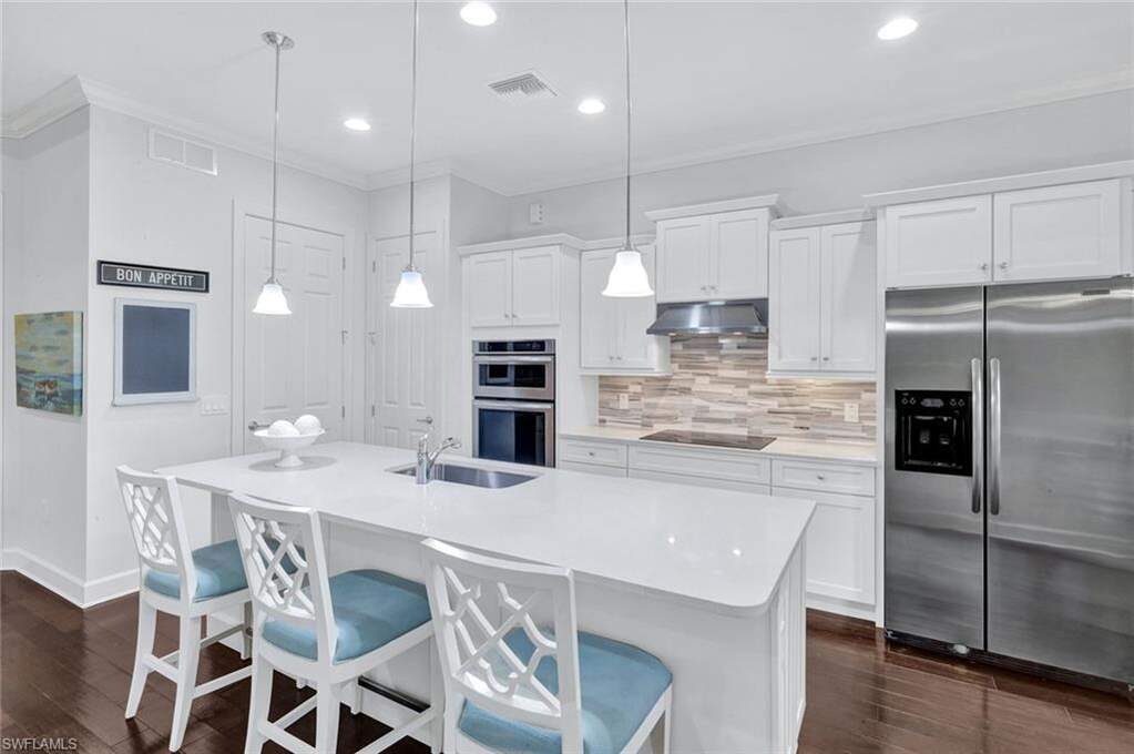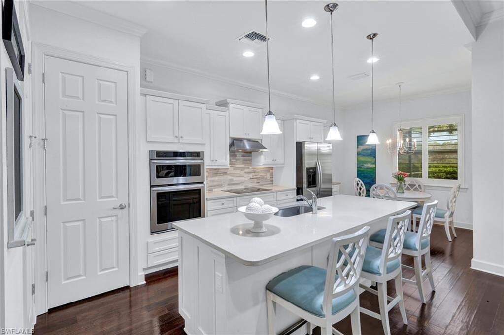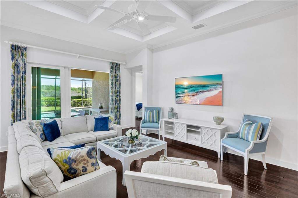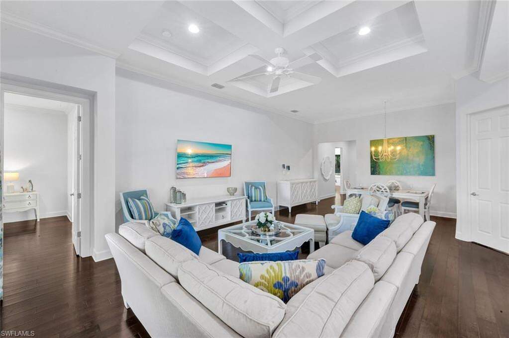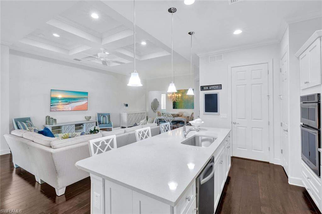 Experience the ultimate Naples resort lifestyle in the prestigious gated community of The Quarry-a premier golf, boating, and beach club community known for its 500 acres of navigable lakes and world-class amenities. This beautifully maintained single-story 3-bedroom + den, 2-bath pool home offers serene preserve views and a highly desirable open-concept great room floor plan, perfect for both everyday living and entertaining. Inside, you'll find hardwood flooring throughout the main living areas, den, and bedrooms, along with a bright and airy layout that seamlessly connects the kitchen, dining and family room. The updated kitchen features quartz countertops, white wood cabinetry, tile backsplash, stainless steel appliances, electric cooktop, and pantry, plus a charming breakfast nook with direct lanai access. The spacious primary suite offers a private retreat with an en-suite bath, dual vanities, tub, glass-enclosed tiled shower and a large walk-in closet. Step outside to your screened lanai oasis, where a sparkling pool and spa, covered entertaining area and peaceful preserve backdrop create the perfect setting to relax and enjoy the Florida lifestyle year-round. Additional features include a freshly painted interior (2026), hurricane-impact door and windows, custom ceiling details, crown molding, custom lighting and a 2-car attached garage. The Quarry offers an extensive amenity package, including approximately 500 acres of navigable lakes suitable for boating, kayaking, paddleboarding, fishing and water skiing. Community amenities include a newly renovated Beach Club with resort-style pool, lap pool, Tiki bar with poolside service, spa, tennis courts, pickleball, bocce, fitness center, on-site casual and formal dining options and a full-time activities director who operates social events year-round. Additional facilities include activity rooms, card room, and social spaces. Golf membership is optional and provides access to The Quarry Golf Lodge and the PGA-level Hurdzan-Fry 18-hole course. The Quarry represents a lifestyle defined by luxury, recreation and natural beauty with unparalleled access to world-class amenities.