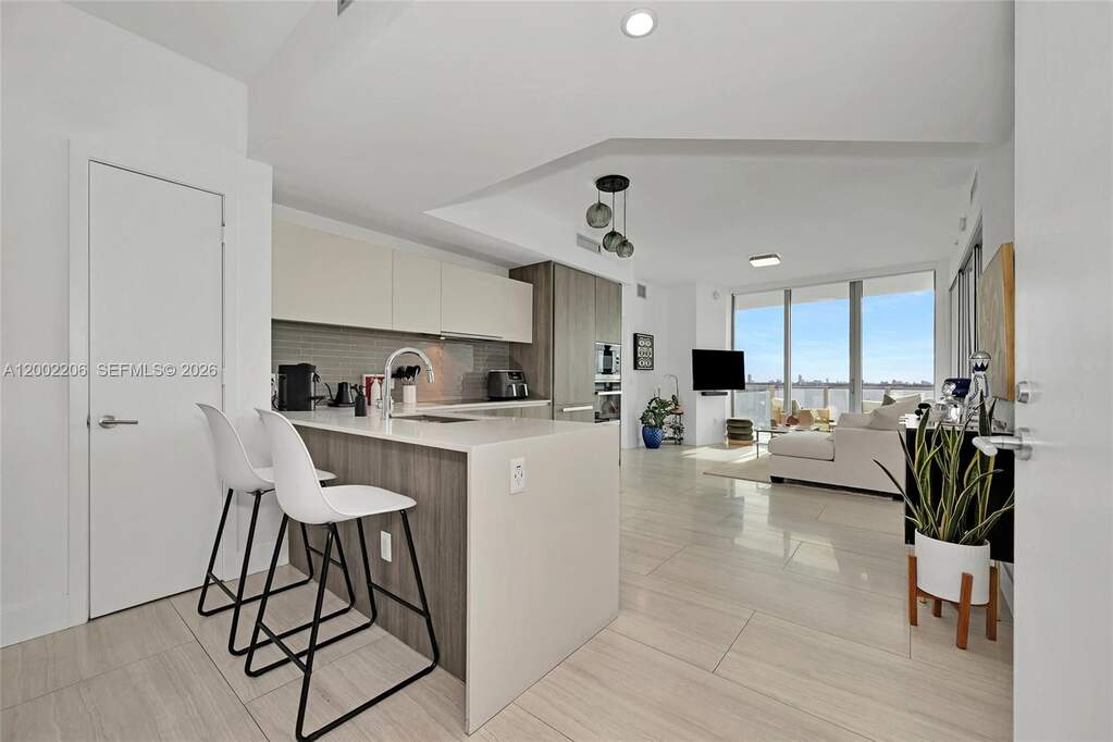 This expansive 2 Bed / 3 Bath + Den unit, offers unobstructed bay views with breathtaking sunrise and moonrise. Located in the desirable 05 line, this unit features a unique flexible second bedroom with a tempered glass movable wall-open it up for a spacious layout or enclose it for privacy. Private foyer entrance ensures a quiet, exclusive feel. Equipped with Miele appliances and modern finishes. Situated in Edgewater Miami, just 2 blocks from Whole Foods Market and minutes to Brickell, Wynwood, and the Design District. A top building in the area, currently undergoing renovations-own in what will soon feel like a brand-new luxury tower.