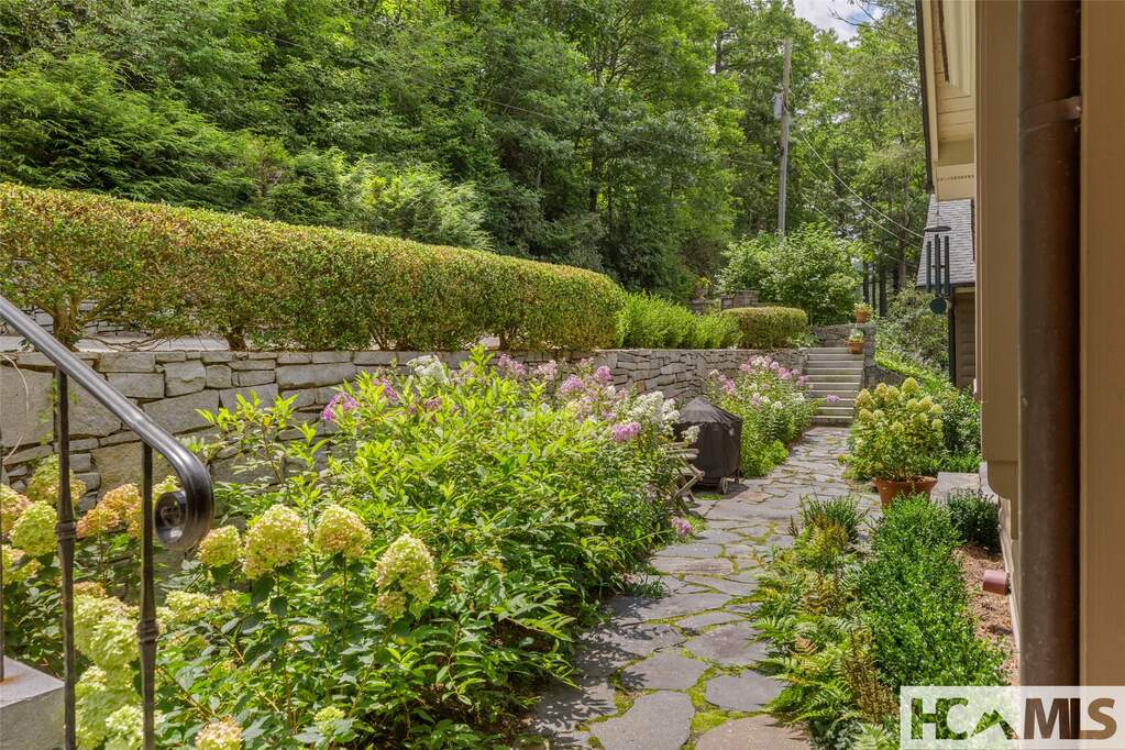 This first fairway cottage at Highlands Country Club combines a classic mountain experience with all the modern conveniences. With four bedrooms and four full baths, on the main level, it is a delightful gathering place for friends and family to enjoy the course view and proximity to town. The home was lovingly restored under the direction of architect Norman Davenport Askins. His renowned sensitivity for historic buildings radiates throughout the home. Just one mile from Main Street, this is one of the early homes built on Highlands Country Club. The large dining room easily seats ten and features windows and doors that open up the room. Enjoy the perfect evening breezes, with adjoining deck overlooking the golf course. The spacious kitchen features a breakfast bar, honed absolute black granite countertops, dual fuel range, warming drawer, microwave, flat bottom sinks, dishwasher, and a coffee nook with insta-hot water dispenser. Pantry and 48" Subzero refrigerator/freezer finish off this great place to cook. The entry, living room, and sunporch combine the best features of a cozy Highlands cottage with an original Bryson City granite fireplace, high ceilings, and golf course views. The owner's bedroom is ensuite with den, bath with double vanity, soaking tub, shower, double walk-in closets, heated floor and heated towel rack. This suite has its own decks overlooking the golf course and a stream. There is a fourth bedroom, bath, den area with separate HVAC and water heater that can be turned off when there is no guest in residence. Additional lower level outside entrance rooms: one set up as workout with full bath. One used as bonus space, ping pong or just hanging out. Garden room with garage door for yard gear. Broker/owner.