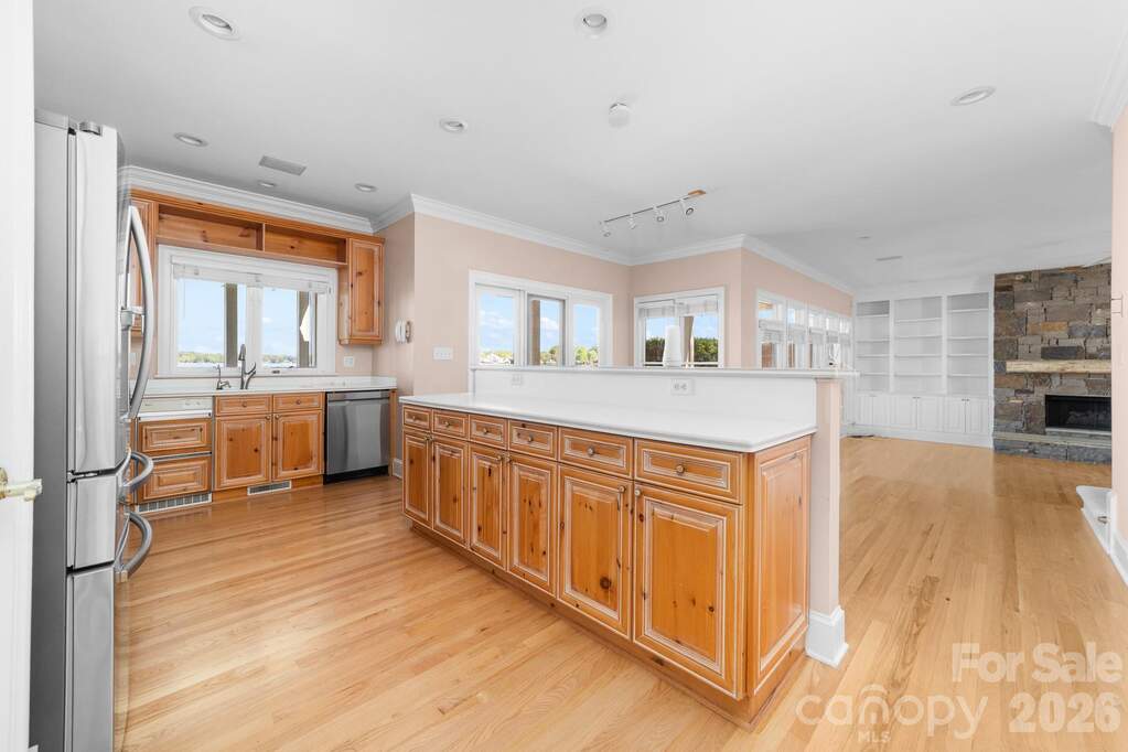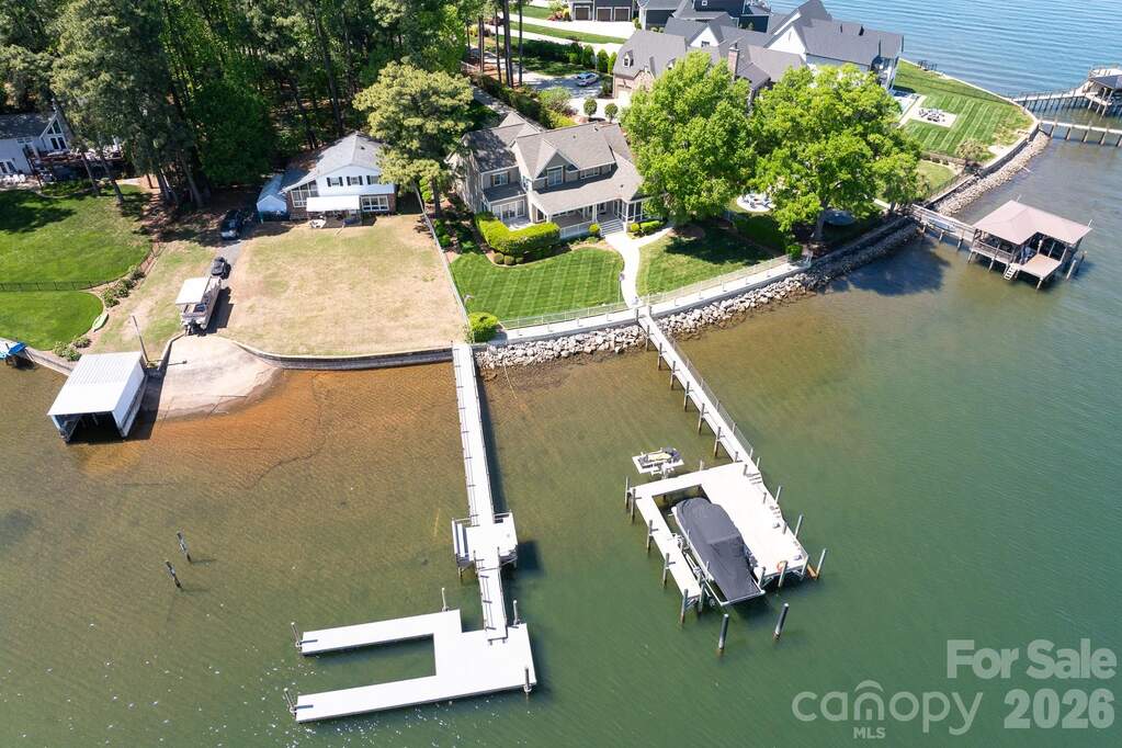 Stunning cedar shake waterfront retreat with breathtaking panoramic views of Lake Norman. This impeccably maintained home blends timeless charm with refined comfort, featuring rich hardwood floors, a dramatic stone fireplace, and walls of windows that flood the interior with natural light while showcasing the water from nearly every angle. Designed for effortless indoor-outdoor living, enjoy peaceful mornings and unforgettable sunsets from the spacious screened porch and covered terrace overlooking the lake. The waterfront experience is truly exceptional, complete with a private pier, boat lifts, seawall, and a picturesque boardwalk-perfect for embracing the ultimate Lake Norman lifestyle. Inside, the home offers 4 bedrooms, 3.5 baths, and approximately 3,708 square feet of thoughtfully designed living space. The expansive upper-level bonus room provides incredible flexibility for a media room, home office, or guest retreat. A rare opportunity to own a private waterfront retreat with spectacular views and premium features! See Upgrade List in Attachments. Currently verifying if there is room for a pool.