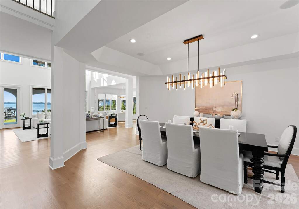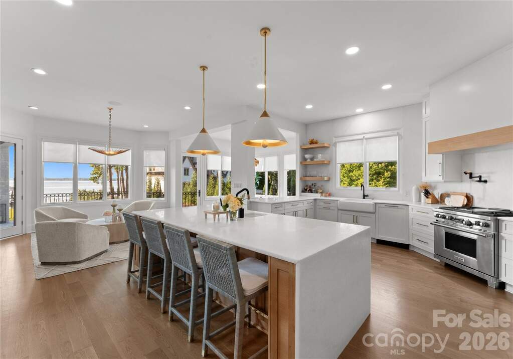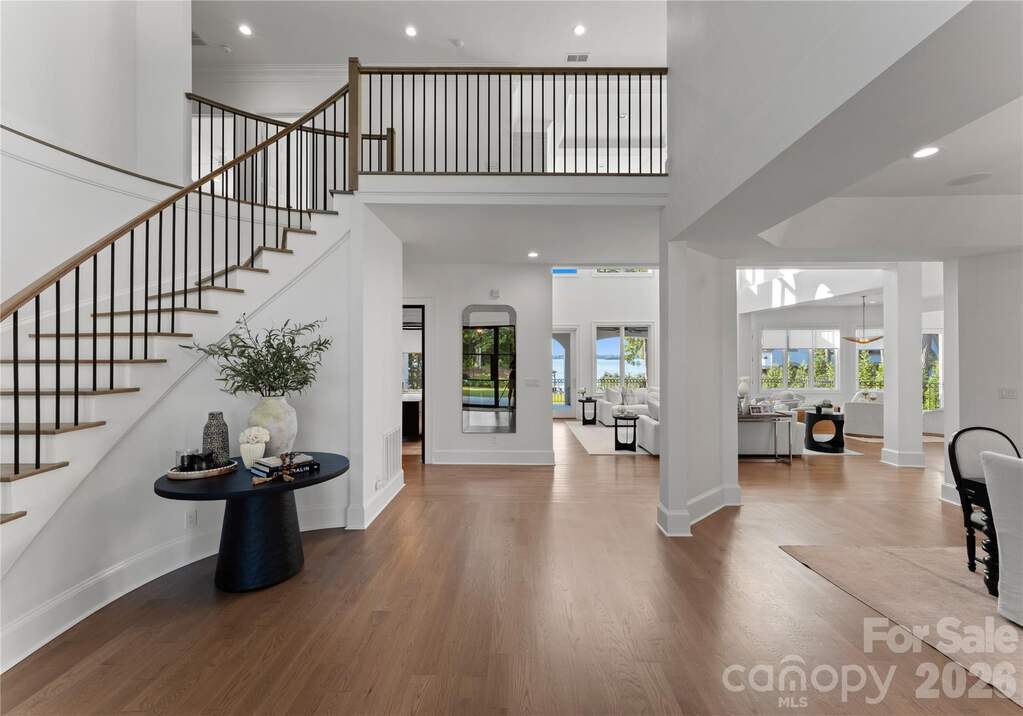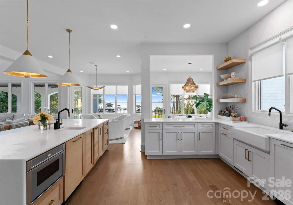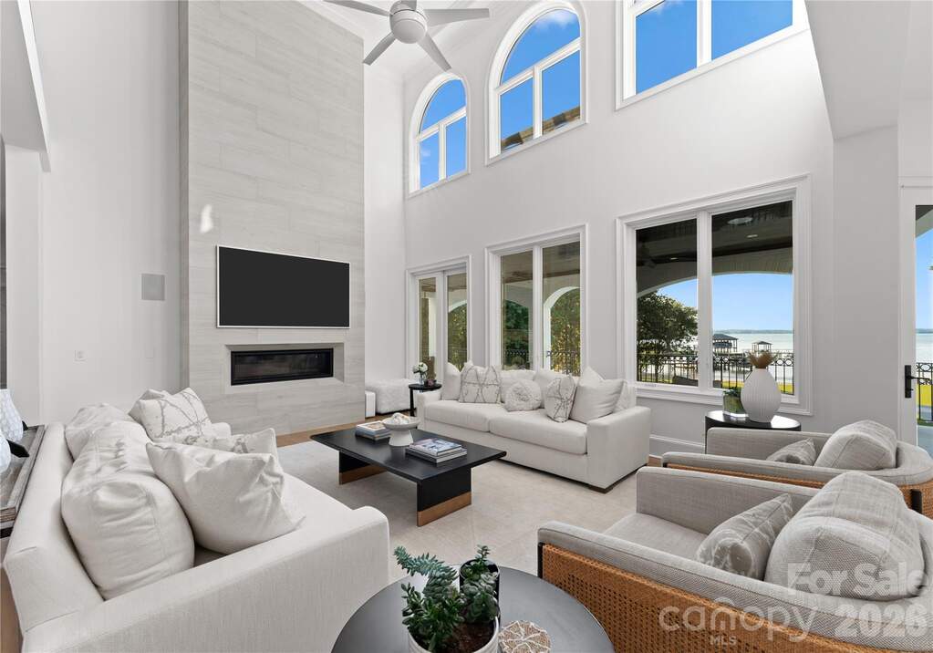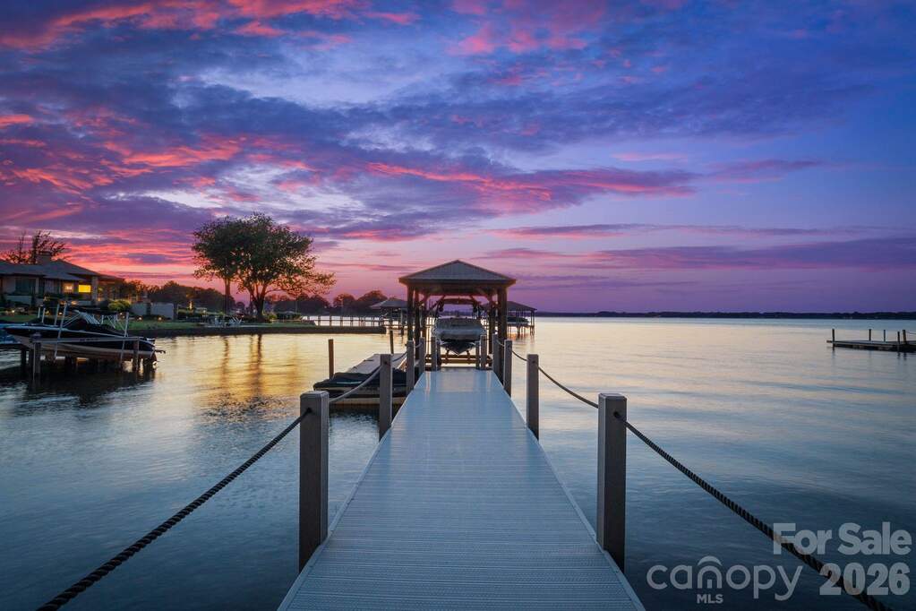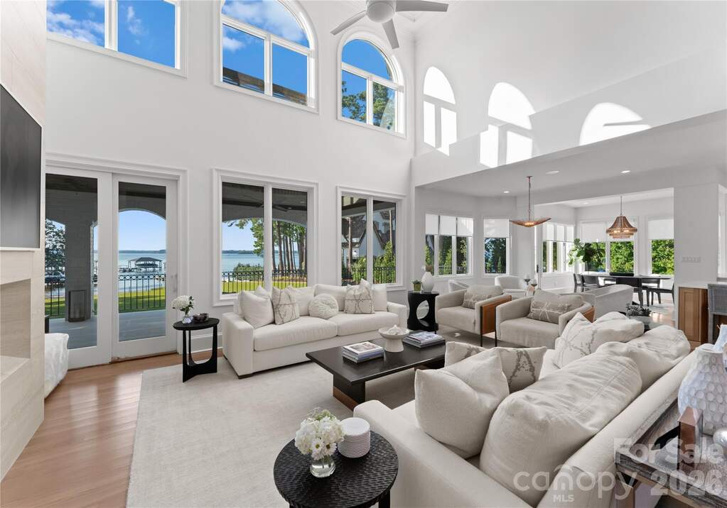 A true waterfront masterpiece, this striking modern Mediterranean estate seamlessly blends refined luxury with relaxed coastal elegance. Privately set behind dual gates on a sprawling 1.12-acre homesite, the property captures breathtaking long-range Lake Norman views and offers a sense of arrival that is both impressive and serene. Inside, light-filled interiors showcase an open-concept design defined by clean architectural lines, soaring spaces, and an effortless connection to the outdoors. Walls of glass invite natural light throughout, creating a bright, airy atmosphere ideal for both everyday living and elevated entertaining. Expansive outdoor terraces set the stage for unforgettable evenings, perfect for sunset cocktails or hosting guests. At the heart of the home, the gourmet kitchen is a chef's dream, featuring Wolf and Sub-Zero appliances, a dedicated scullery, marble countertops, and custom white oak cabinetry designed for both beauty and function. The lower-level transforms entertaining into an experience of its own, complete with a full bar, fitness room, sauna, and a private ensuite bedroom, ideal for guests or extended stays. Step outside to your own private resort-style oasis. An expansive heated, saltwater pool and spa anchor the outdoor living space, complemented by a pickleball court, putting green, low-maintenance turfed yard, outdoor fireplace, and grilling area-every detail thoughtfully designed for relaxation and recreation. For boating enthusiasts, the covered private dock with lift offers effortless access to the water, whether you're setting out for a day on the lake or enjoying the peaceful surroundings from the shoreline. A 4-car garage provides ample space for vehicles, toys, and storage, completing this exceptional estate.