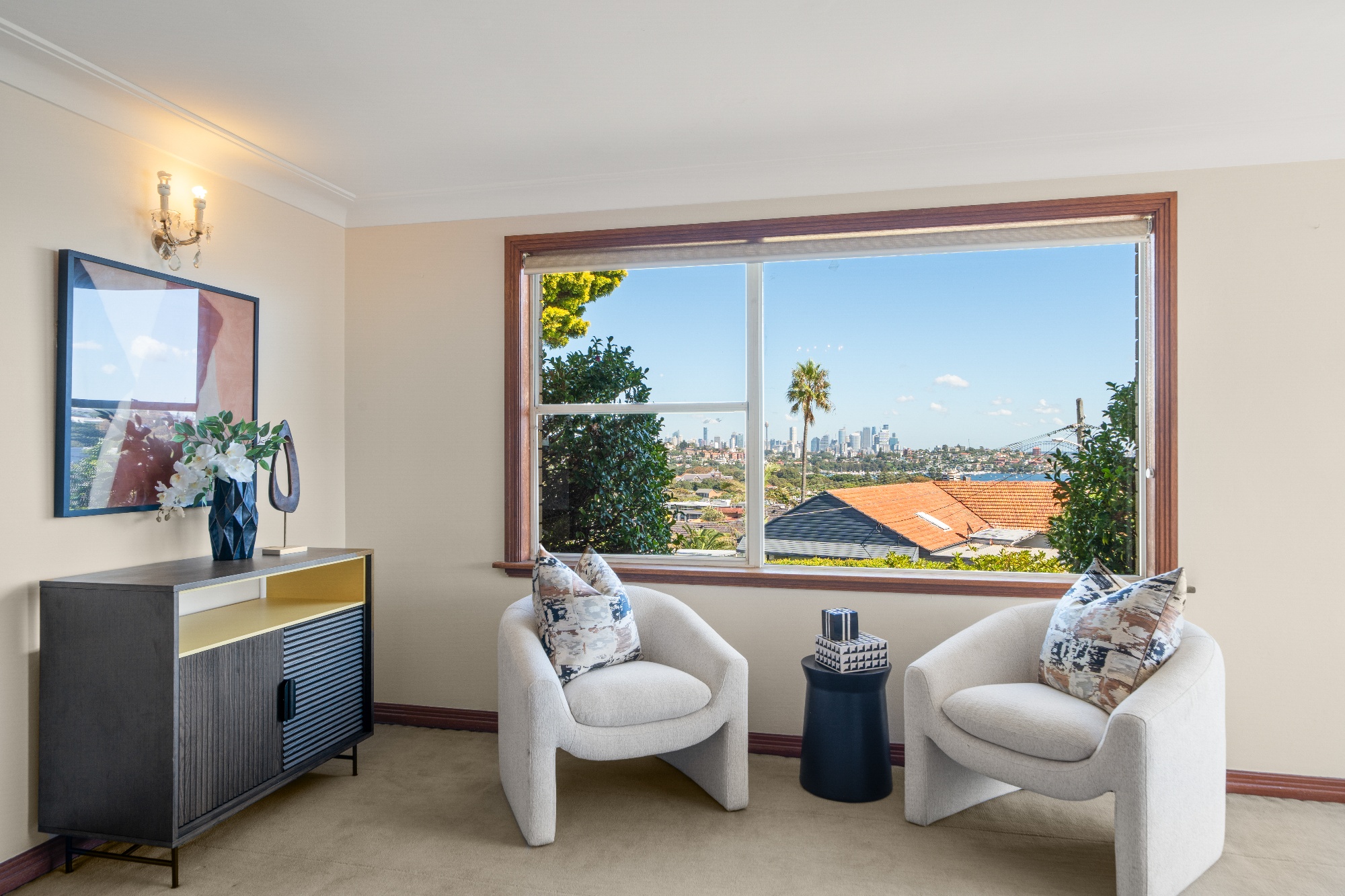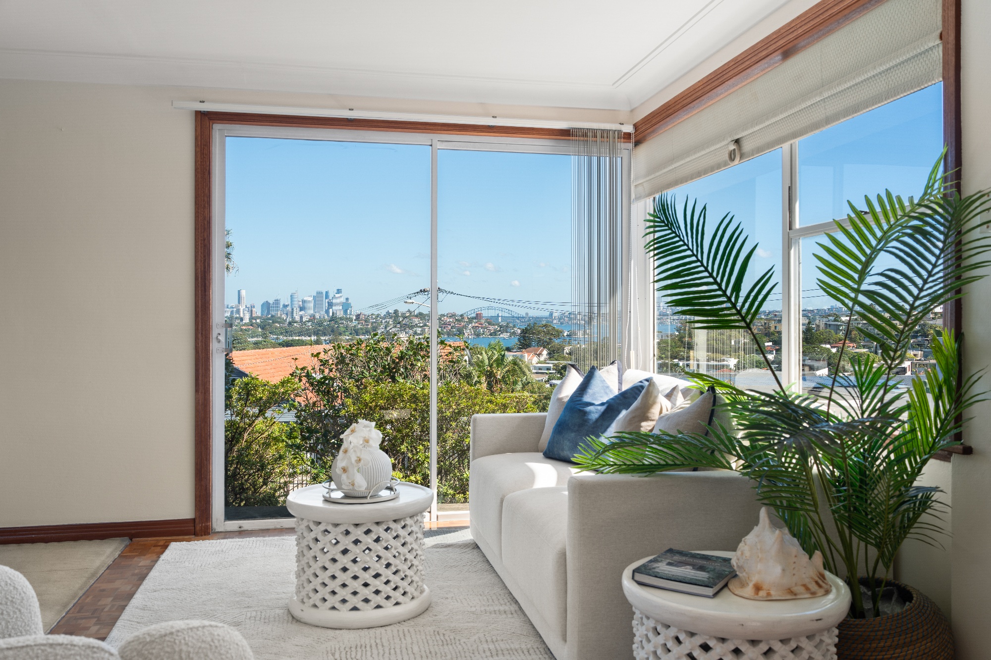 A breathtaking panorama to the harbour, city skyline, Harbour Bridge and North Sydney CBD makes a spectacular backdrop to this sunlit freestanding four-bedroom home set on approx. 674sqm land with north-facing level gardens, an extra-wide street frontage and garaging for two cars. Privately elevated above the street, the single-level brick residence enjoys a wonderful feeling of openness and space all around with wide windows taking full advantage of the views. First time offered in 60 years, the house retains its mid-century character in light-filled interiors with high ceilings, sandstone fireplace and original green-tiled bathroom, but the potential here really stands out with scope to update or redevelop (STCA). Ready to move into and add your own stamp of style while considering a future renovation of the well-designed layout with big bedrooms, large living area, sunroom, study and a dining room adjacent to the kitchen. Surrounded by sunny gardens with level lawns, the house is perfectly located in the prestigious dress circle above Rose Bay shopping village with 400m walk to cafes, gourmet food stores and Harris Farm Markets. Excellent locale minutes to schools, Dudley Page Reserve, coastal clifftop walks, iconic Bondi Beach and Rose Bay's harbour foreshore. - Panoramic views from living, dining, sunroom - Sunlit interiors, high ceilings, wide windows - Potential to update or redevelop STCA - Spacious living area with sandstone fireplace - Dining room with b/in buffet & servery to kitchen - Sunroom with glass sliding doors to the garden - Study/home office adjacent to the sunroom - Kitchen with gas stove and Miele dishwasher - Master king-size bedroom with Harbour Bridge view - 3 more double bedrooms: one with bay window - Main bathroom with original tiles, bath and shower - 2nd bathroom/laundry with shower, basin and sink - Sunny gardens with level lawns and 2 entry gates - 2 garages, extra wide frontage on Victory Street - Premier locale close to Rose Bay shopping village - Minutes to schools, Bondi Beach and the harbour