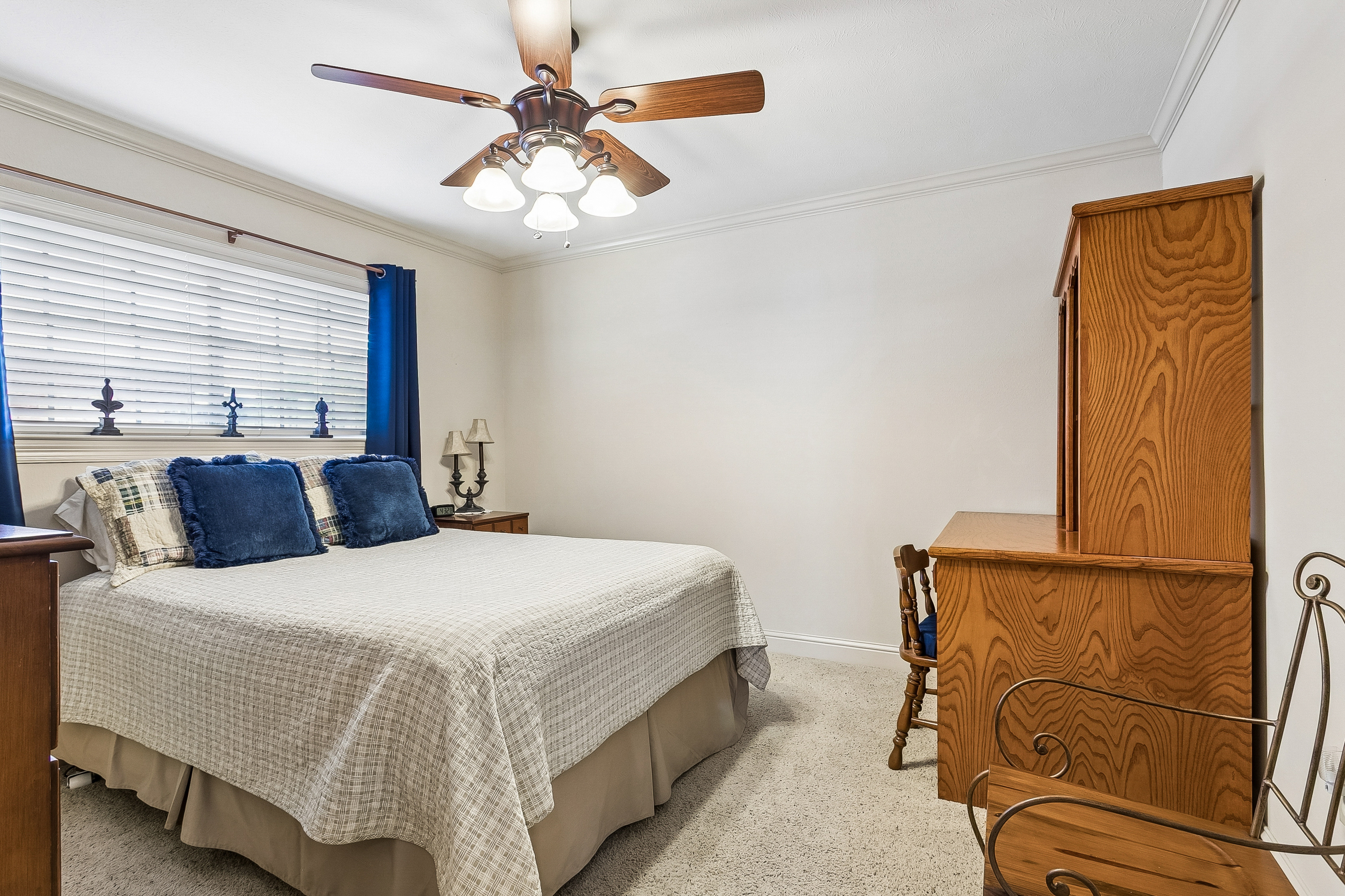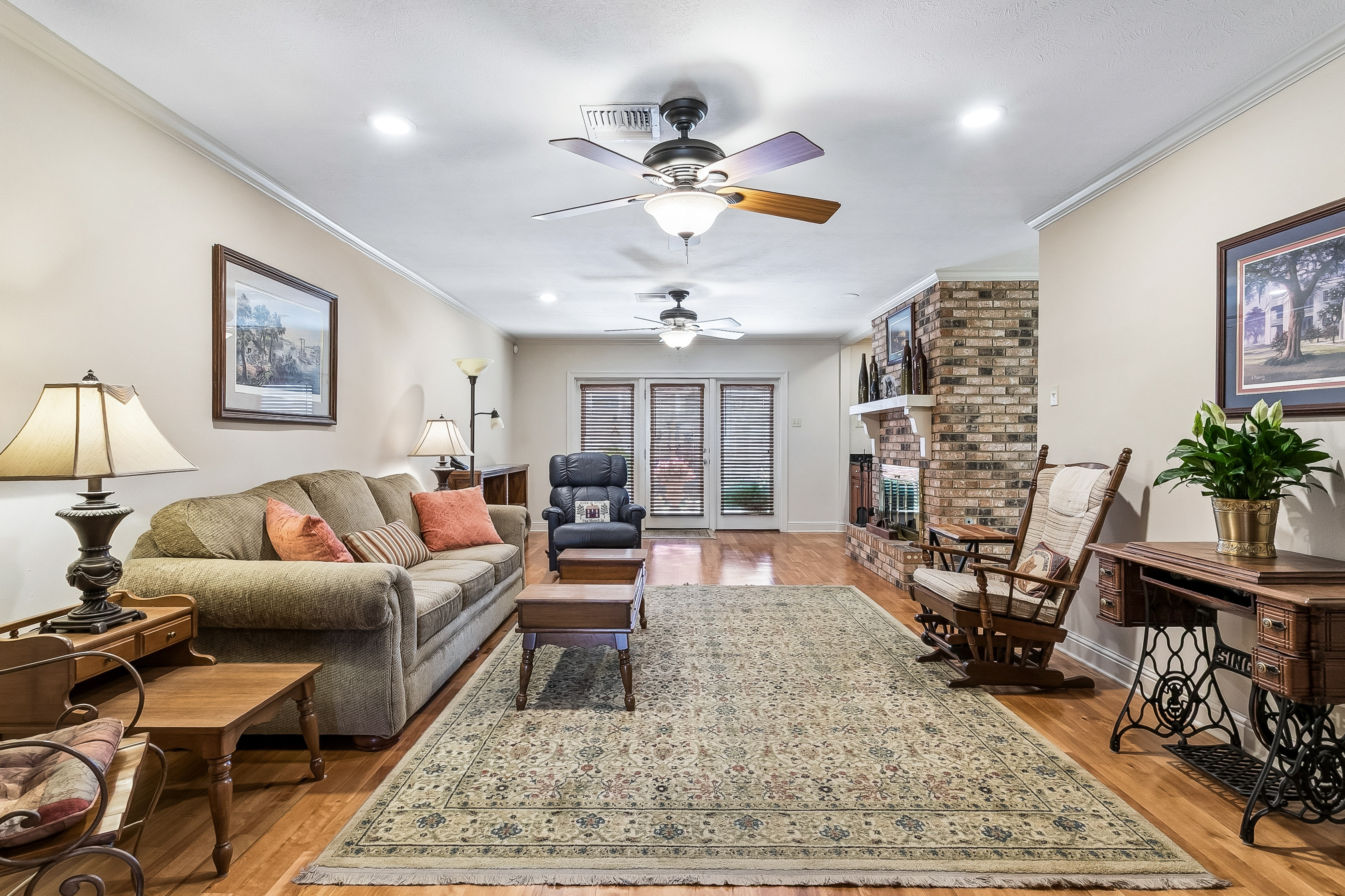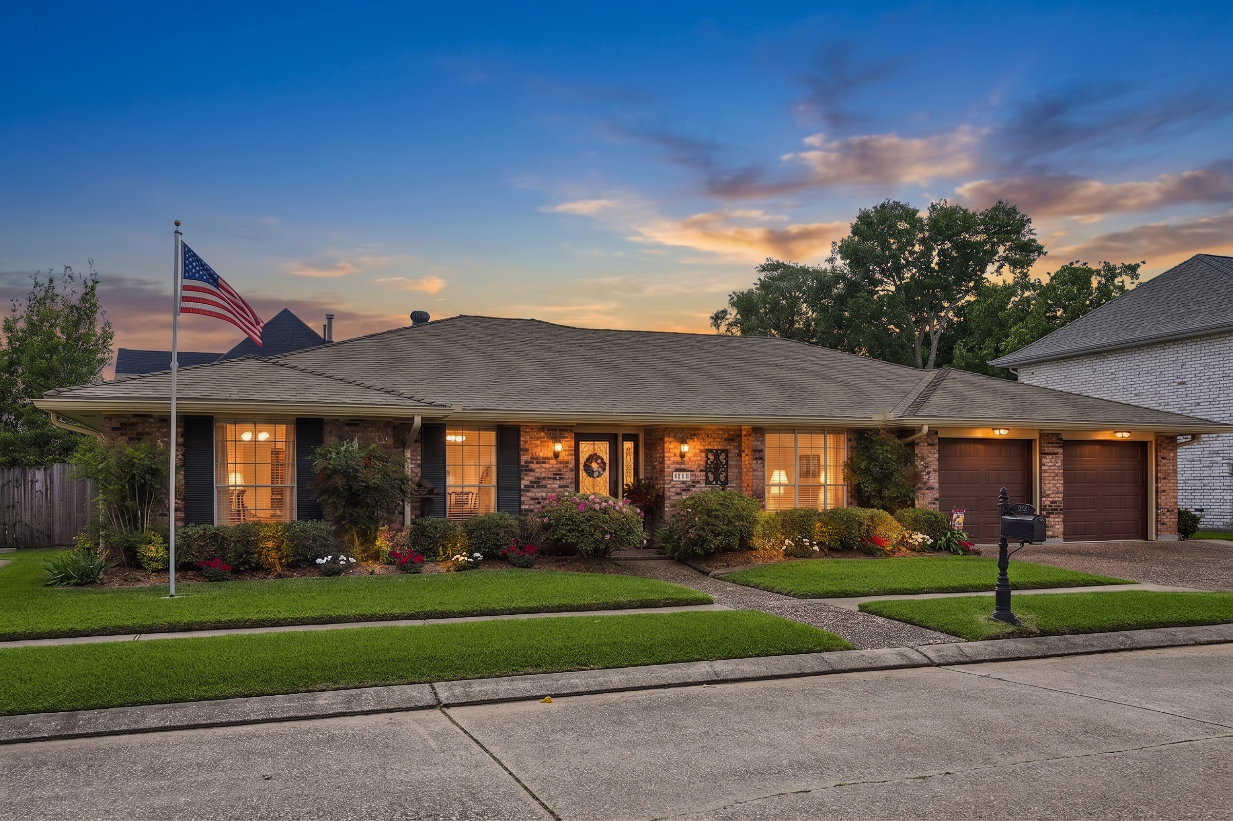 Welcome to desirable Lake Trail Subdivision, where pride of ownership shines throughout this beautifully maintained solid brick home. Lovingly cared for by the same owners for approximately 30 years, this spacious 4-bedroom, 2.5-bath residence offers timeless comfort, thoughtful updates, and room for everyone to spread out and enjoy.Boasting approximately 2,486 living square feet, the home welcomes you with an inviting foyer that opens to multiple living spaces, including a formal living room, formal dining room, and a comfortable den, great for entertaining, relaxing, or everyday living.The kitchen offers granite countertops, a center prep island, stainless and black appliances, recessed lighting, and excellent flow into the breakfast area accented by beautiful exposed brick detail. A stunning exposed brick fireplace adds warmth and character to the main living space.Additional interior features include crown molding, neutral paint throughout, spacious bedrooms, ample closet space with a 2 closets in primary, laundry area, wet bar and a functional layout designed for both privacy and gathering.Step outside to beautifully landscaped front and rear gardens that reflect years of attentive care. Enjoy timed landscape lighting, a sprinkler system, covered patio space for outdoor enjoyment, a two-car garage, and an additional storage shed.Homes with this level of care, space, and charm rarely become available. Schedule your private showing today.