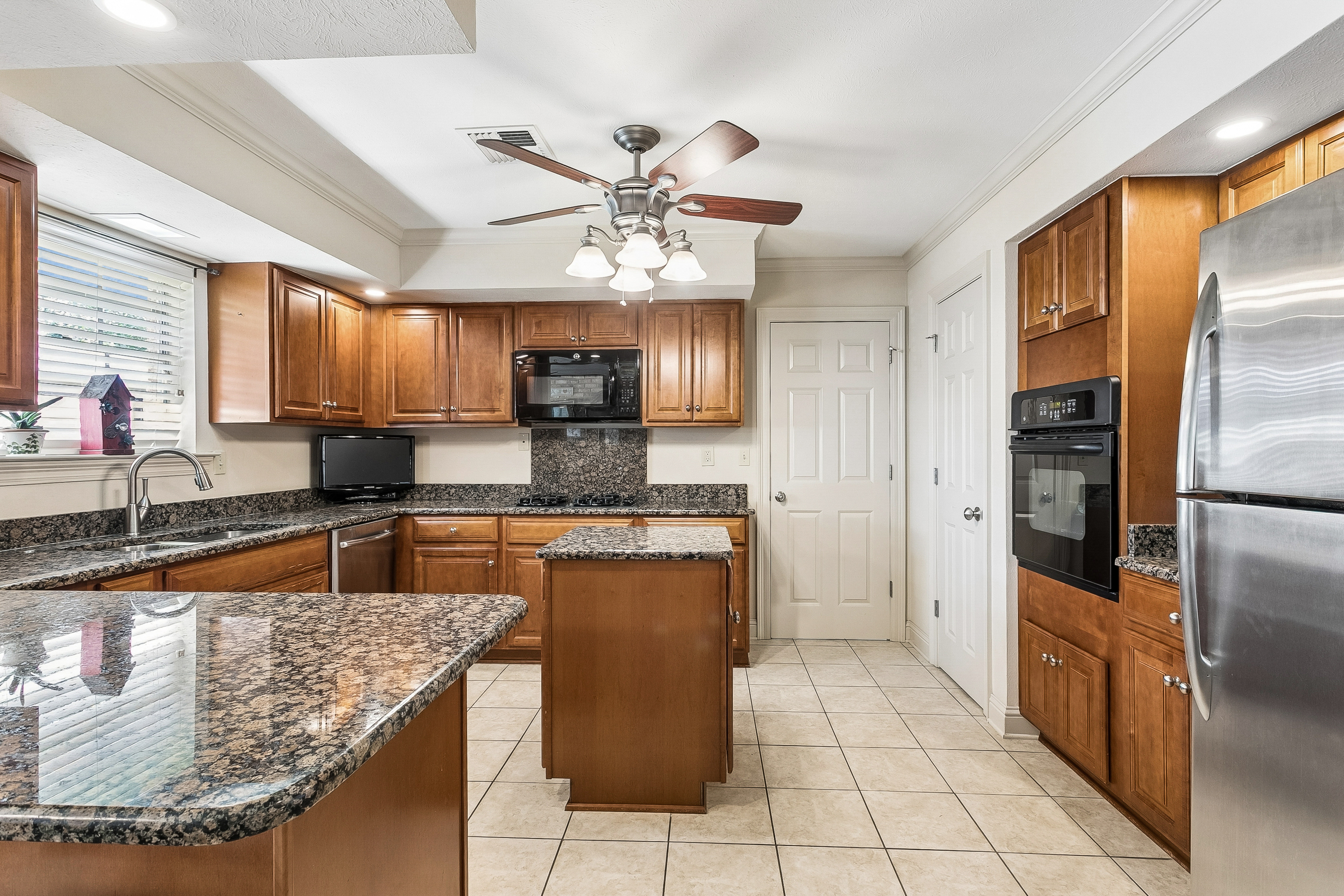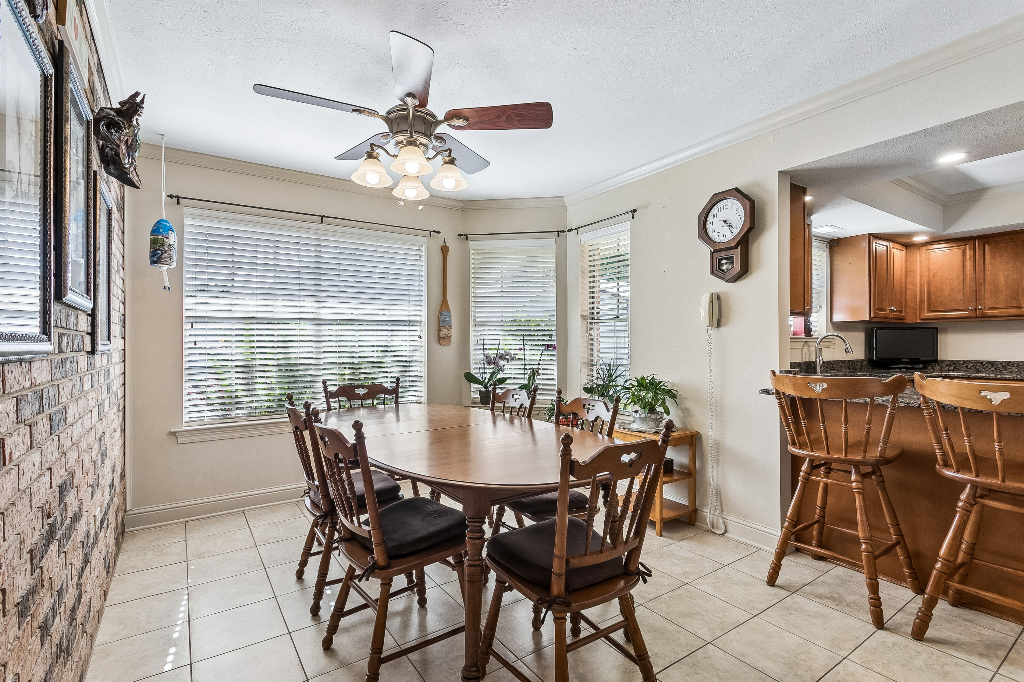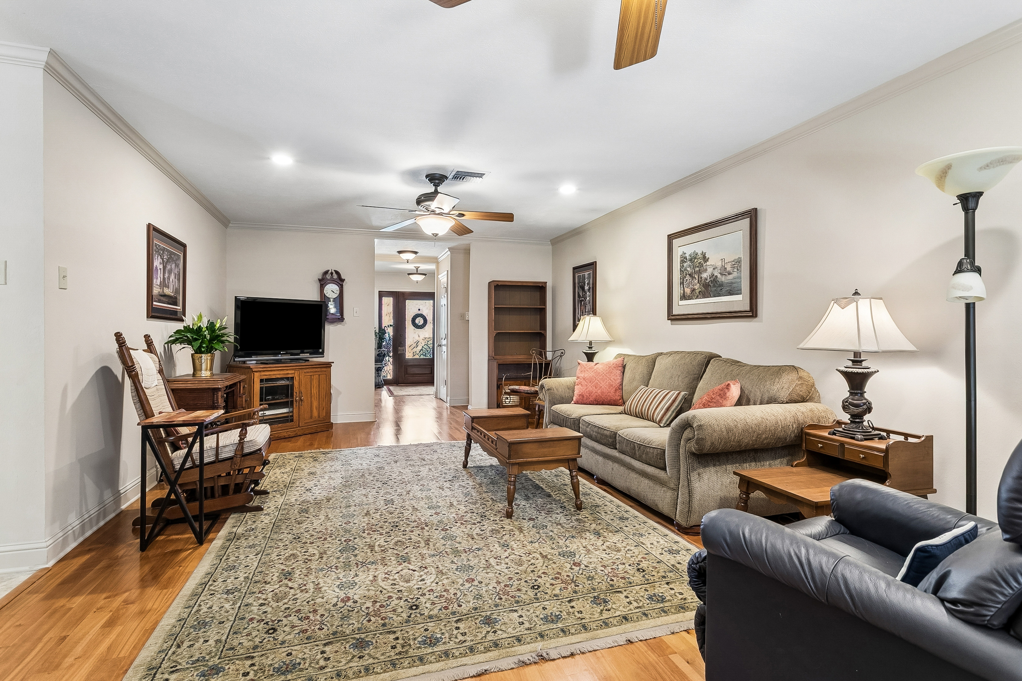 Welcome to desirable Lake Trail Subdivision, where pride of ownership shines throughout this beautifully maintained solid brick home. Lovingly cared for by the same owners for approximately 30 years, this spacious 4-bedroom, 2.5-bath residence offers timeless comfort, thoughtful updates, and room for everyone to spread out and enjoy.Boasting approximately 2,486 living square feet, the home welcomes you with an inviting foyer that opens to multiple living spaces, including a formal living room, formal dining room, and a comfortable den, great for entertaining, relaxing, or everyday living.The kitchen offers granite countertops, a center prep island, stainless and black appliances, recessed lighting, and excellent flow into the breakfast area accented by beautiful exposed brick detail. A stunning exposed brick fireplace adds warmth and character to the main living space.Additional interior features include crown molding, neutral paint throughout, spacious bedrooms, ample closet space with a 2 closets in primary, laundry area, wet bar and a functional layout designed for both privacy and gathering.Step outside to beautifully landscaped front and rear gardens that reflect years of attentive care. Enjoy timed landscape lighting, a sprinkler system, covered patio space for outdoor enjoyment, a two-car garage, and an additional storage shed.Homes with this level of care, space, and charm rarely become available. Schedule your private showing today.