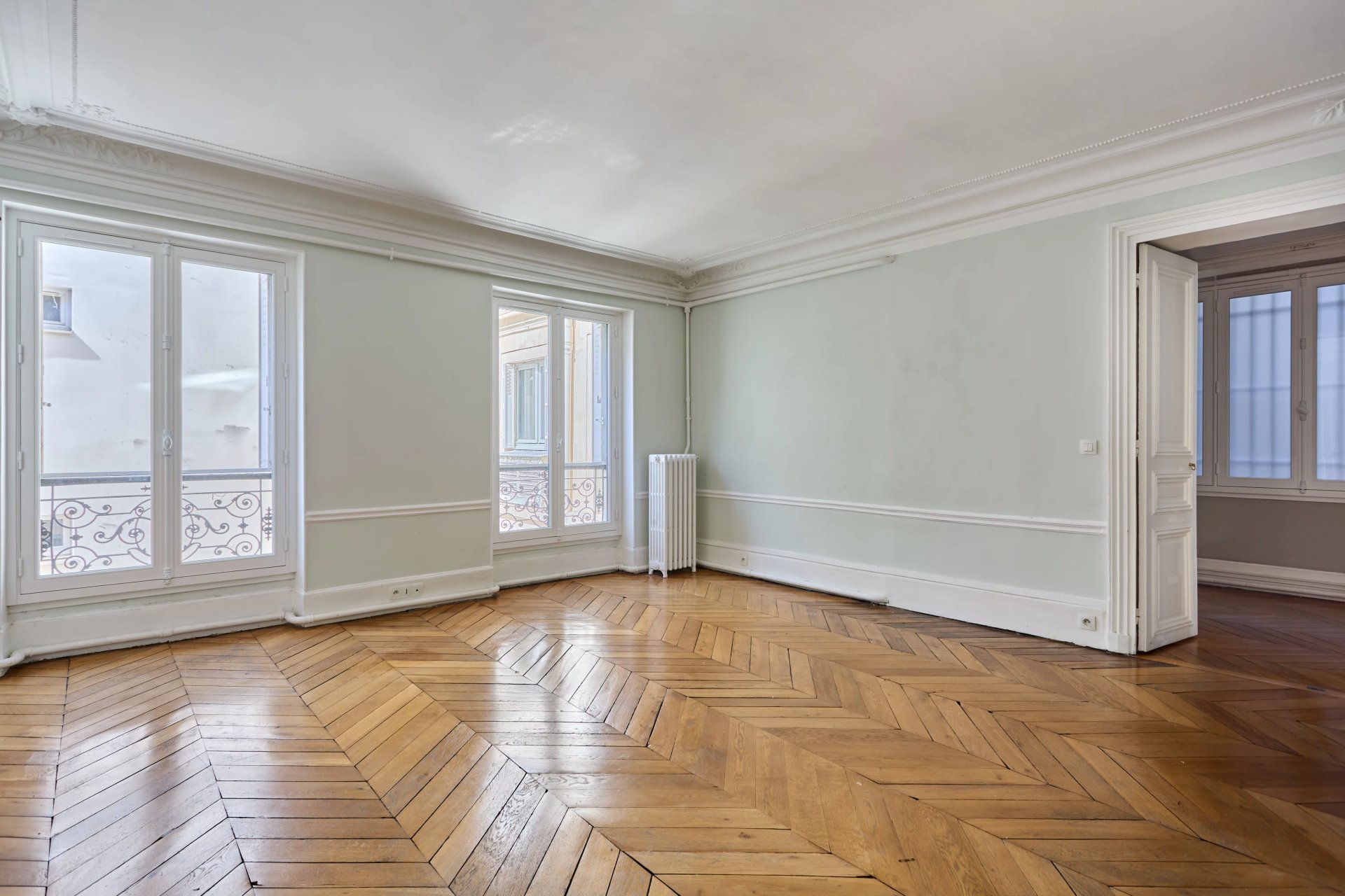 Drouot neighbourhood. This ideal family apartment is on the 4th floor of a recently revamped late 19th century building with a lift. An entrance hall leads to a living/reception room opening onto a balcony, a dining room, a kitchen with a pantry, a master suite with a shower room, two further bedrooms, a bathroom and a utility room.