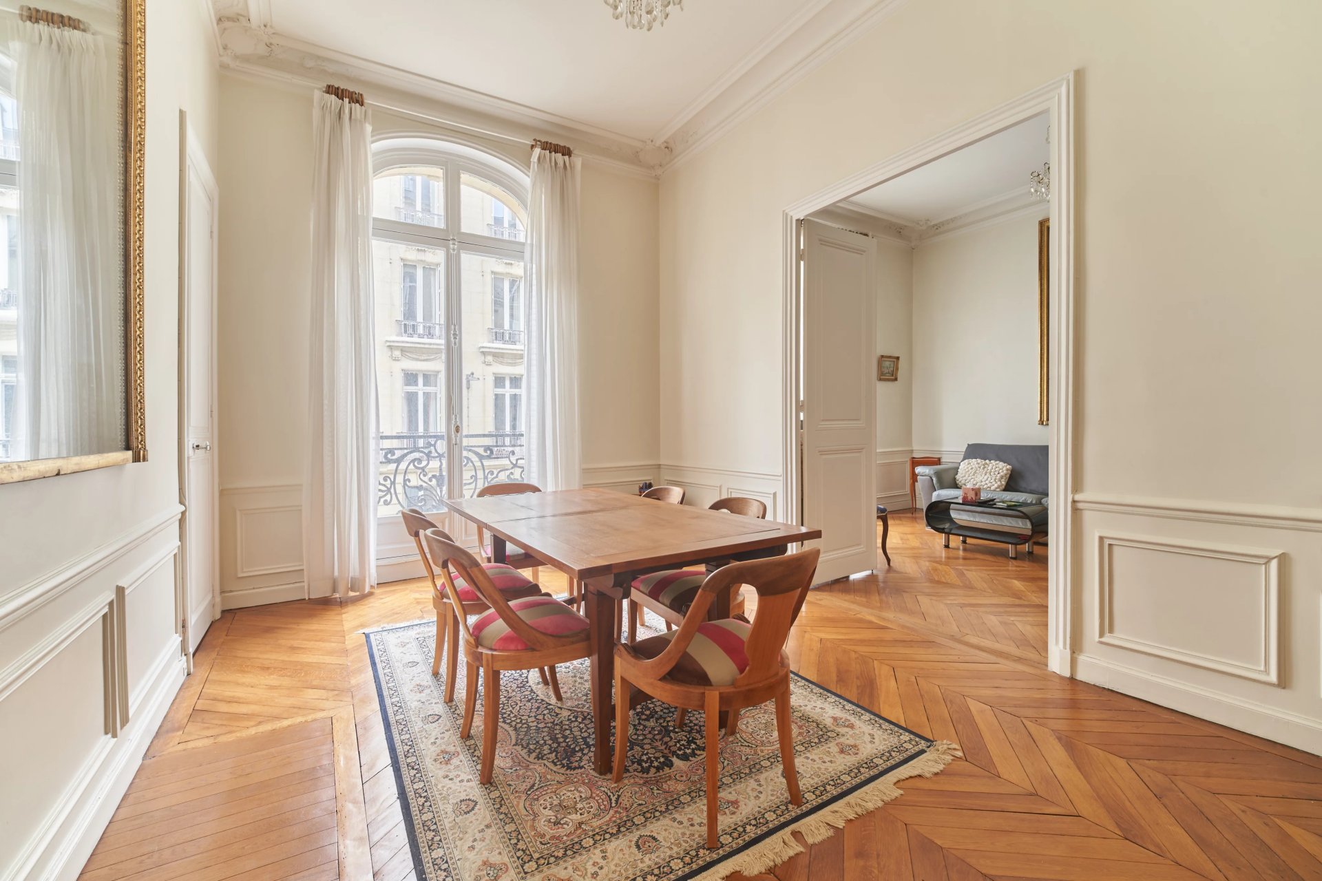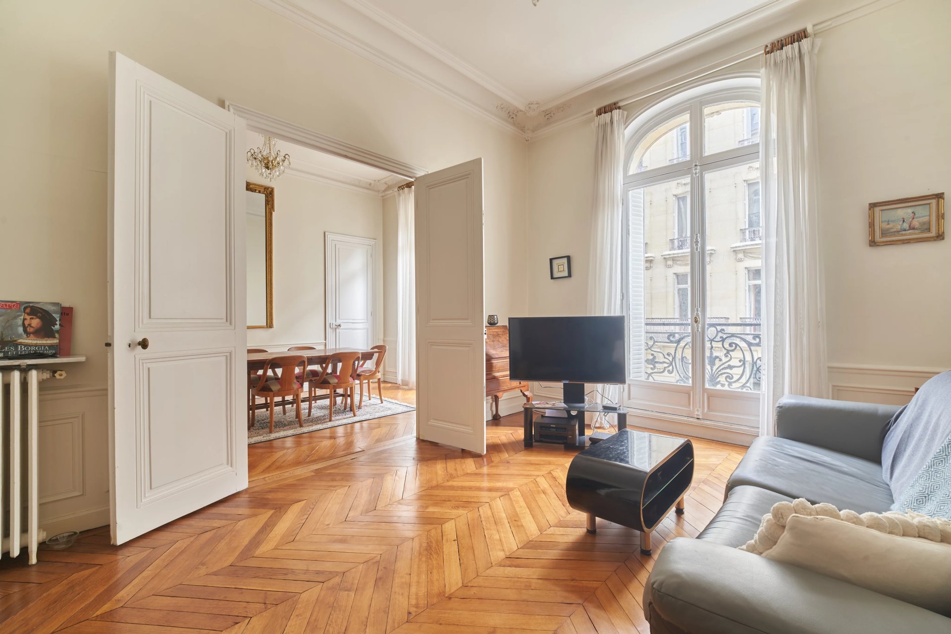 Sole Agent. Avenue Bosquet - Edmond Valentin neighbourhood. This elegant dual-aspect apartment offering 91.65 sqm of living space as defined by the Carrez Law is on the 2nd floor of a luxurious late 19th century freestone building with a caretaker and a lift. Featuring 3.60 metre high ceilings, it includes a living/reception room, a dining room, a kitchen with dining facilities, a spacious bedroom with fitted closets, a bathroom, a utility room and a guest wc.