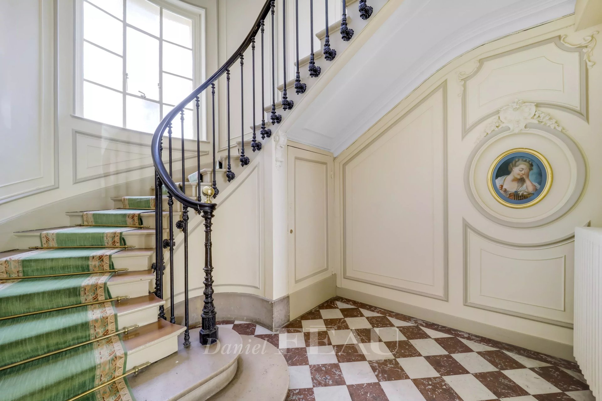 L'accès s'effectue par un perron intérieur, disposition courante à Versailles, qui conduit à une belle cage d'escalier, inscrite à l'inventaire des monuments historiques (ISMH)soigneusement entretenue.