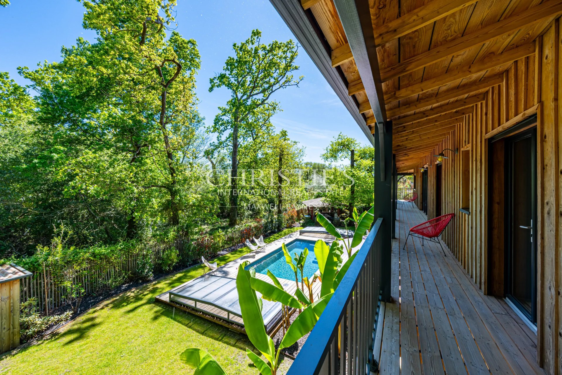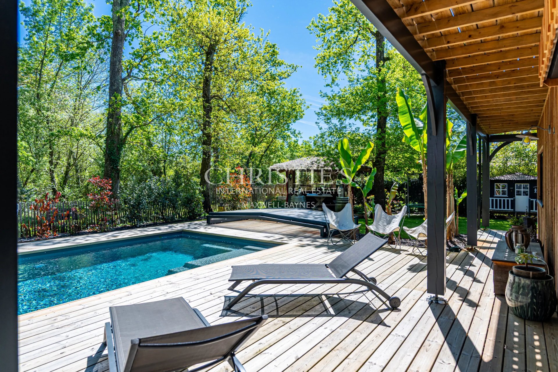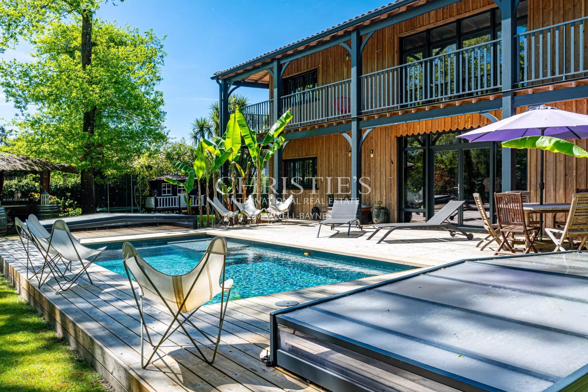 — The swimming pool, promising long and sun-drenched summers on the shores of the Bassin d'Arcachon