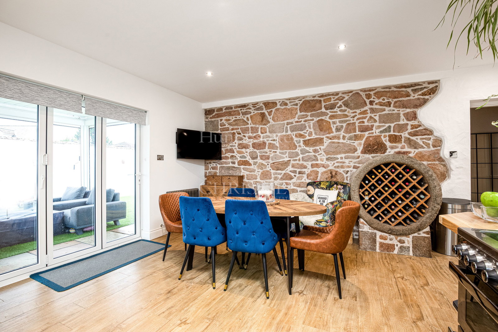 Outside, the garden is thoughtfully designed with low-maintenance artificial turf and paving, providing a generous and versatile space ideal for entertaining.