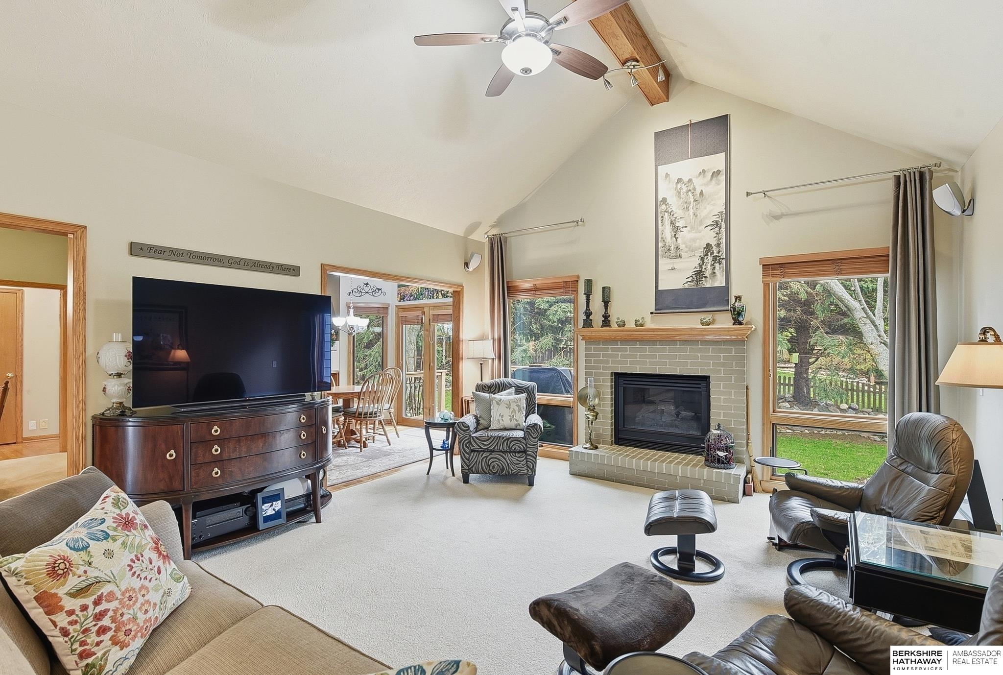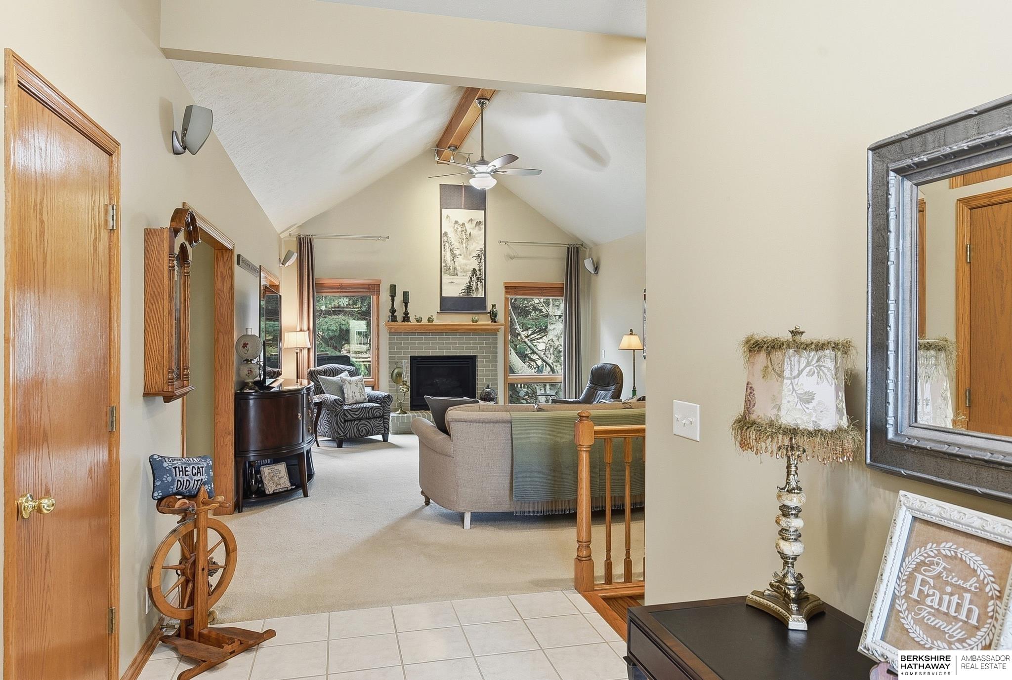 Pre-inspected ranch in Millard's Cinnamon Creek with a spacious, open main floor. Vaulted cathedral ceilings and a gas fireplace highlight the great room, flowing into a formal dining room with built-in hutch. Eat-in kitchen features a built-in desk and dining area with direct access to the deck - ideal for everyday living and entertaining. Generous sized primary suite offers a walk-in closet, jacuzzi tub, and separate shower. Two additional main-floor bedrooms and full bath. Expansive unfinished basement provides excellent storage or future finish potential. Private backyard lined with mature trees, plus sprinkler system and gutter guards. Key updates include Trane high-efficiency furnace, newer dishwasher and refrigerator, central vac, Class 4 Malarkey impact-resistant shingles, added attic and basement insulation, radon mitigation system, and 50-gallon water heater.