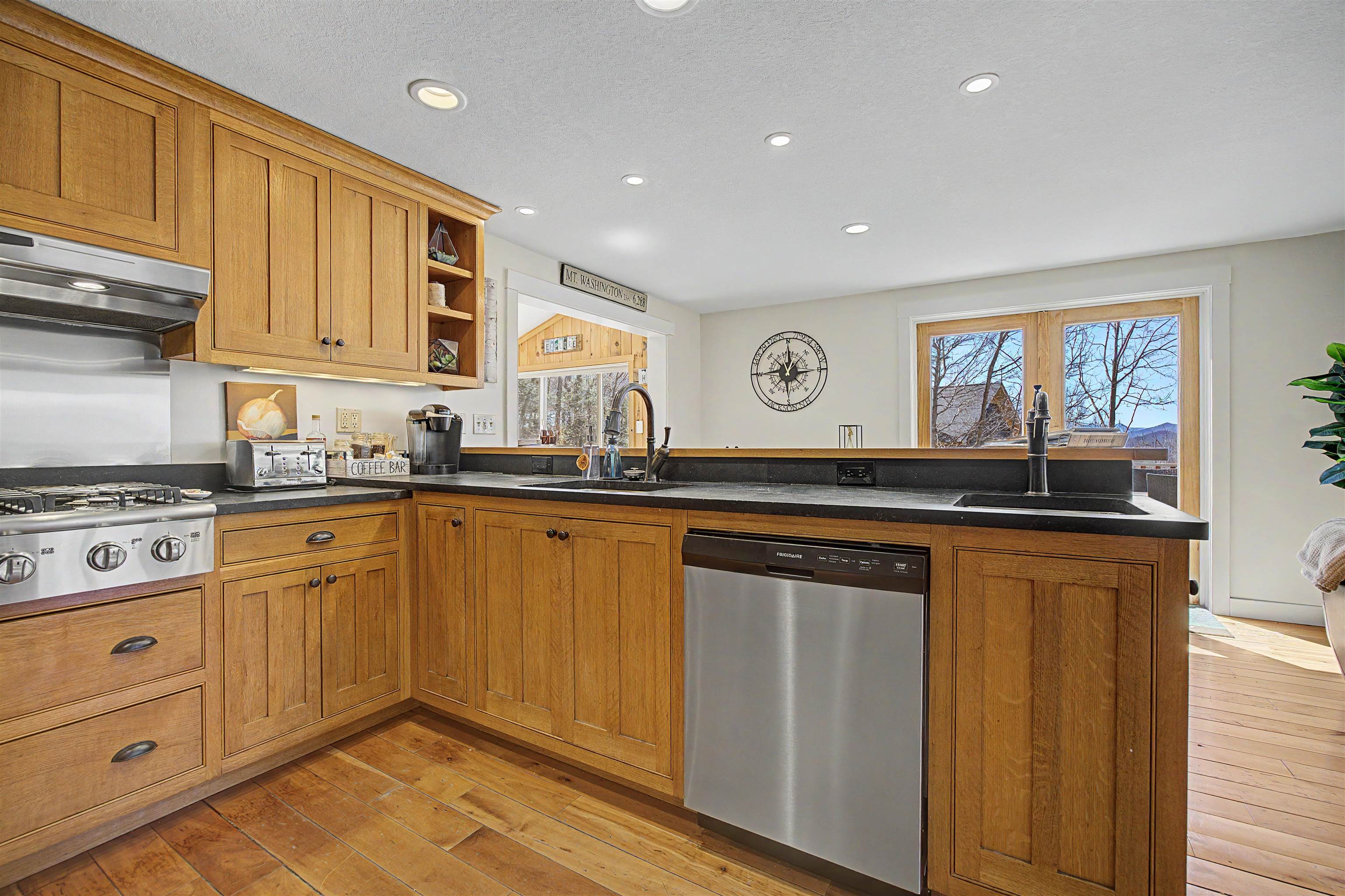 Experience mountain living in this stunning contemporary home on .97 private acres in sought-after Jackson, New Hampshire. Offering 3+ bedrooms, 3 baths, and 2,400 finished square feet, this property blends refined mountain comfort with a proven short-term rental track record. ATTENTION INVESTORS! Currently operating as a successful STR, the home generated $104,000 in net income in 2025 and has over 400 5-star reviews. It comes with existing spring/summer bookings already in place, providing immediate income potential, with additional upside in fall and winter booking seasons. Designed to maximize its setting, the home features abundant windows filling the interior with natural light and capturing rare, unobstructed mountain views. No expense was spared in maintaining this beautiful home, which must be seen to be believed; photos do not do this home justice. The custom gourmet kitchen includes soapstone countertops, a 6-burner gas cooktop, double ovens, and generous prep space. Radiant heat and well-planned systems provide year-round comfort. Outdoor living is highlighted by a large wraparound deck and covered porch with a Weber grill and gas firepit. The lower level includes a dedicated game room with shuffleboard and foosball, adding strong guest appeal and rental performance. Recent upgrades include a new asphalt driveway with improved drainage and culvert, plus smart home features such as WiFi entry, security cameras, and remote thermostats. Additional features include a whole-home backup generator, two-car garage with storage above, and the home is being sold fully furnished for turnkey use. Ideally located minutes from premier ski resorts, hiking, Story Land, and North Conway dining and shopping, this four-season retreat offers a rare combination of lifestyle value and strong income potential. Open House Saturday 4/18 12pm-2:00pm