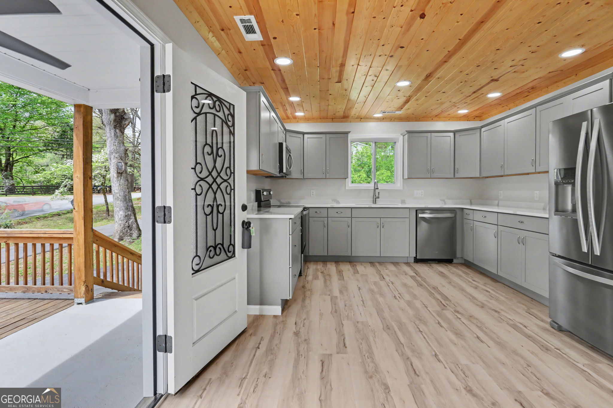 Tucked just minutes from the heart of downtown Clayton, this new construction home is waiting for you! Featuring 3 spacious bedrooms and 2 full baths, this home offers truly move-in-ready convenience. Step inside to an inviting open-concept living and kitchen area, perfect for both everyday living and entertaining. The kitchen shines with sleek quartz countertops and flows seamlessly into the main living space, all accented by stunning tongue-and-groove ceilings that add warmth and character throughout. An oversized laundry room provides extra functionality and storage, while the durable metal roof and paved circular driveway offer both practicality and curb appeal. Enjoy the ease of being just two minutes from downtown Clayton's shops, dining, and attractions, all while having a comfortable retreat to call home.