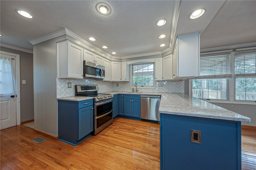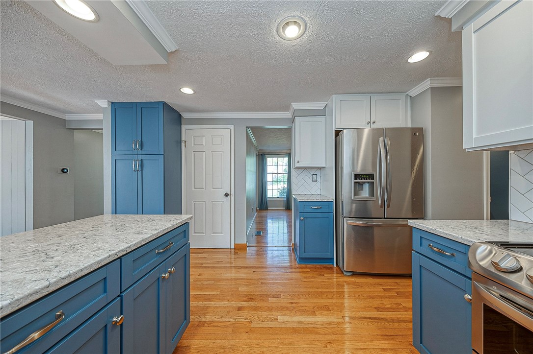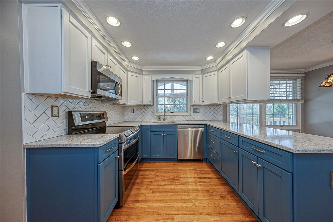 Nestled on a quiet Cul-de-sac street, this charming 4 Bedroom home features gleaming hardwood flooring on the first and second floors. Updated eat-in kitchen is light and bright, opens to the family room and is accented with stainless steel appliances and newer quartz countertops. Tree lined walkable community is minutes to Foster Elementary School. Large 27x16 covered rear deck backs to wooded area with stairs to lower patio and driveway. Two wood burning fireplaces in the living room and family room. Beautiful French doors accent the Living room. Roof installed 2019, kitchen updated 2023, 1/2 bath remodel 2021, garage doors and entry door 2019. First floor laundry and half bath. SPACIOUS bedrooms with plenty of closet space. Lower-level game room has extra storage and walkout to the lower patio includes the HOT TUB and mini fridge. 2 car integral garage includes the second refrigerator.