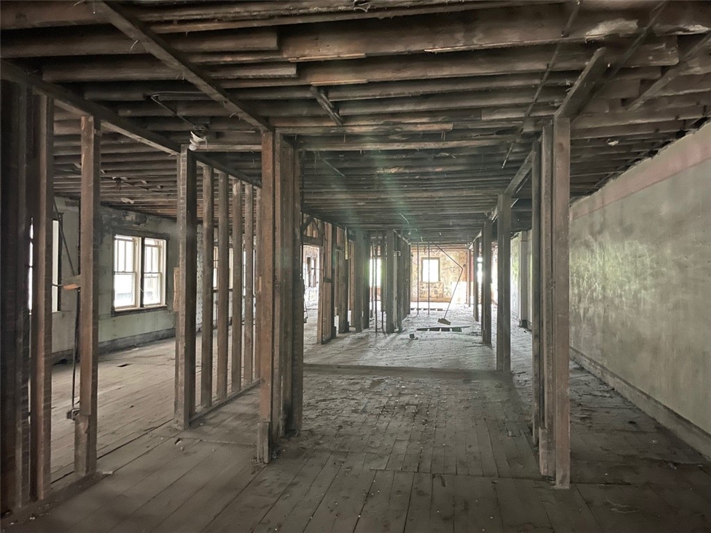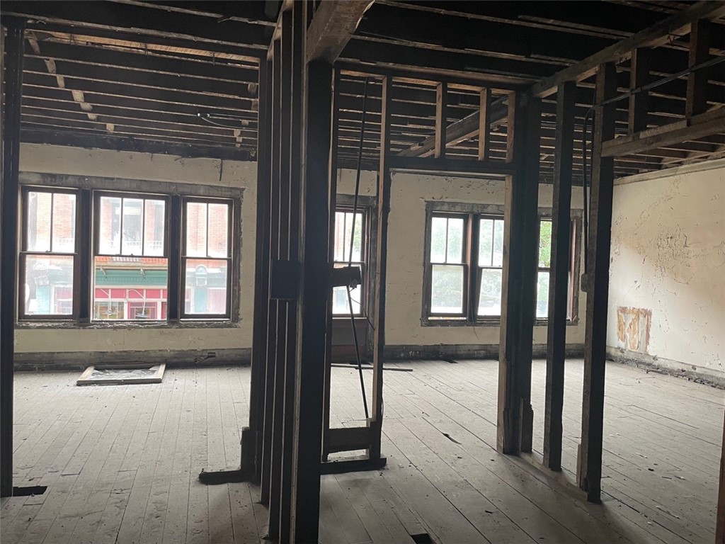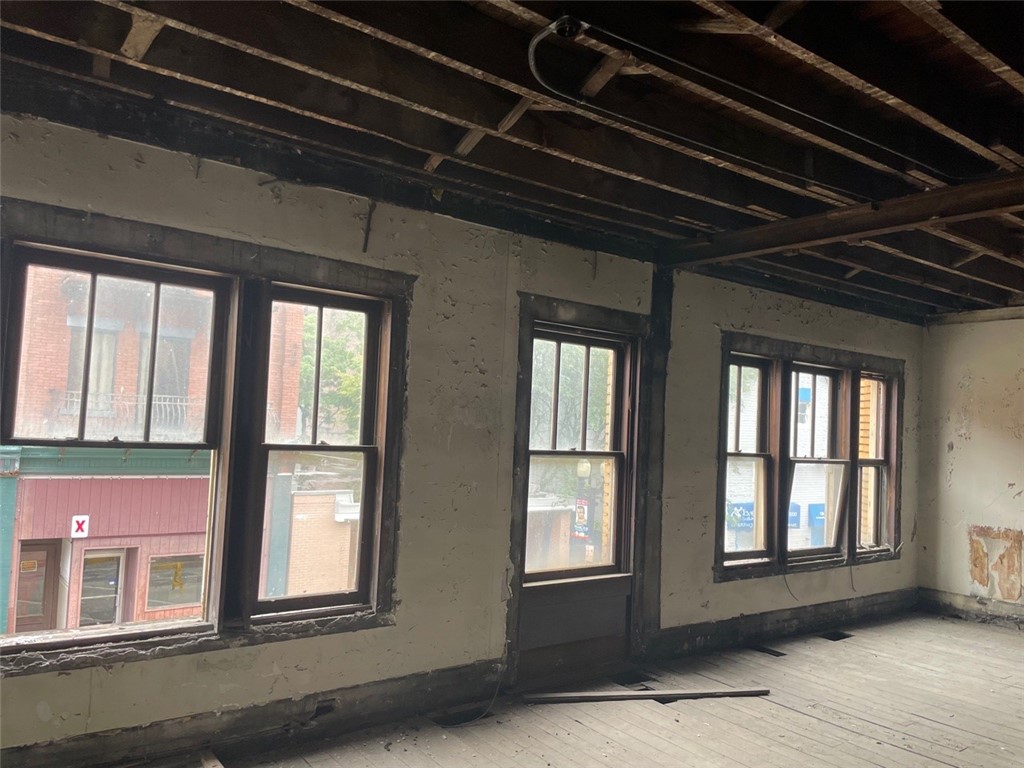 Redevelopment Opportunity with Options! Located in the heart of the Downtown Greensburg Business District this property is primed for development. The 11,940 square foot three floor property is being delivered with the heavy lifting already finished. Fully gutted with the interior demolition completed, this building provides a great variety of options and opportunities. Take advantage of each floor approximately 3980 square feet shotgun shell layout with elevated ceilings. This first floor provides a great opportunity for a restaurant, tavern, fitness, coffee, bistro, medical, and more. The second/third floor could provide great office, apartment conversion, cigar bar, or other creative uses. The lower level provides additional opportunity with garage access and warehouse space. Finally this site investment has speculative renderings and preliminary drawings available that support those renderings. Adjacent to Public Parking Garage.