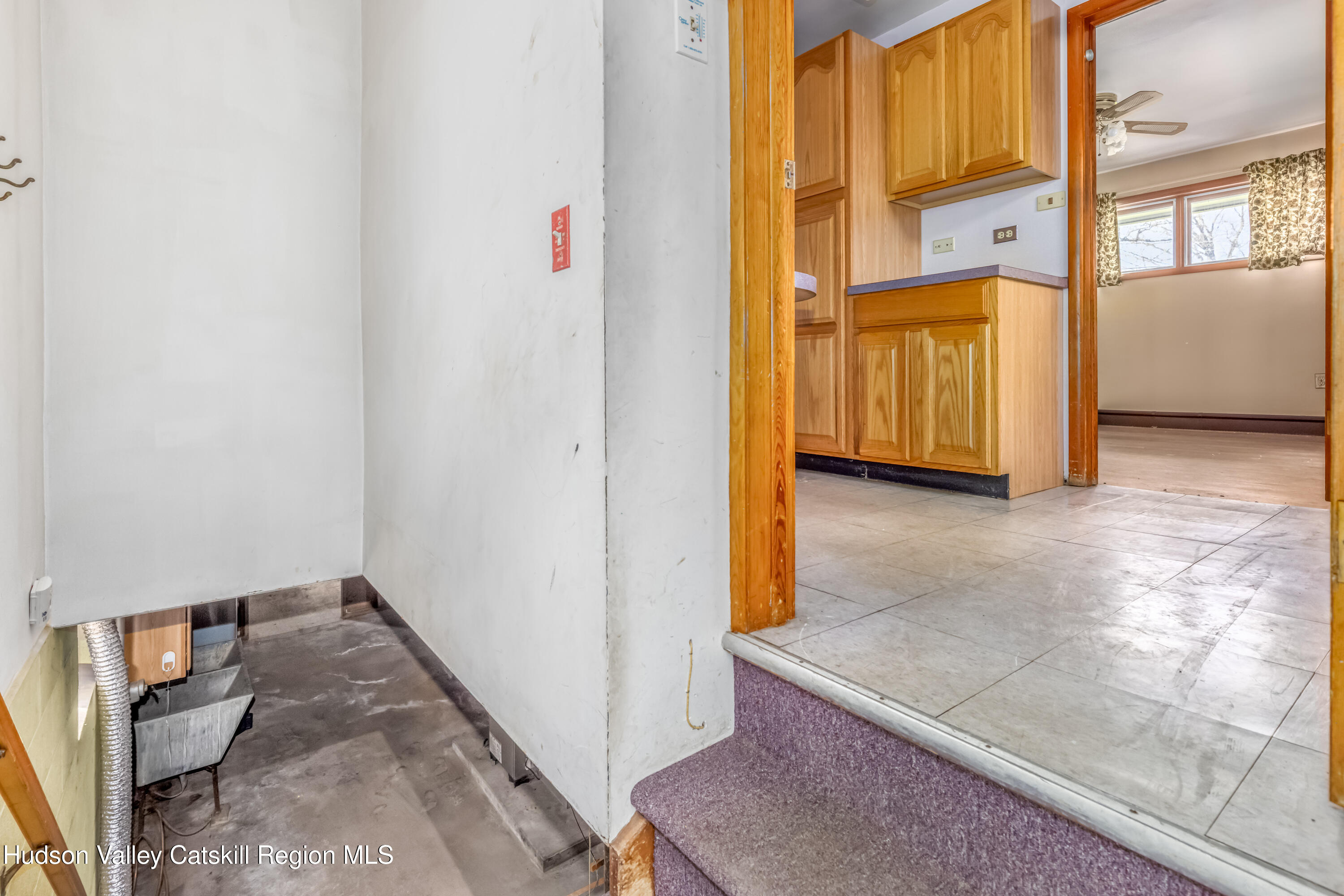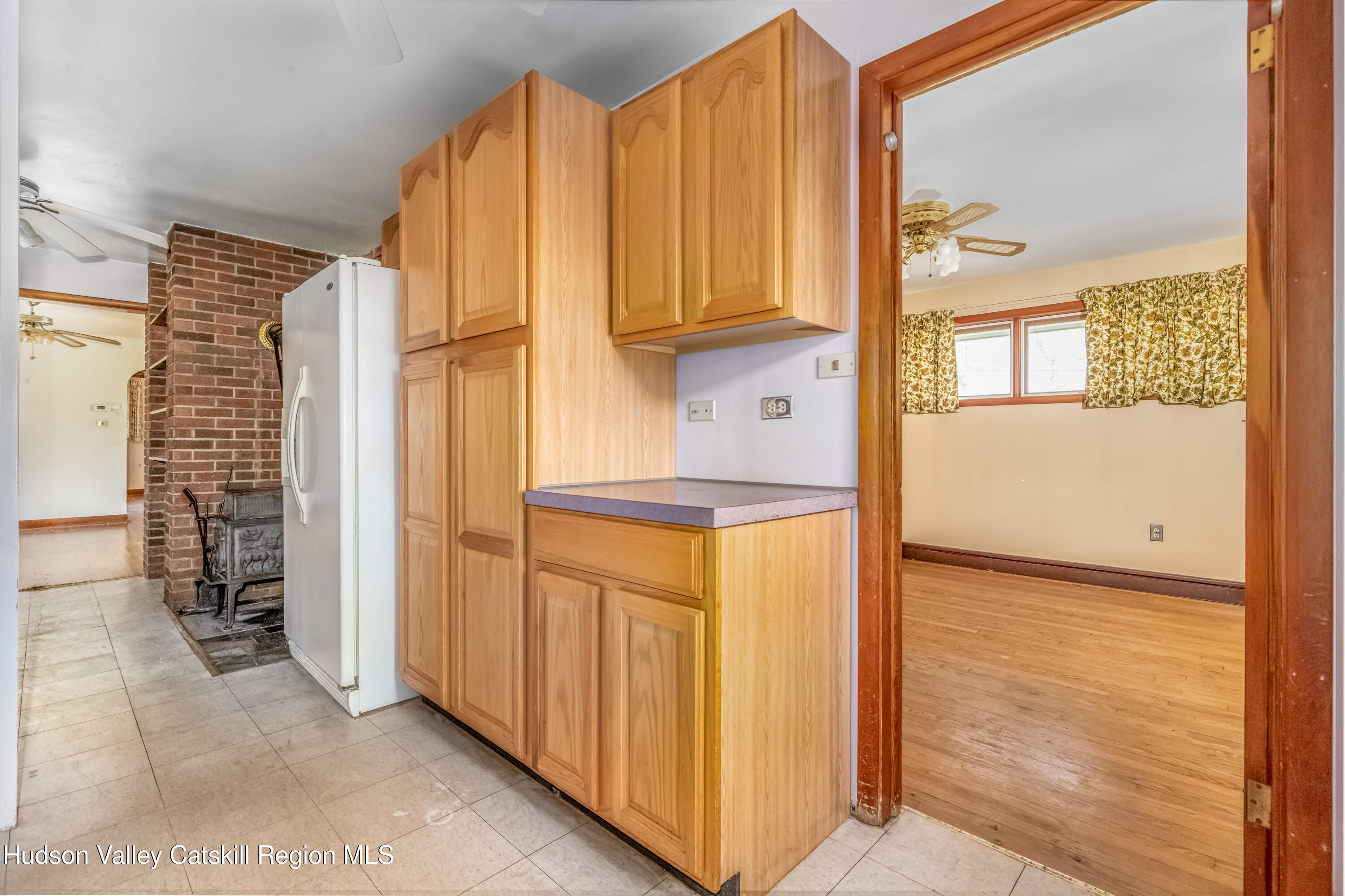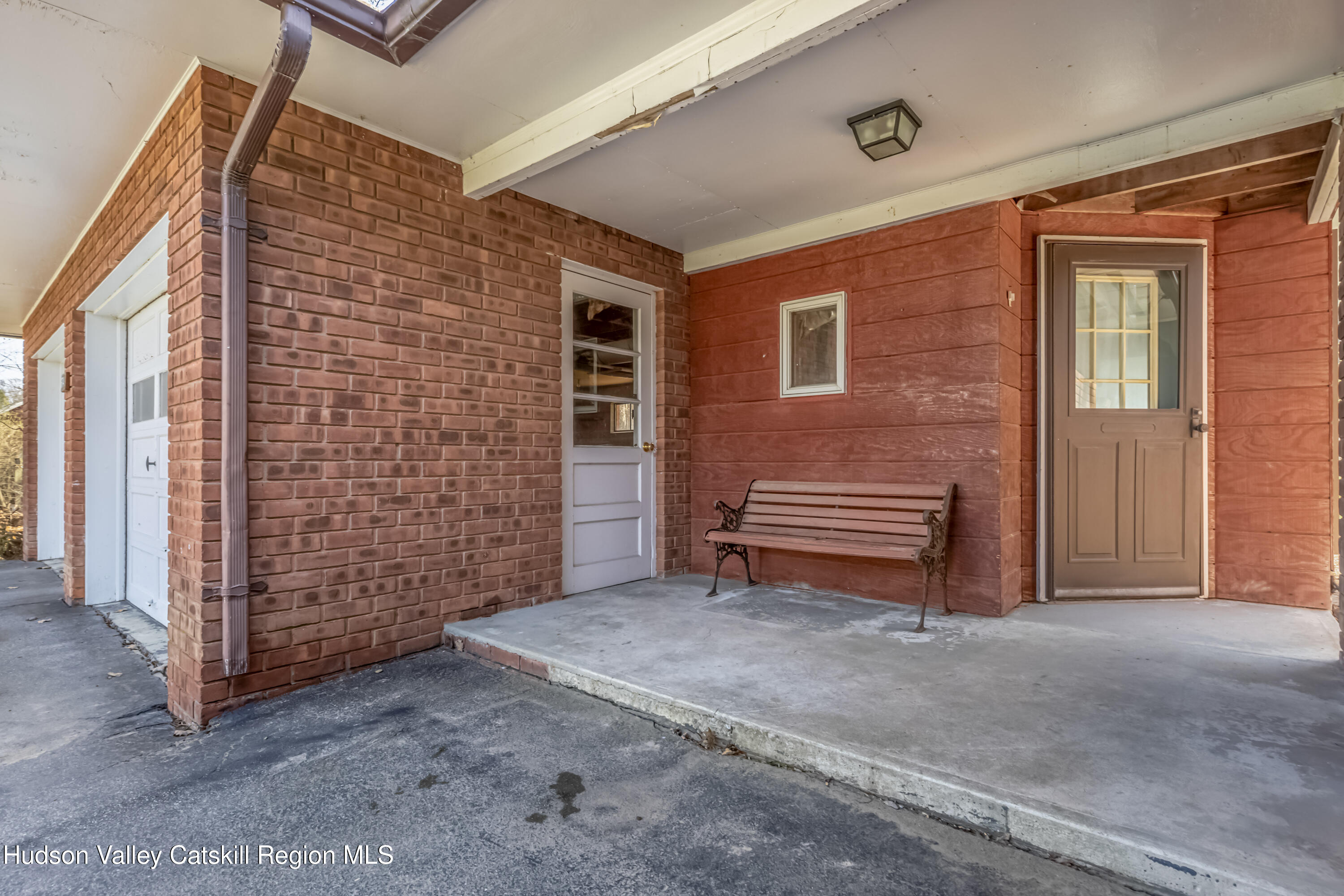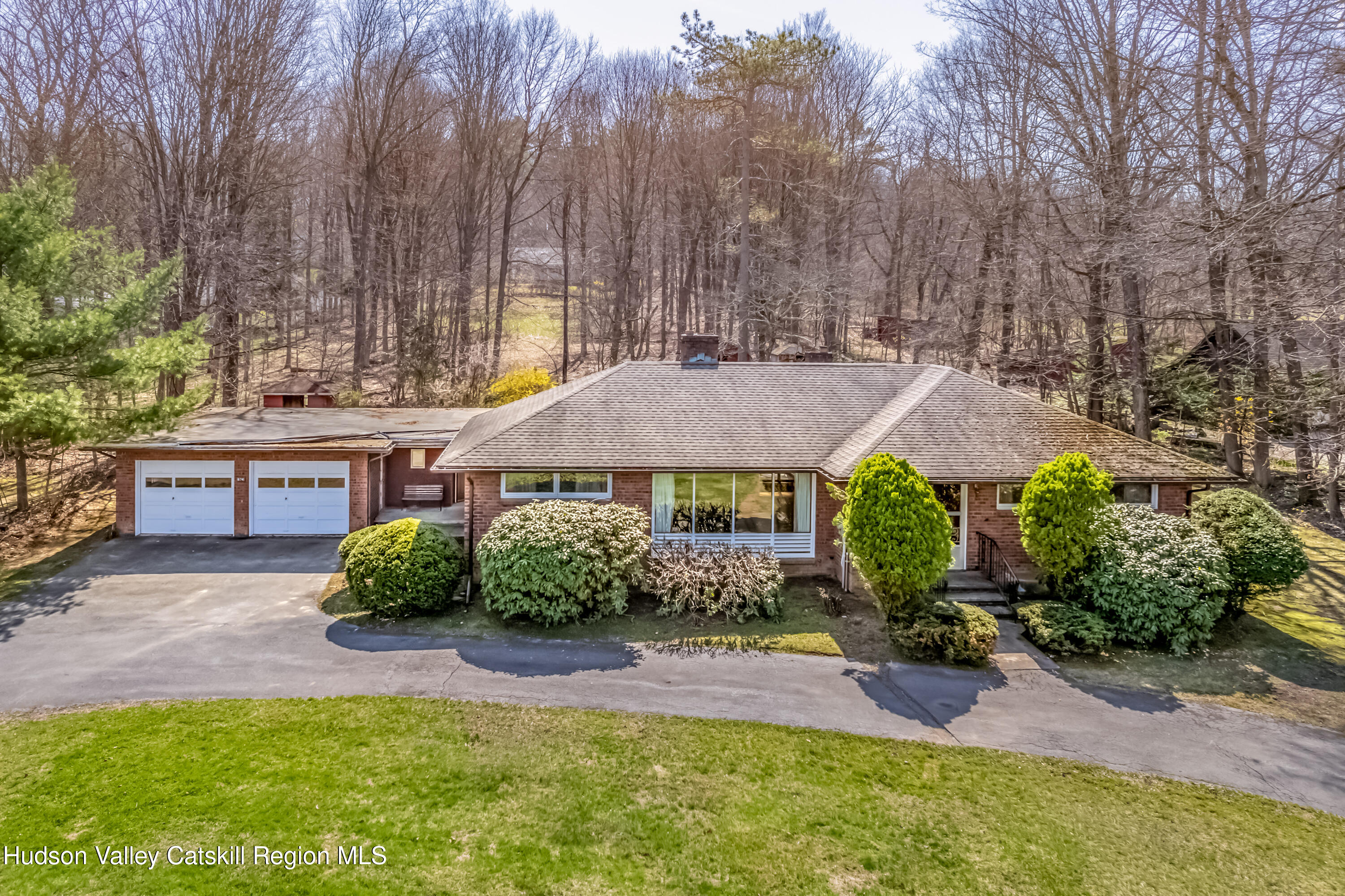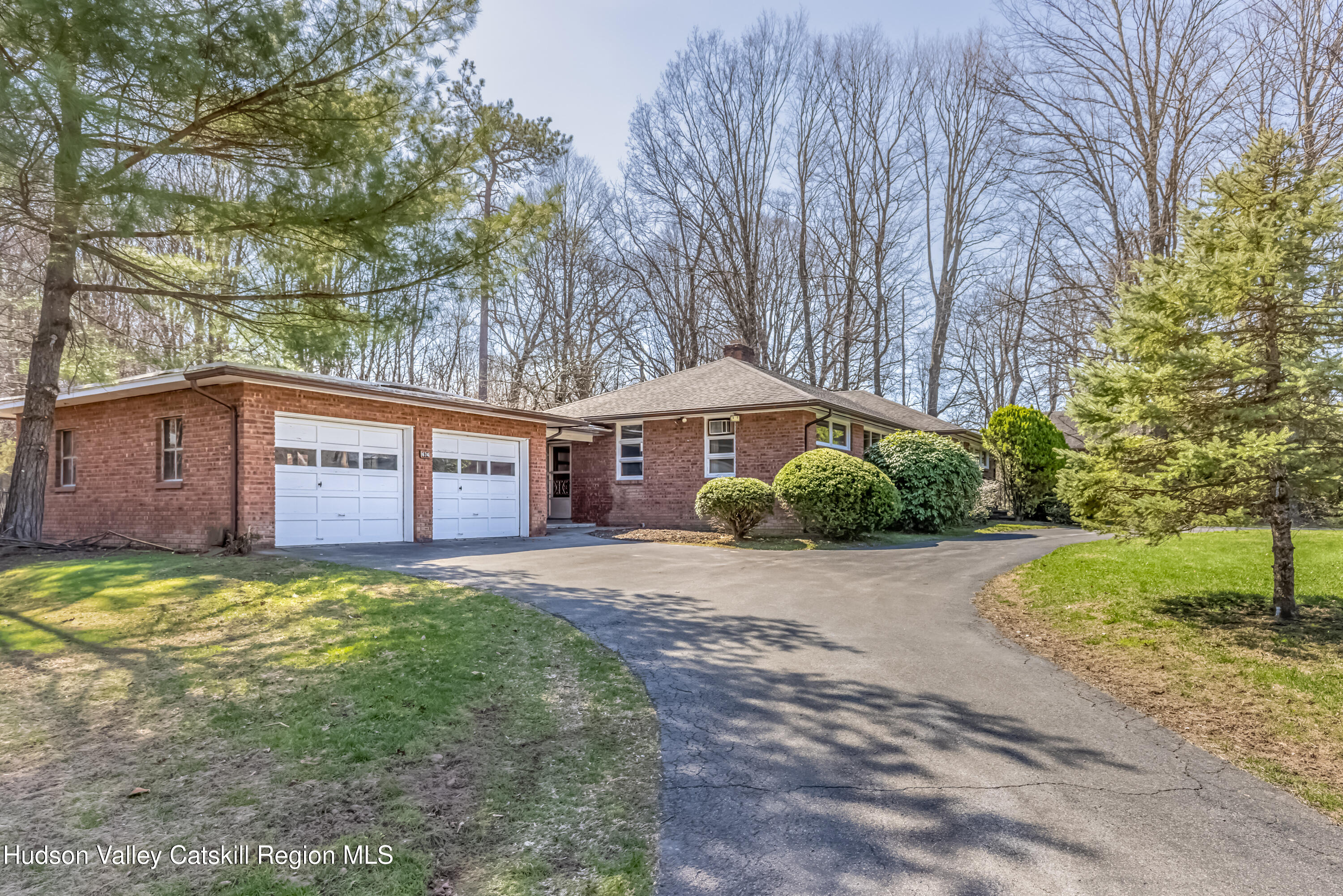 Charming Mid-Century Brick Home on 5.3 Acres in Old Hurley with Endless Potential. Solid, sweet, and full of character, this 1950-built brick ranch offers 3 bedrooms, 1 bath, and is made up of two parcels totaling 5.3 acres. The main home rests on a 2.1-acre lot with a circular driveway, while an additional contiguous 3.3-acre parcel further back from the road provides exciting possibilities. Built by its original family 77 years ago, this mid-century gem features hardwood floors, a classic hipped roof, and three wood-burning heat sources: a stove in the basement, one in the kitchen, and a striking two-sided fireplace in the living room. The propane furnace with central air and a 200 amp panel were installed in the past year. A nearly 500 sq ft two-car garage is connected to the home by a charming breezeway, and a sunroom/garden room awaits your vision for restoration. The full basement includes a separate room ideal for a workshop, studio, or hobby space. This property offers exceptional flexibility--restore and enjoy the existing home, take advantage of the additional building lot, or revive the historic orchard and gardens once cherished by the Roosa family. Ideally located just minutes from uptown Kingston, the NYS Thruway, and the Kingston Rail Trail, which connects to the Hurley Rail Trail for over 13 miles of scenic walking and biking through Marbletown and Rochester. All this just around the corner from one of the most historic Main Streets in the country, approx 2 hours to NYC and 20 minutes to Amtrak in Rhinecliff. This is an estate sale so is being sold in it's current condition and is priced accordingly.