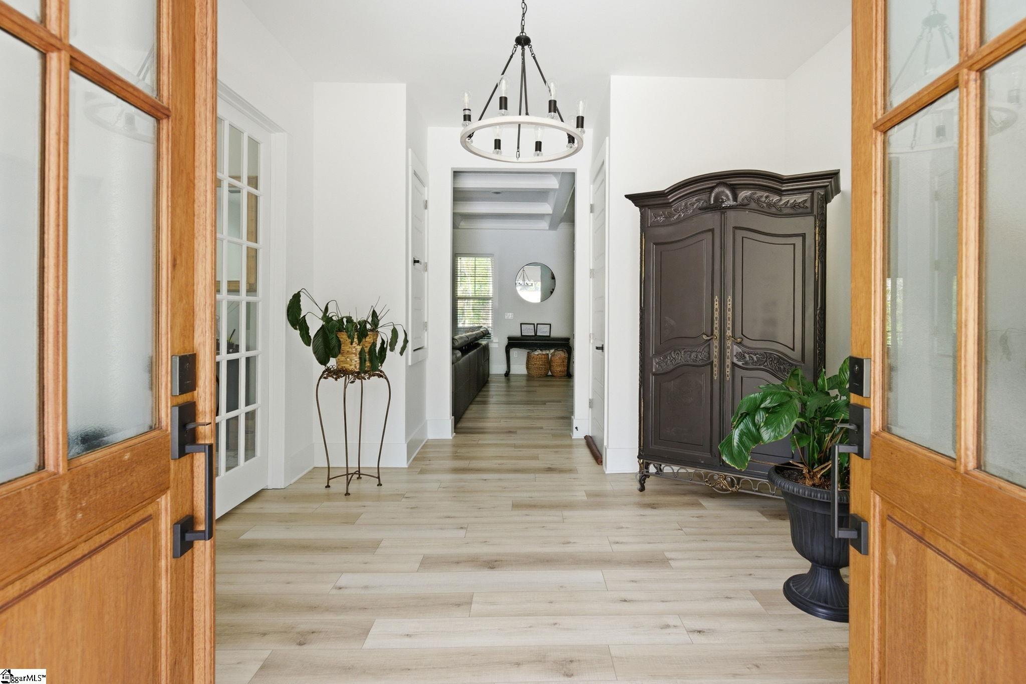 Welcome to a stunning, nearly-new Craftsman estate where timeless design meets modern luxury - perfectly positioned on a private, wooded 1.45-acre corner lot. This impressive 2-story home with a fully livable walkout basement offers over 6,200 square feet of thoughtfully designed living space. From the moment you arrive, the classic hardboard siding accented with stone and the inviting wraparound front porch set the tone for what's inside. Step into an open-concept main level anchored by a chef's kitchen featuring a large eat-at island, double wall ovens, and high-end appliances - ideal for entertaining or everyday living. The main-level primary suite is a true retreat, complete with a luxurious, well-appointed bath showcasing a freestanding soaking tub, oversized walk-in shower, and an expansive dressing room. A second main-level bedroom - currently used as an extension of the dressing space - offers flexibility and can easily be converted back into a sixth bedroom. A dedicated office/study and screened porch add both function and comfort. Upstairs, you'll find three spacious bedrooms, along with a versatile loft and additional rec space - perfect for study, relaxation, or play. In addition is a finished attic storage area. The fully finished basement expands the home's possibilities with a second primary suite, full kitchen, media room, recreation room, Den, workshop, and abundant storage with convenient garage door access. Walk out onto an impressive 43' x 28' patio overlooking the serene, tree-lined backyard. Additional highlights include multiple water heaters, conditioned walk-in attic storage, and a side-entry oversized two-car garage. Enjoy the best of both worlds - peaceful, nature-filled surroundings in a neighborhood known for its larger lots and privacy, while still being just 15 minutes from shopping, dining, and everyday conveniences, and approximately 30 minutes to GSP International Airport. Located near highly regarded schools, this home truly offers space, flexibility, and lifestyle without compromise. Key Features: 5 Bedrooms (potential 6) 4 Full Baths 2 Half Baths Over 6,200 sq ft of living space 1.45-acre private, wooded corner lot Wraparound front porch + screened porch Main-level primary suite with luxury bath & dressing room Open-concept living with high-end kitchen & large island Double wall ovens + premium appliances Dedicated office/study on main Fully finished walkout basement with: Second primary suite Full kitchen Media room + rec room Workshop + storage with garage access Expansive 43' x 28' outdoor patio 3 bedrooms upstairs + loft + additional rec space Side-entry 2-car garage Multiple water heaters Conditioned walk-in attic storage Quiet, wooded neighborhood with spacious homesites Convenient to shopping, dining & major routes Approx. 30 minutes to GSP International Airport