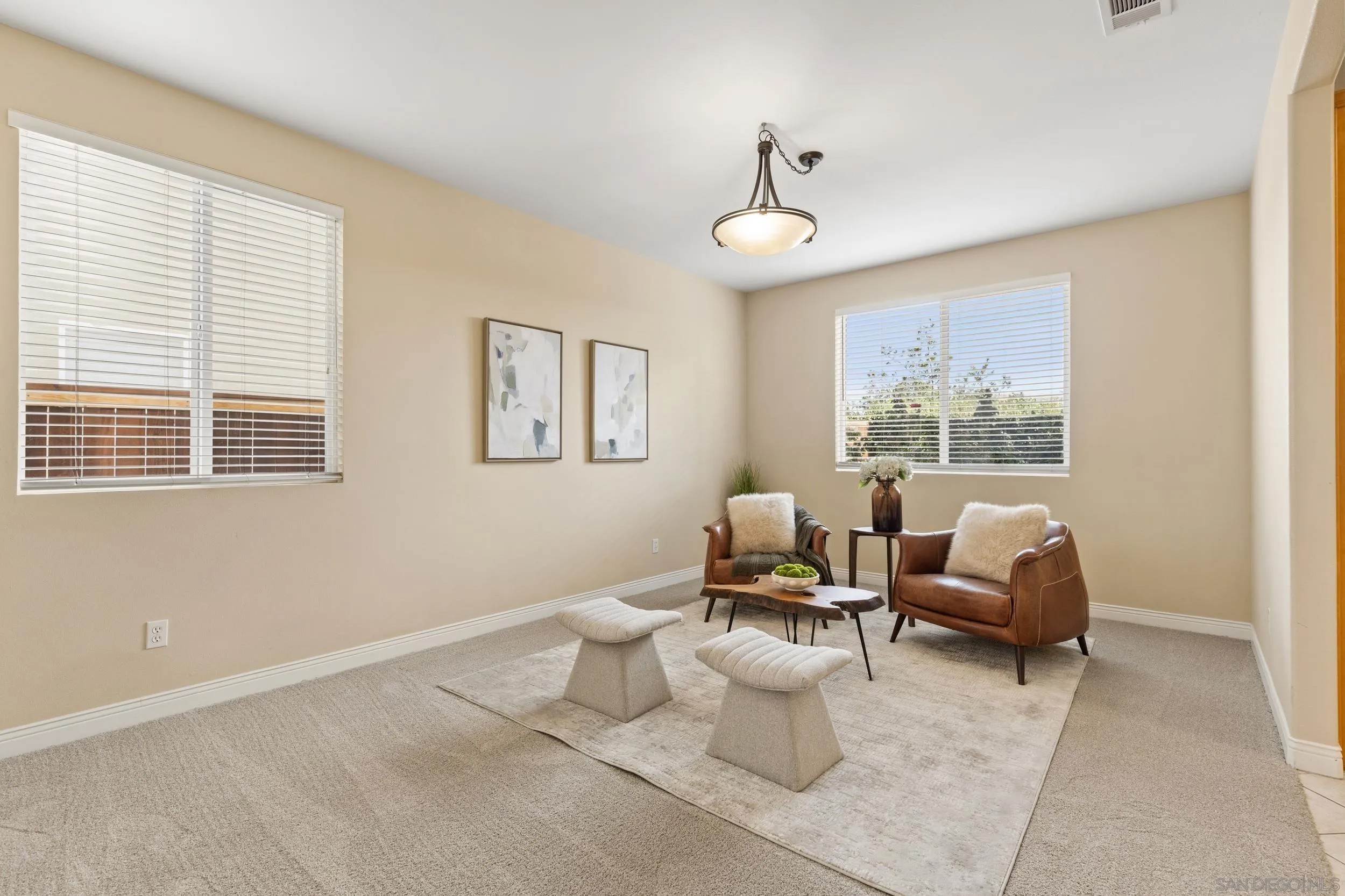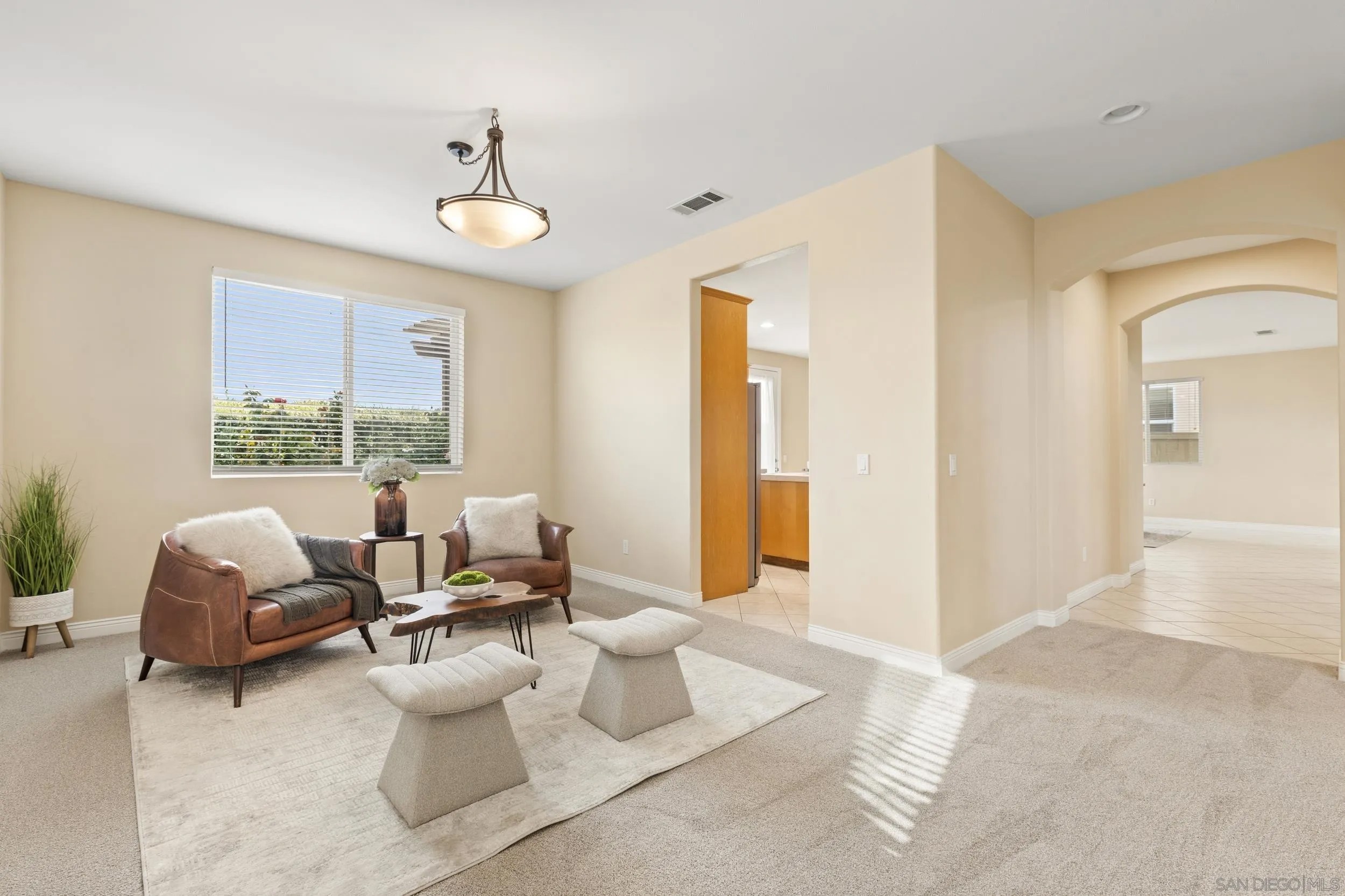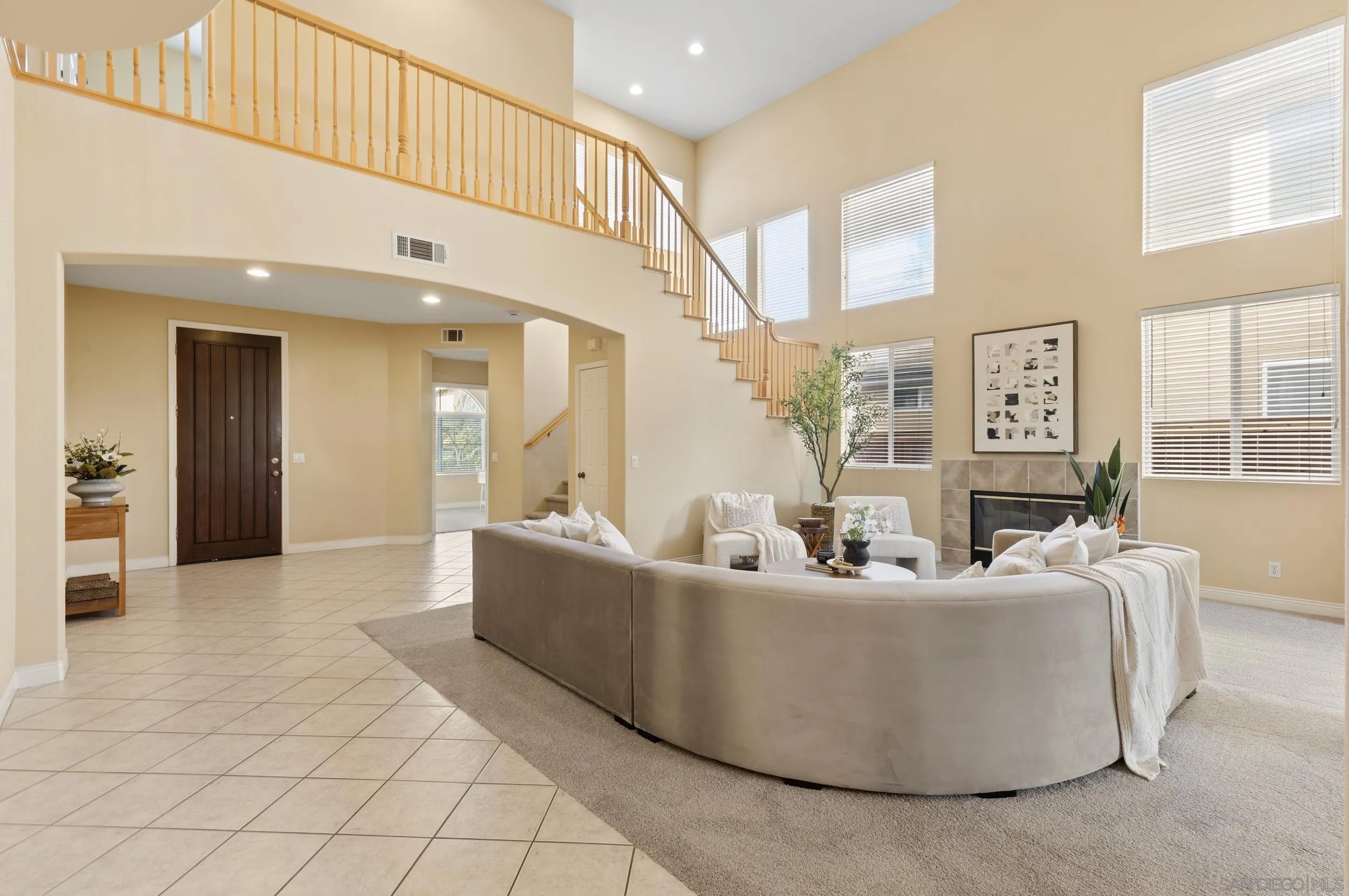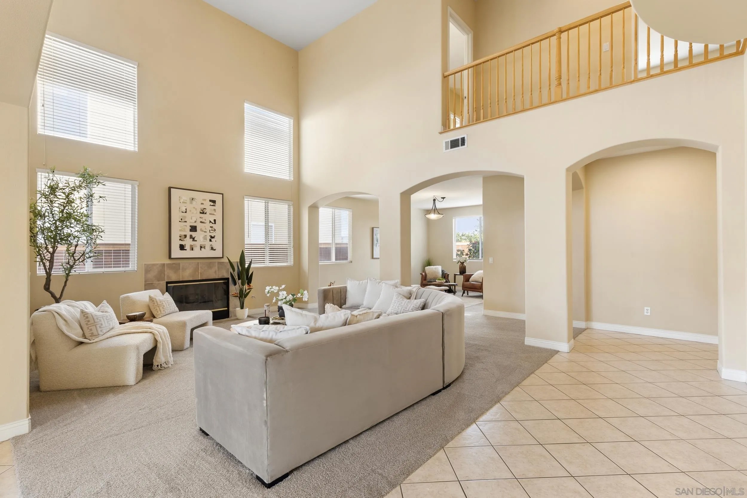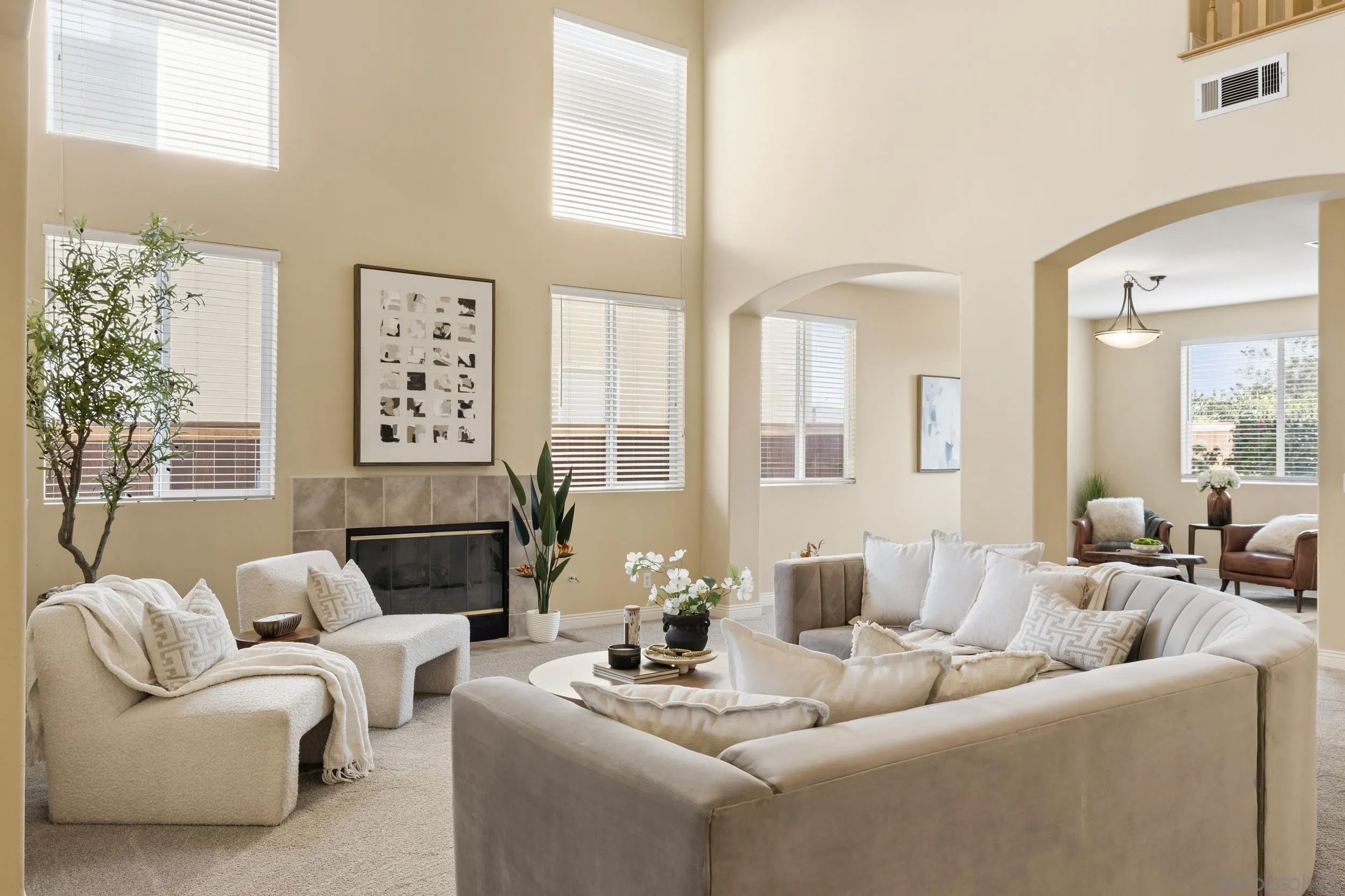 Meticulously maintained home in desirable Otay Ranch with beautiful hill views. Featuring brand new carpet, this home offers a bright and functional layout with soaring two-story ceilings in the living room and a cozy fireplace that creates an inviting first impression. Generously sized kitchen featuring a large center island, ample cabinetry, and double ovens, flowing effortlessly into the family room for an ideal open-concept layout.The spacious primary suite is a true retreat with its own fireplace, scenic views, large walk-in closet, dual vanities, and a separate tub and shower. A full bedroom and bathroom on the main level provide flexibility for guests, multi-generational living or a home office. Enjoy both a formal living room and a separate family room - also with a fireplace - perfect for everyday living and entertaining. Additional highlights include an indoor laundry room and a 3-car garage with direct access. Pride of ownership is evident throughout this well-cared-for home, ideally situated in a sought-after neighborhood close to parks, schools, and amenities. Community pool at the Heritage Hills Swim Club.