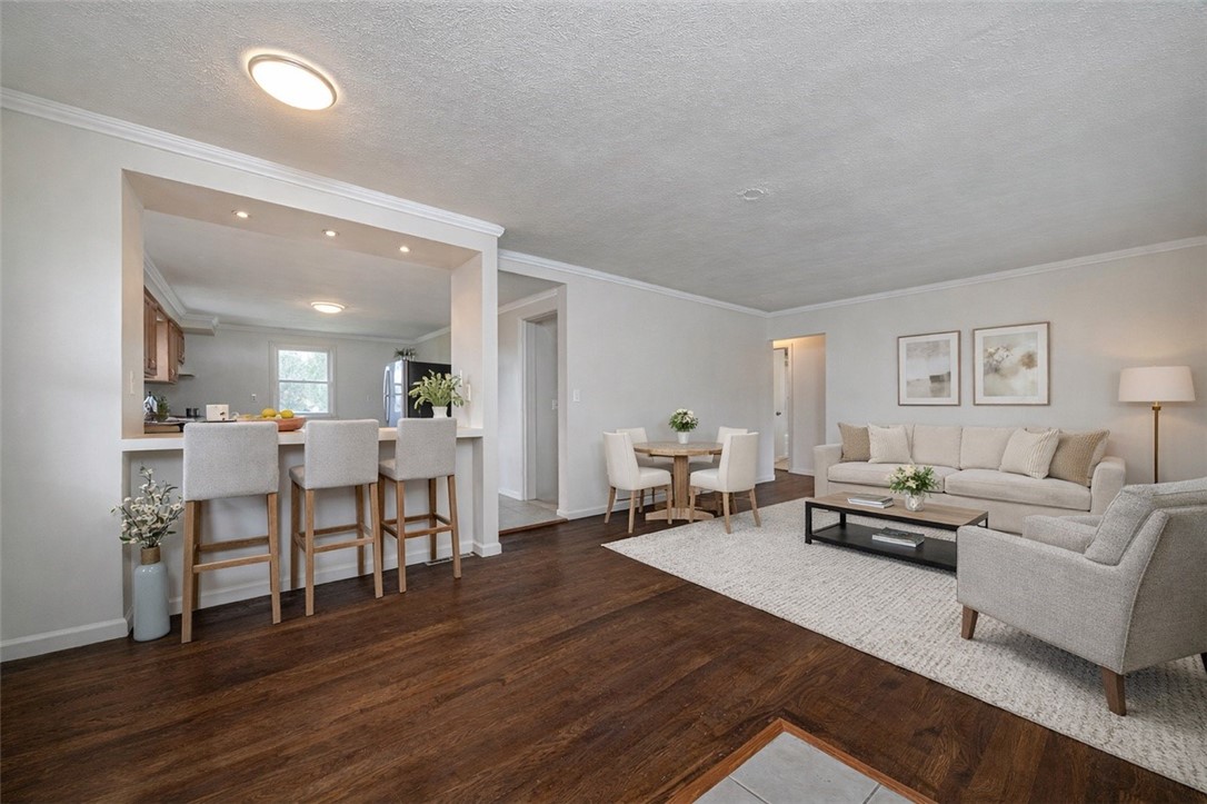 Welcome to this updated 3BR 2BA ranch. Thoughtfully designed for both comfort and style, this inviting ranch showcases hardwood floors, crown molding and a fresh neutral palette that complements any decor'. Abundant natural light fills the spacious interior, creating a warm and welcoming atmosphere throughout. The expansive kitchen features brand new stainless steel appliances, ample cabinetry and a convenient breakfast bar that opens to the living room-perfect for casual dining and everyday living. Unwind in the charming morning room with your cup of coffee. Step outside to the generously sized yard, perfect for summer gatherings, entertaining or simply enjoying the outdoors on the covered front porch. This move-in ready home blends modern updates with timeless appeal. Don't miss this opportunity to personalize this space!