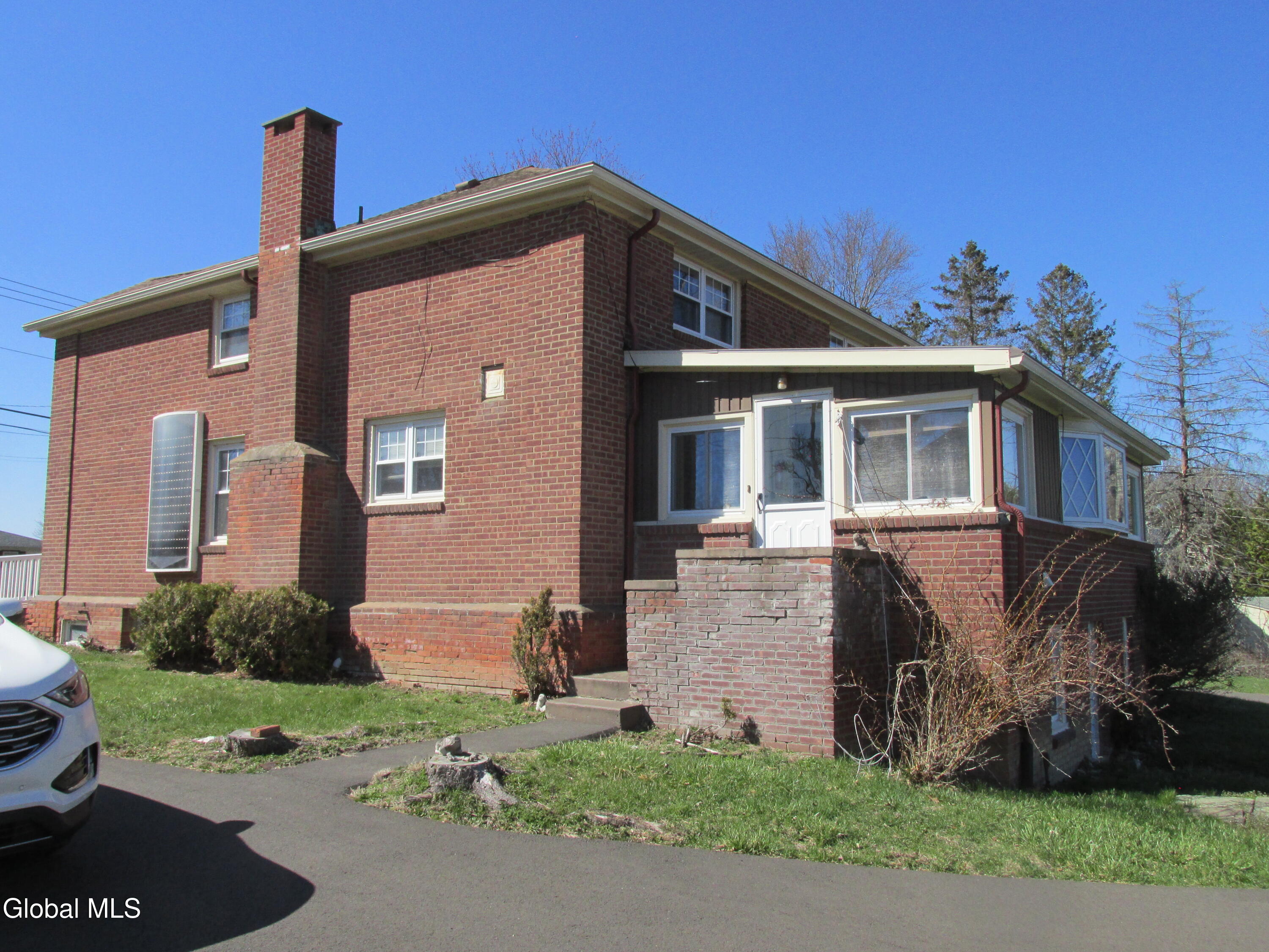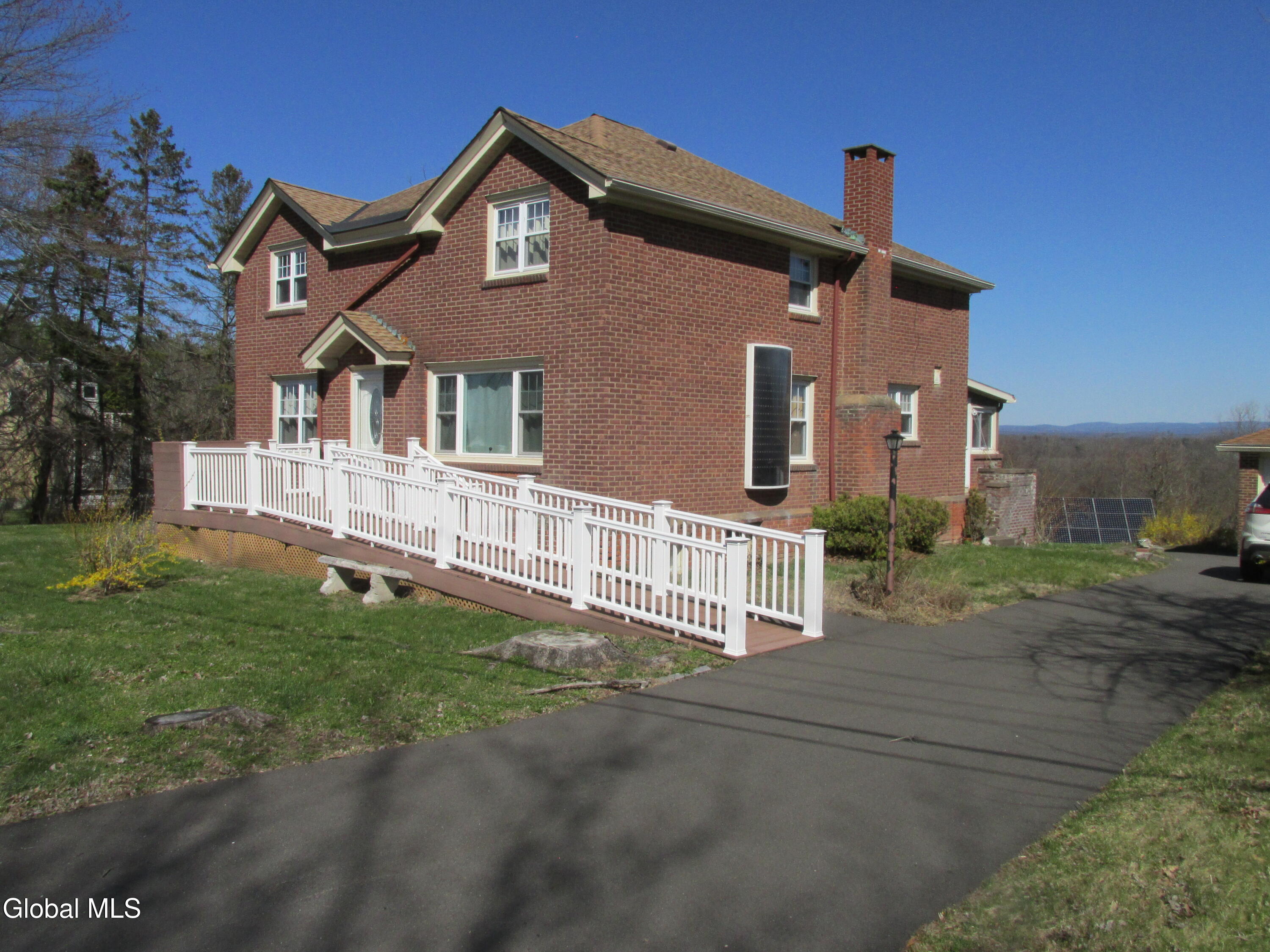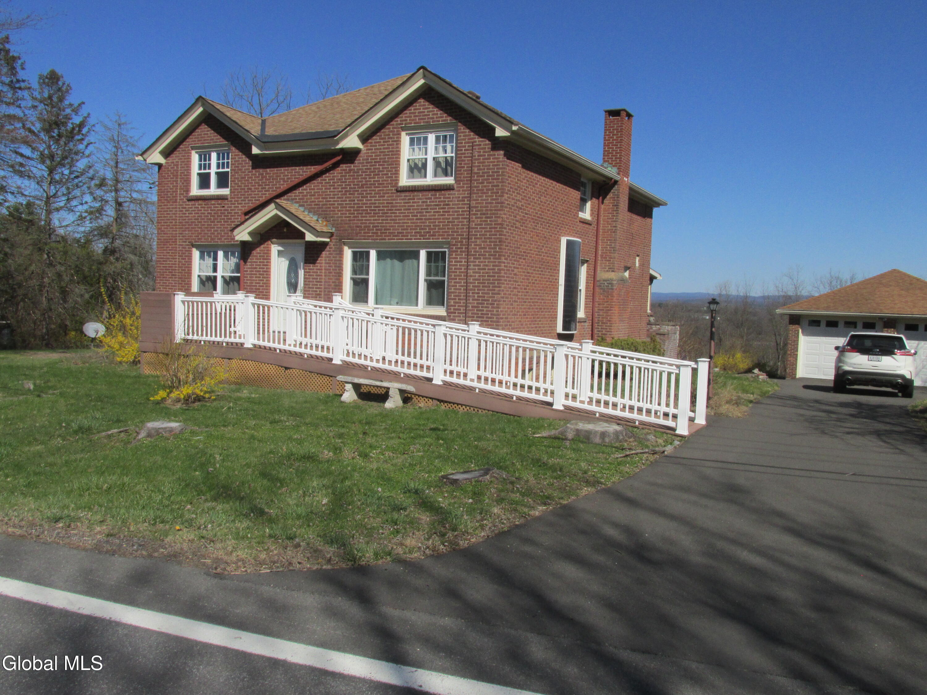 This old-style brick home appears on maps dating back to 1867 and is recognized as one of the sixteen original schoolhouses that helped establish the C-A school district. The property has retained much of its authentic charm and appeal. From this location, you can enjoy seasonal views of the Hudson River as well as sweeping vistas of the distant Berkshires. Protected state lands extend just beyond the backyard, nearly reaching the river. With almost 2,800 square feet of space, the home offers five bedrooms and two full bathrooms. The living room, formal dining room, and kitchen are defined by plaster walls and archways, preserving the historic architectural details. Many of the original hardwood tongue-and-groove floors are still intact, adding warmth and character to the interior. Additional features that enhance this picturesque property include a full basement, a circular driveway, an oversized two-car garage, a back porch designed to capture the scenic views, and a solar electrical dish that nearly eliminates the electric bill. The home is ready for new owners and is well-suited for updates, allowing you to make this former schoolhouse uniquely yours.