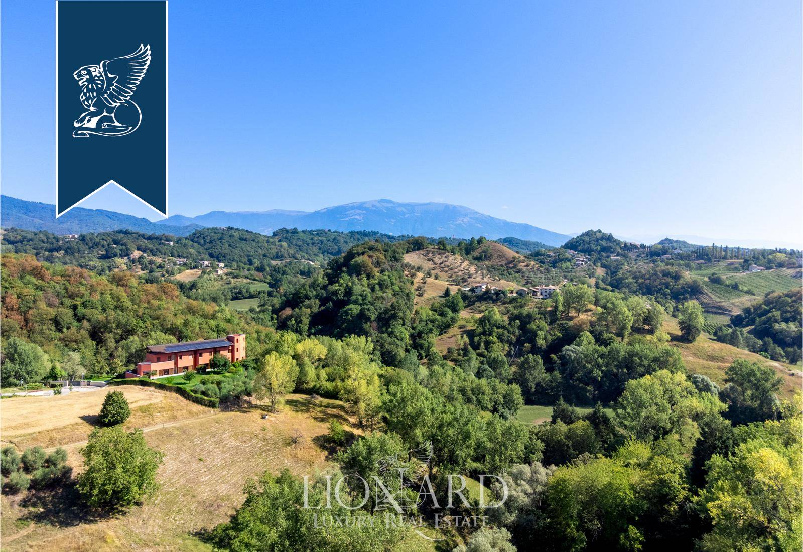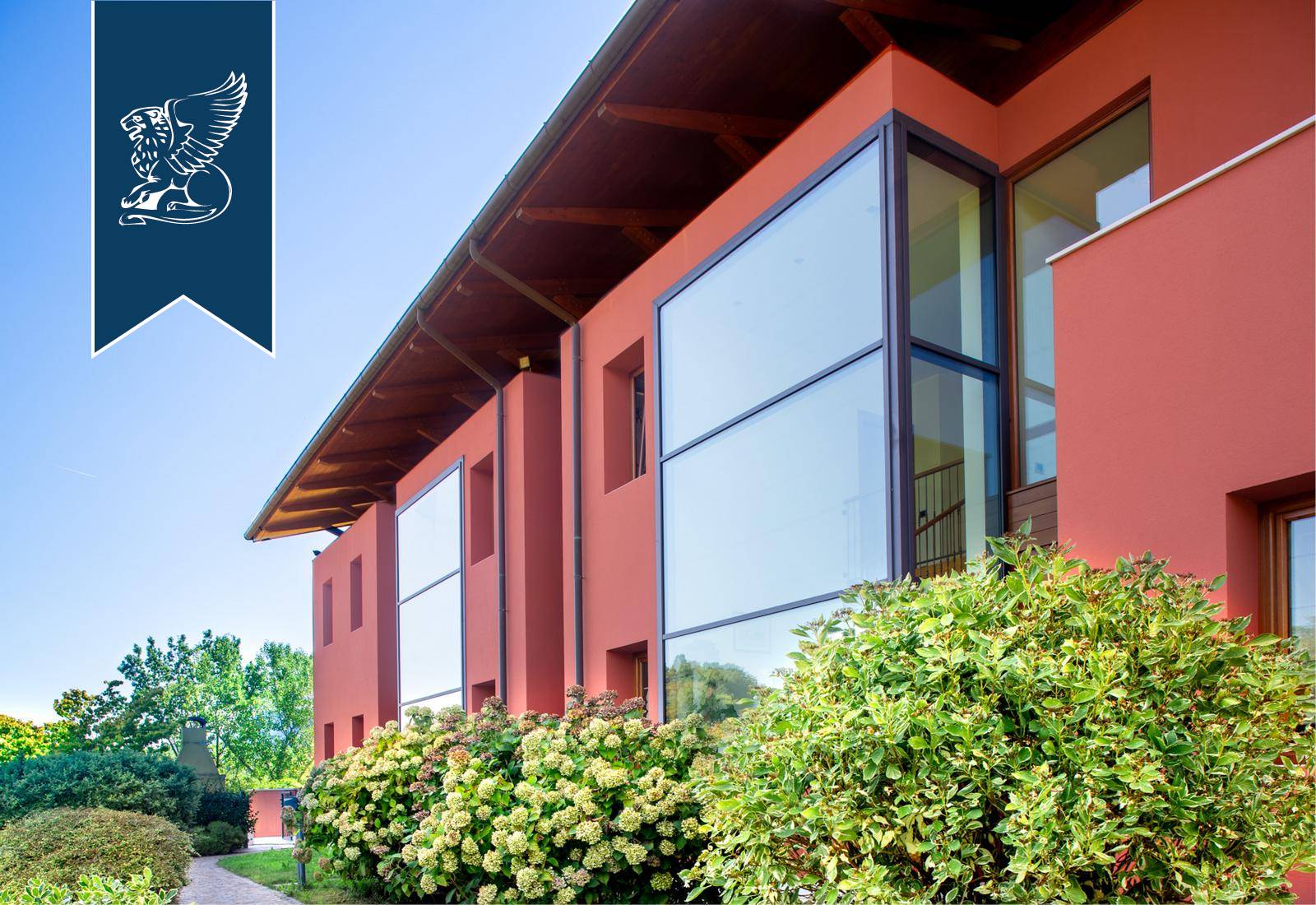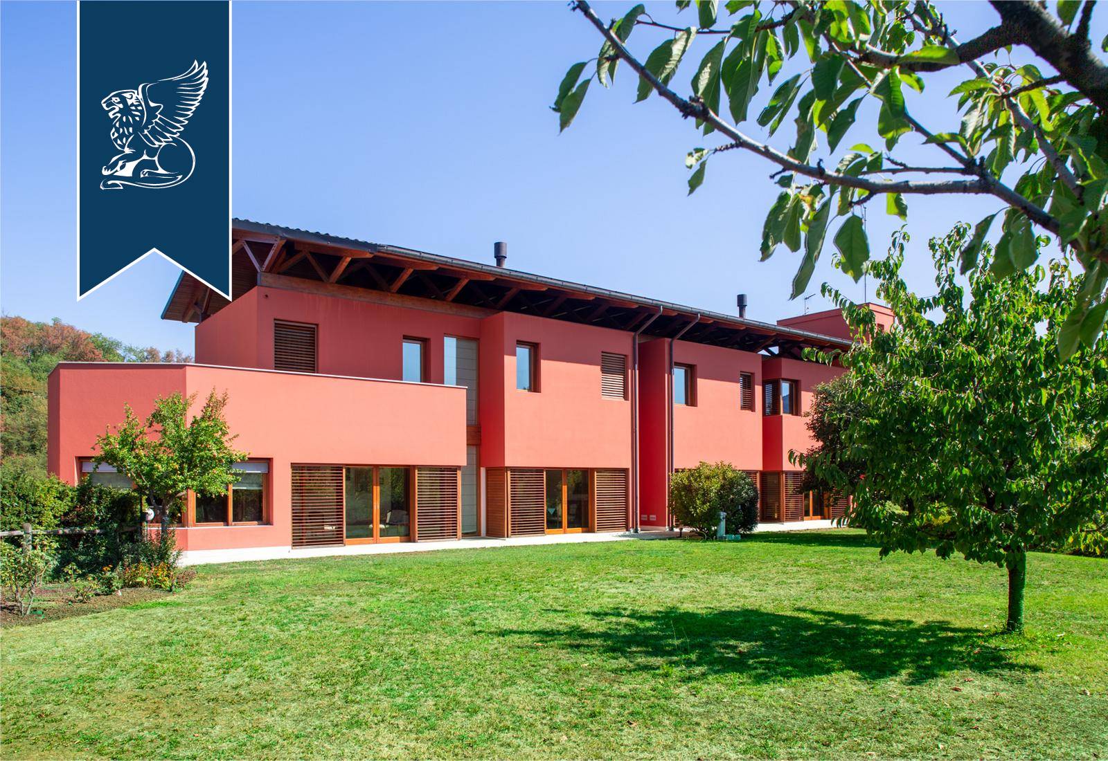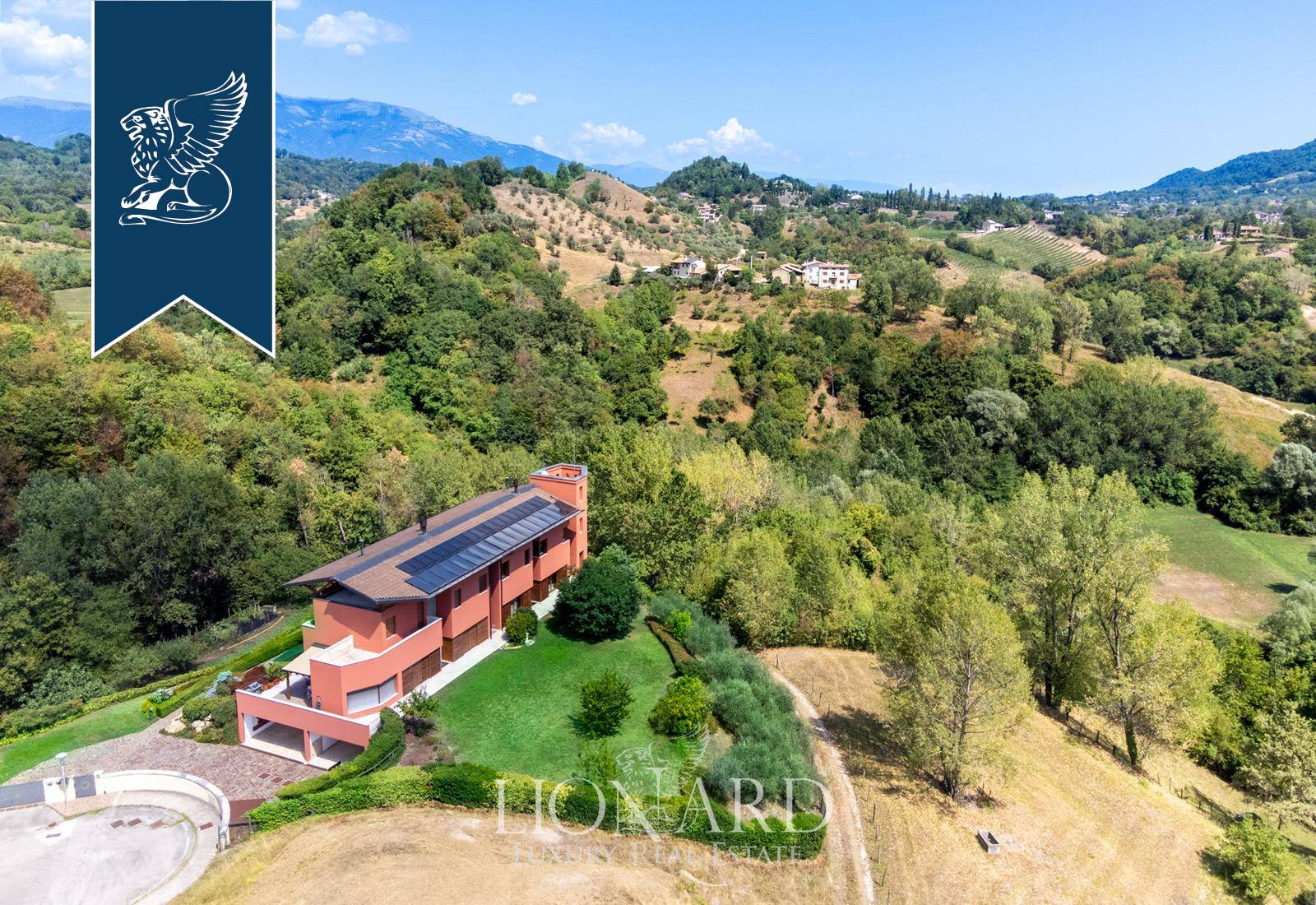 This modern luxury estate for sale composed of two exclusive, recently-built panoramic villas overlooks Monfumo's stunning hills, just a few kilometres from Asolo, surrounded by an idyllic landscape made of rows of vines, olive trees and apple trees.The two villas share a marvellous, 5,000-sqm terraced park and are connected through the rooms of the leisure area on the ground floor, featuring an exclusive wellness and spa area with a Turkish bath, an indoor heated saltwater pool, some changing rooms and a cozy room with a fireplace.The entrance opens into prestigious halls with a dining area and a fireplace, pleasantly lit by big windows overlooking the leafy park. There are then spacious eat-in kitchens, study rooms and bathrooms. The sleeping area, located on the first floor, houses two en-suite bedrooms for the first house, complete with a walk-in closet, a terrace and a balcony, while the second unit has three bedrooms, two of which have their own bathroom, and a walk-in closet.An annex with a bathroom for guests was built in the charming tower, accessible by a staircase.The villas combine luxury and comfort, offering a sophisticated home automation system, an efficient solar thermal and photovoltaic system and a modern anti-theft alarm circuit.Ref: 7626https://www.lionard.com/modern-luxury-estate-among-asolos-hills.html