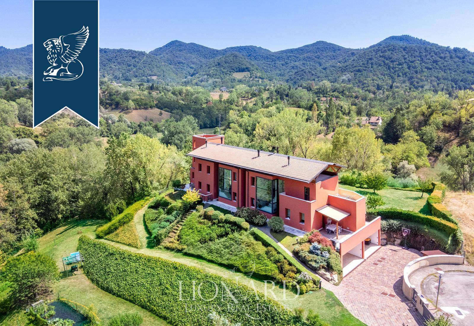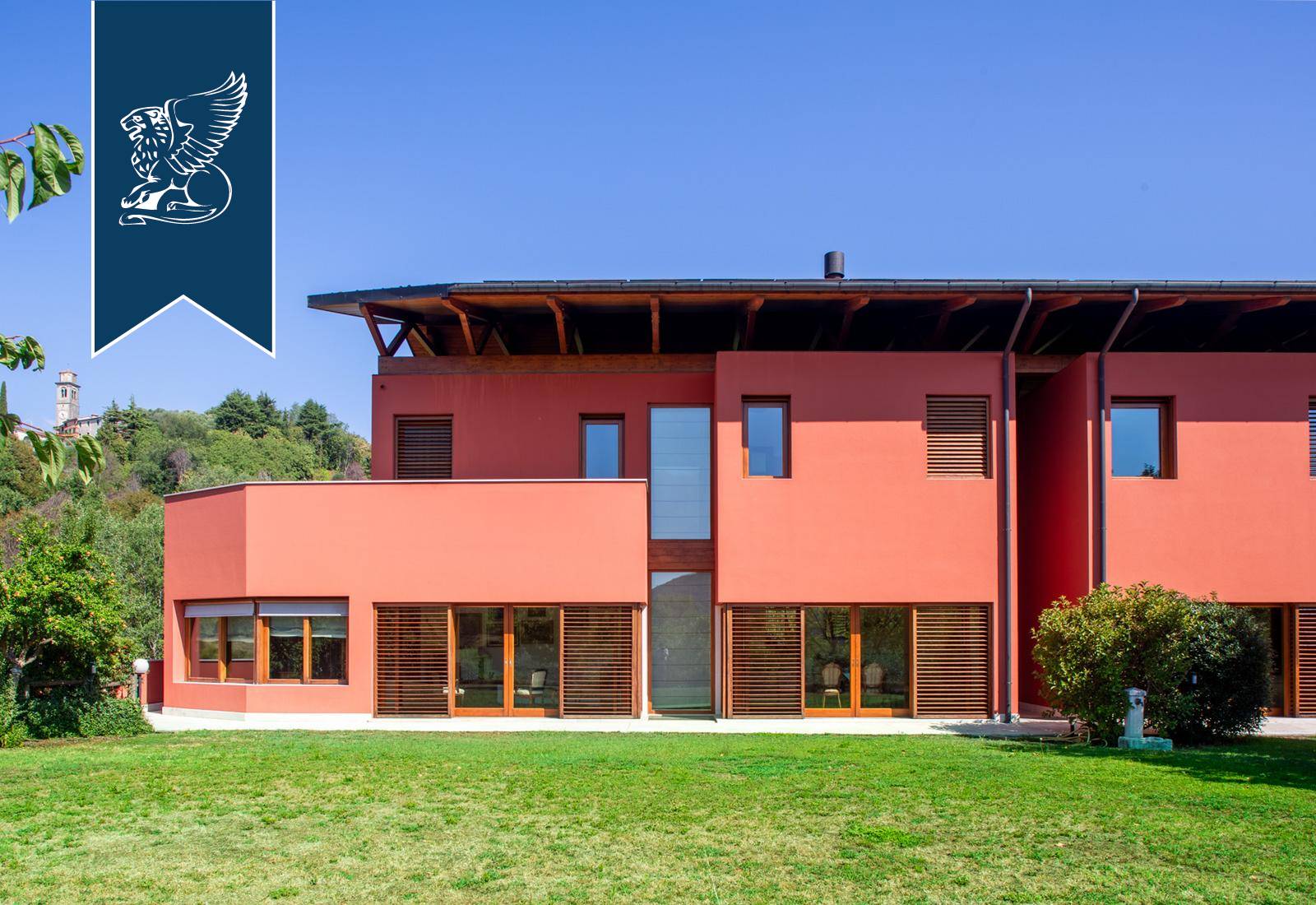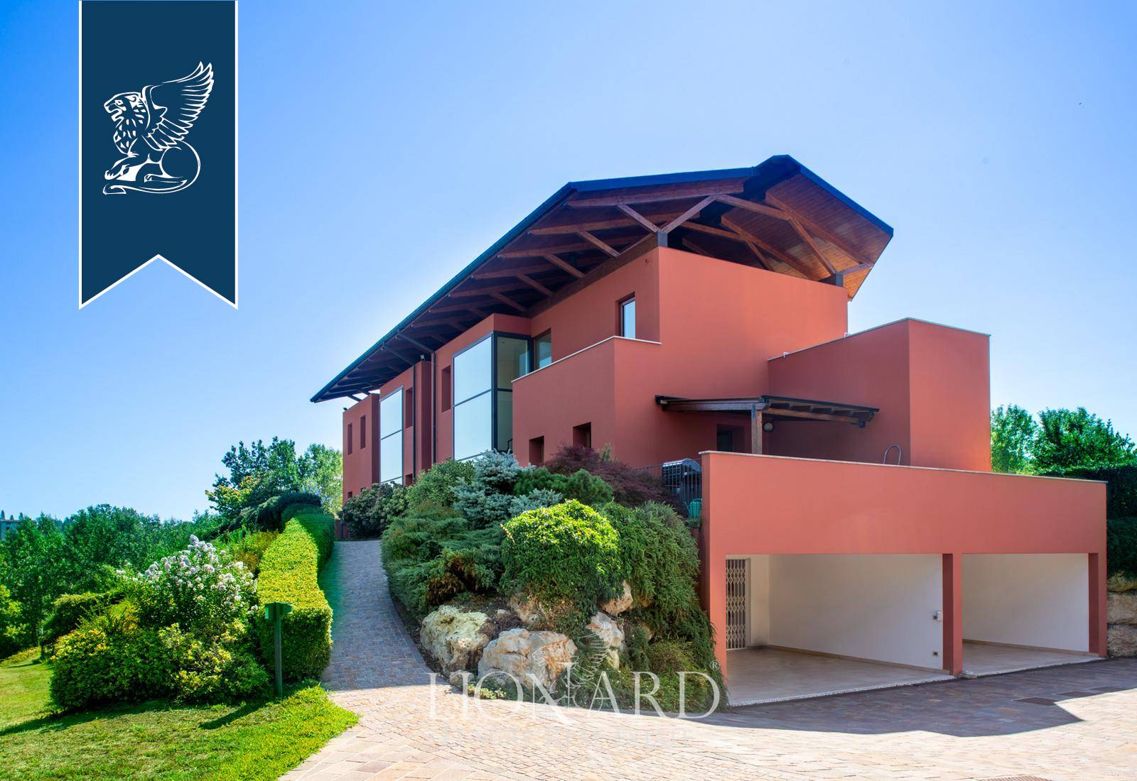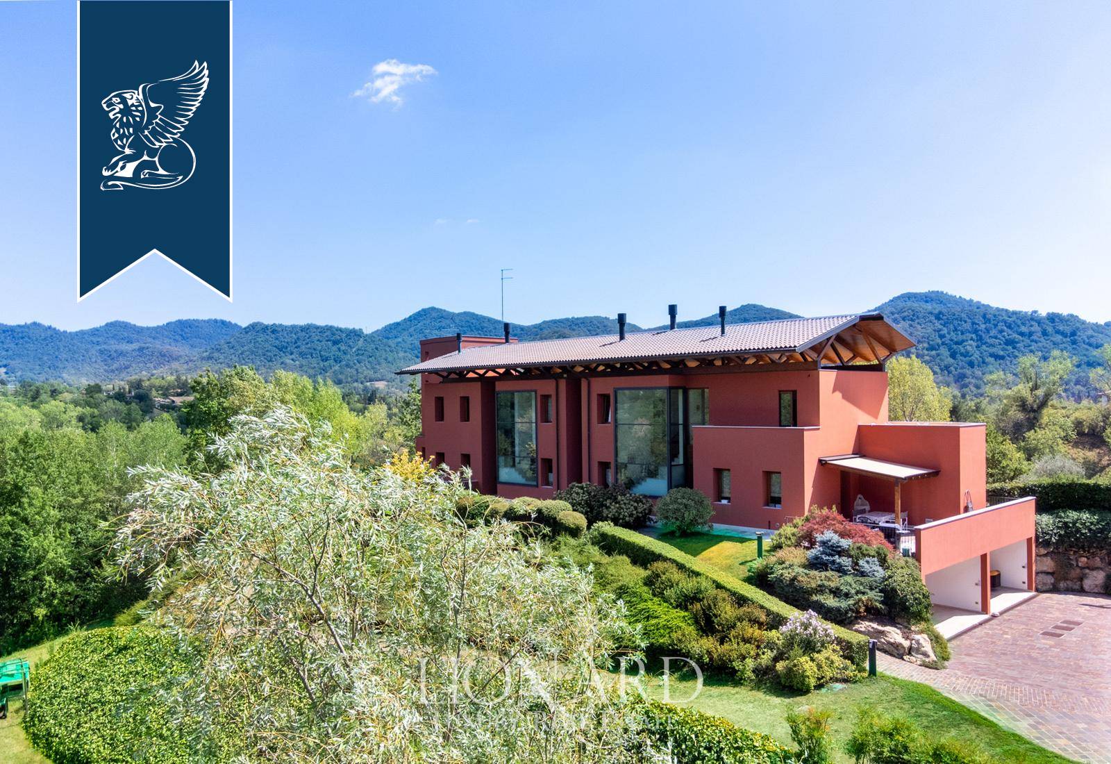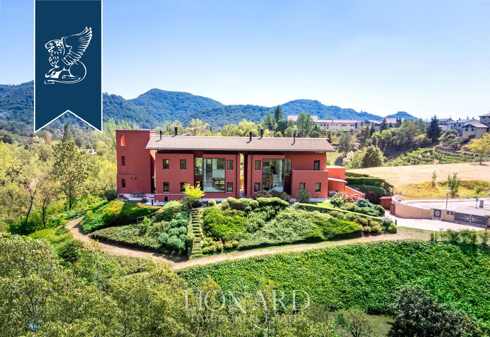 This modern luxury estate for sale composed of two exclusive, recently-built panoramic villas overlooks Monfumo's stunning hills, just a few kilometres from Asolo, surrounded by an idyllic landscape made of rows of vines, olive trees and apple trees.The two villas share a marvellous, 5,000-sqm terraced park and are connected through the rooms of the leisure area on the ground floor, featuring an exclusive wellness and spa area with a Turkish bath, an indoor heated saltwater pool, some changing rooms and a cozy room with a fireplace.The entrance opens into prestigious halls with a dining area and a fireplace, pleasantly lit by big windows overlooking the leafy park. There are then spacious eat-in kitchens, study rooms and bathrooms. The sleeping area, located on the first floor, houses two en-suite bedrooms for the first house, complete with a walk-in closet, a terrace and a balcony, while the second unit has three bedrooms, two of which have their own bathroom, and a walk-in closet.An annex with a bathroom for guests was built in the charming tower, accessible by a staircase.The villas combine luxury and comfort, offering a sophisticated home automation system, an efficient solar thermal and photovoltaic system and a modern anti-theft alarm circuit.Ref: 7626https://www.lionard.com/modern-luxury-estate-among-asolos-hills.html