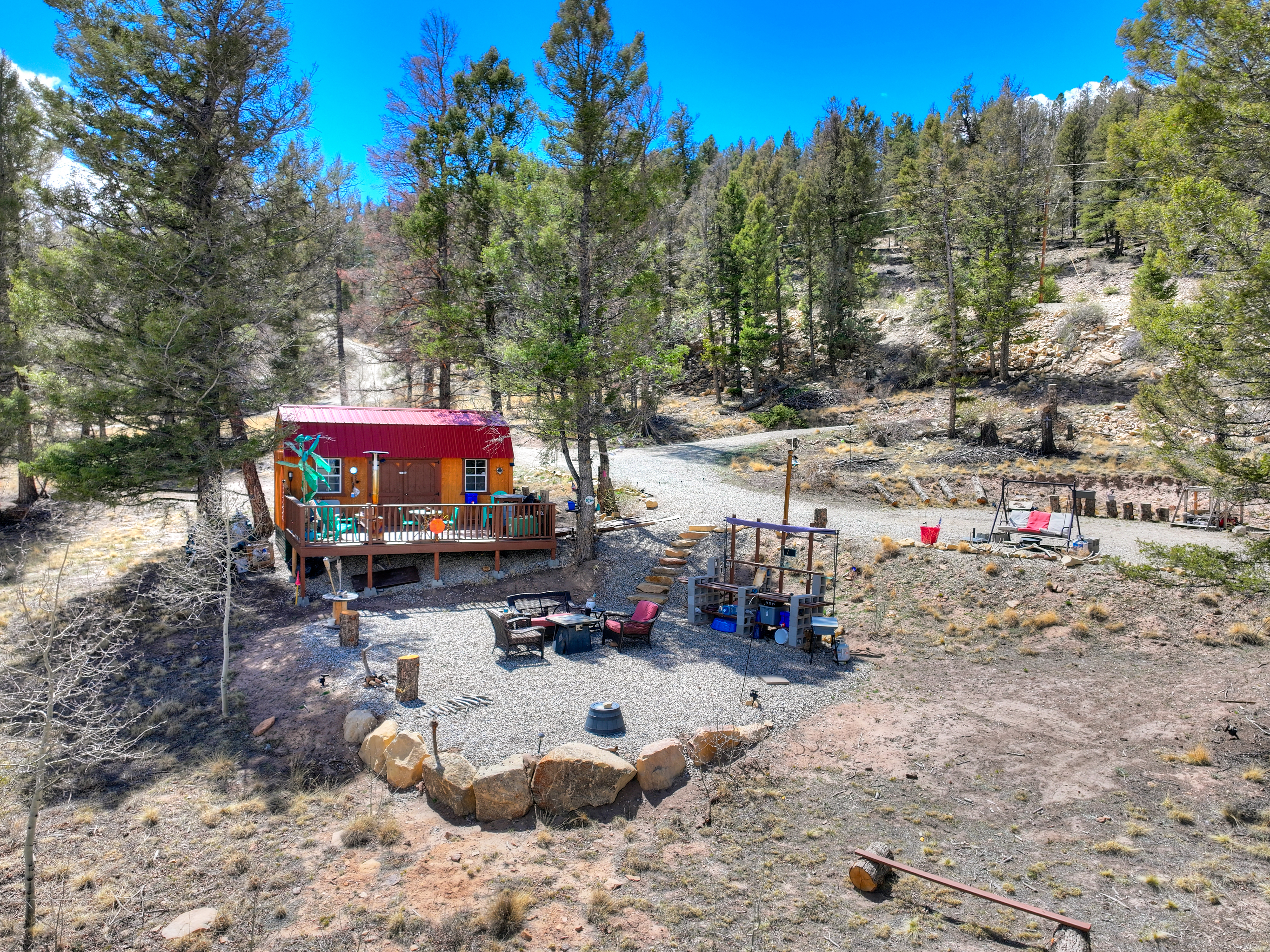 Arrive via your gravel driveway and step into an effortless basecamp lifestyle. Whether you’re casting a line, hiking, biking, hunting, skiing, or snowmobiling, this property is ready to enjoy from day one. No tent required—an insulated rustic camper cabin, with an attached redwood deck, catalytic heater, solar panels, backup generator, and dedicated sleeping area elevates your outdoor experience well beyond the ordinary. Multiple flat building sites offer flexibility to design and build your future mountain home, while thoughtfully added features—flagstone steps, a camp swing, and an outdoor camp kitchen — create a setting that’s both inviting and practical.