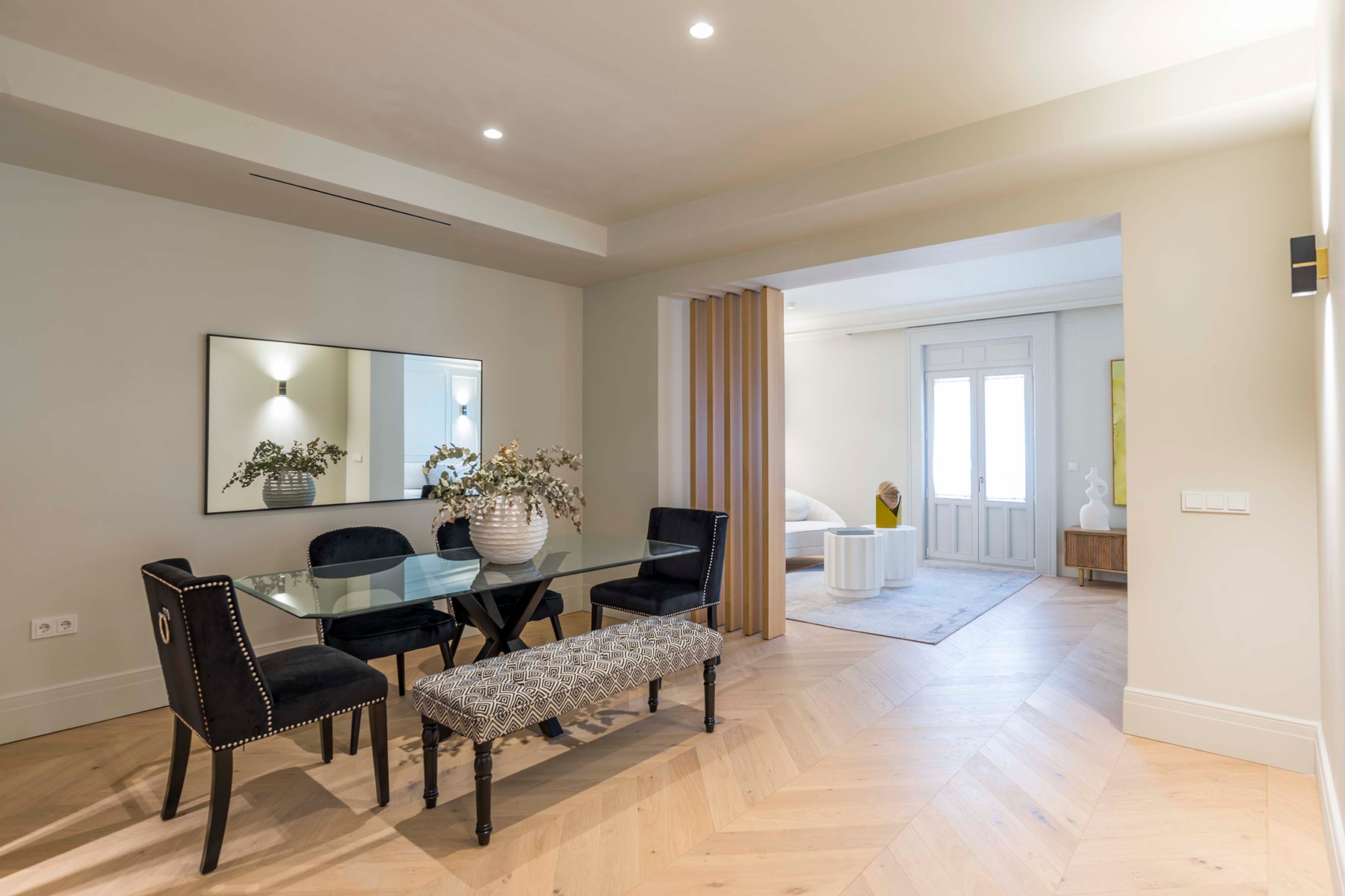 This modern 250 m² flat, located in the center of Madrid, stands out for its spaciousness, its well-thought-out layout, and the incorporation of outdoor spaces and wellness areas within the home itself.The property is organized around a large and well-defined social area, where the living room connects with a designer kitchen featuring a central island, providing functionality and continuity to the space. It has three bedrooms and four bathrooms, configured to offer comfort both in daily use and for guest stays. The home also features a private terrace, a particularly valued element in central locations, as well as a private gym that allows for personal care without leaving the house. The home automation system facilitates the control of various aspects of the home, while double windows ensure sound and thermal insulation. The central gas heating completes the amenities aimed at comfort throughout the year.Among its distinctive features, the property includes a pool, an added value rarely found in homes of this size in the urban center, enhancing its appeal as a primary residence.Located in the center of Madrid, the property benefits from a strategic location with immediate access to a wide range of services, including educational centers, hospitals, green areas, and a varied cultural and gastronomic offering. The area boasts excellent public transport connections and direct access to the main roads of the city, allowing the combination of urban life with convenience in daily commutes.