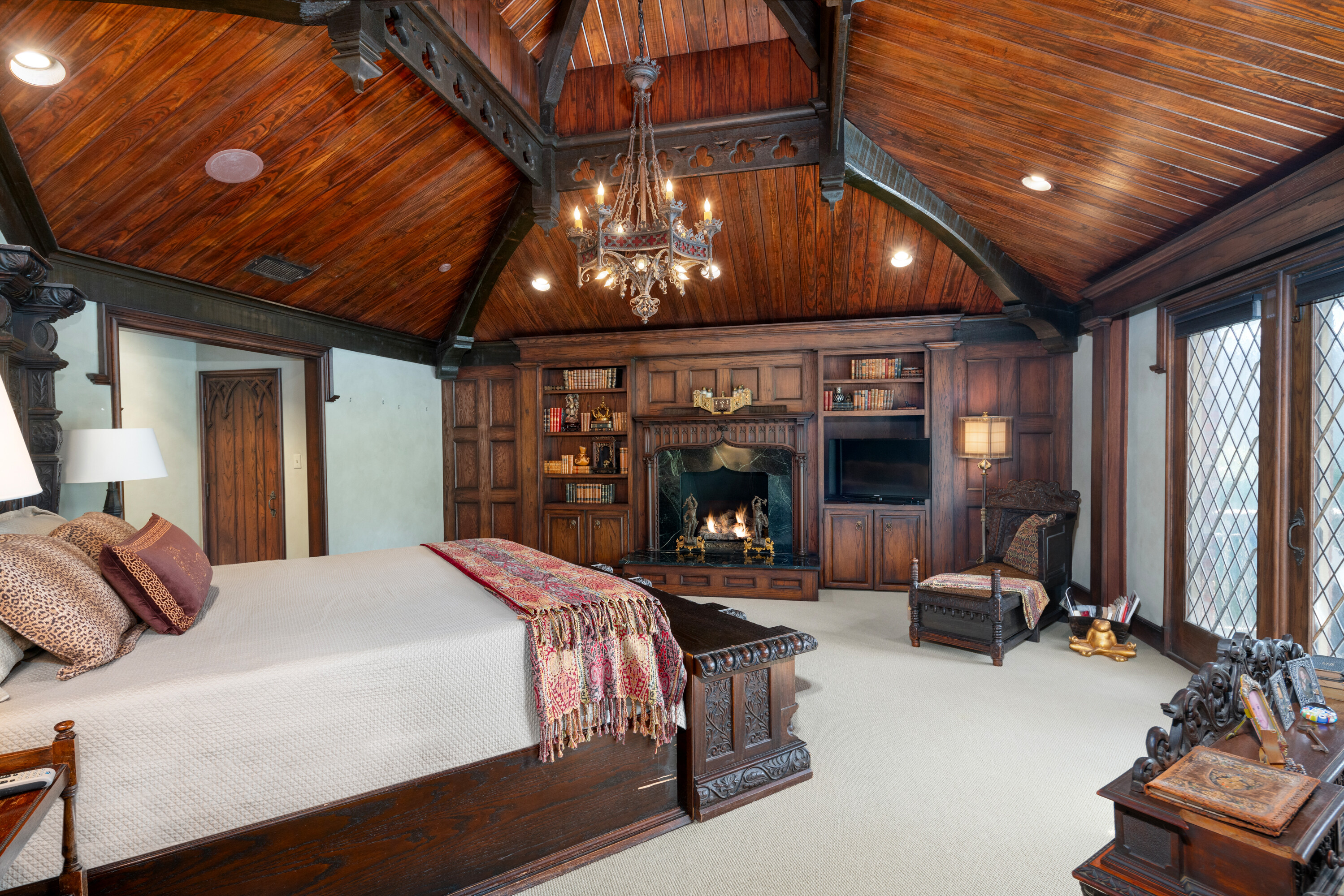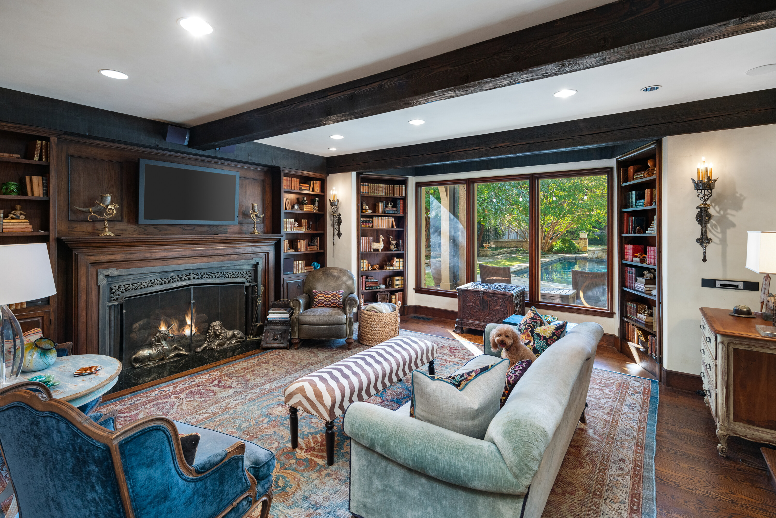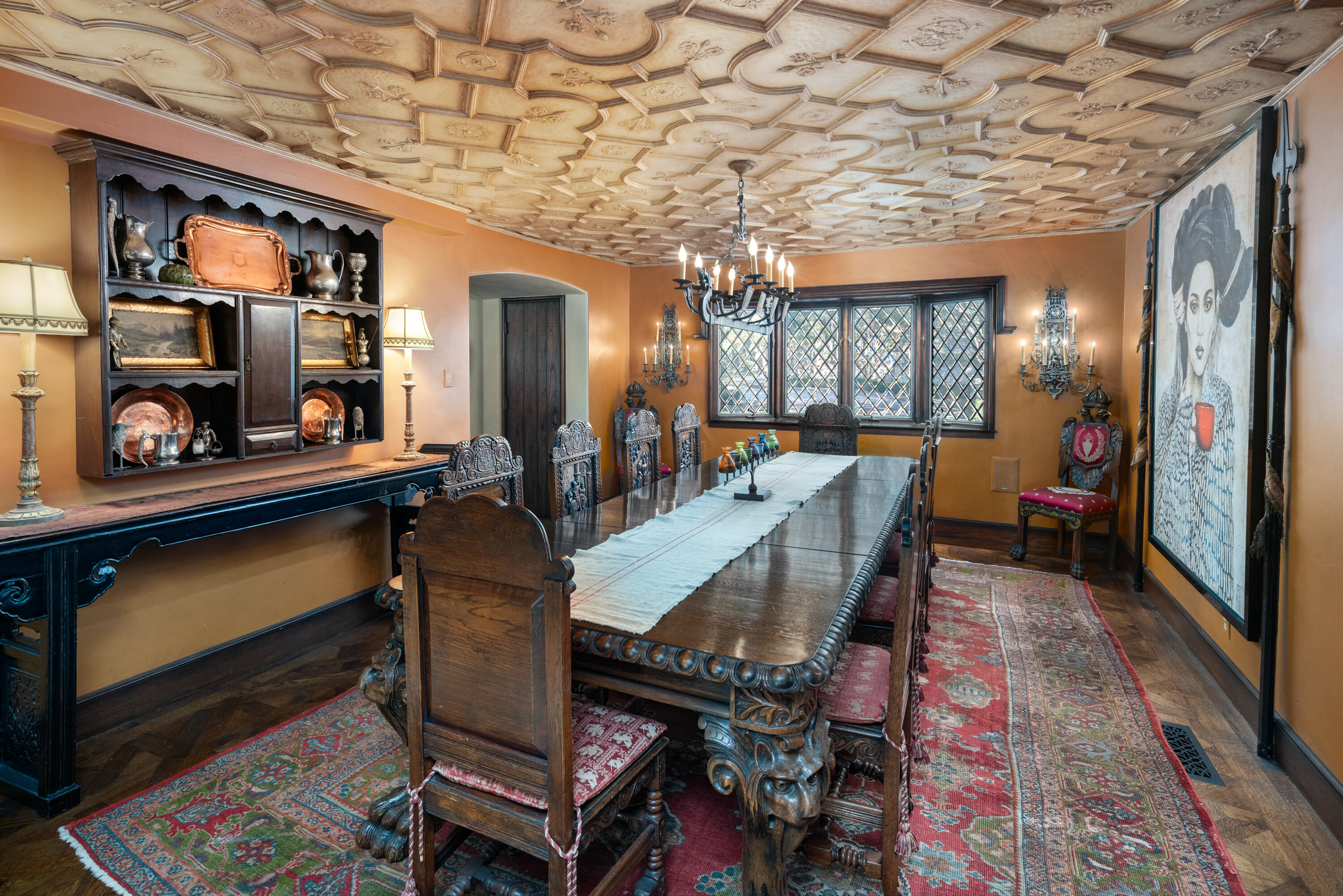 Welcome to 5106 Deloache, a Charles Dilbeck masterpiece! Dilbeck's careful approach to design resulted in warm and inviting homes. This beauty exemplifies his eclectic and visionary style. Upon arrival you are greeted by a gorgeous stone wall and custom-made security gate where this French Norman home presents itself. You will be overwhelmed by the stunning cathedral ceilings, rough-hewn log beams, gorgeous paneling, incredible oversized fireplaces, stained glass windows and all the nooks and crannies a Charles Dilbeck designed home offers. The property is as captivating as the home. This beautiful lot is 1.6 acres is canopied by abundance of trees, a koi pond, running river, cathedral like cabana with a massive fireplace, inviting pool, sport-pickle ball court, play yard, fire pit, gorgeous stone paved porches and bridges. The quarters above the oversized 3 car garage are an additional 1278 sqft, can be a great game room-office and guest house. Truly one-of-a-kind home sitting on the most beautiful lot. Don't miss this opportunity to own one of the few true architecturally significant homes in Dallas