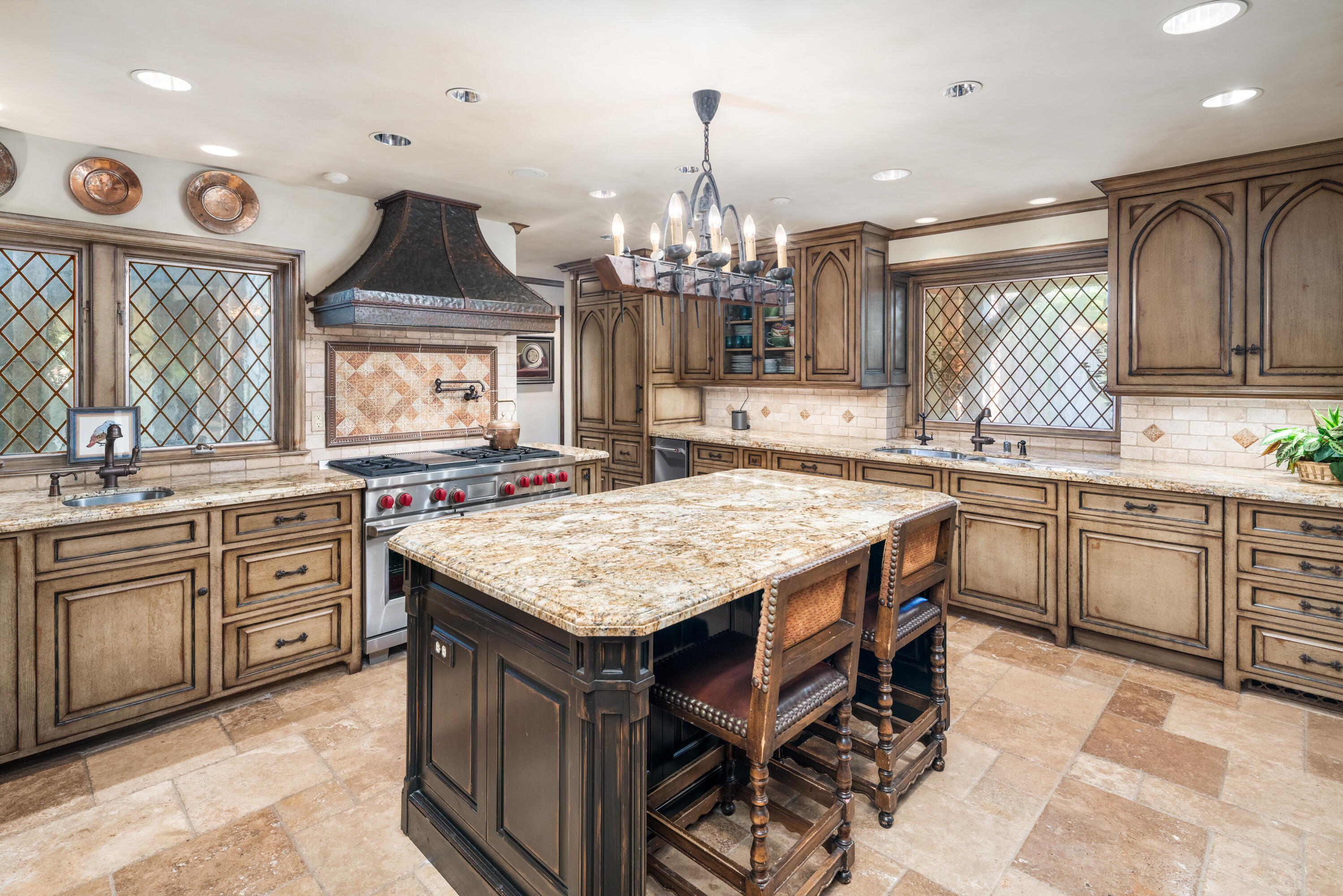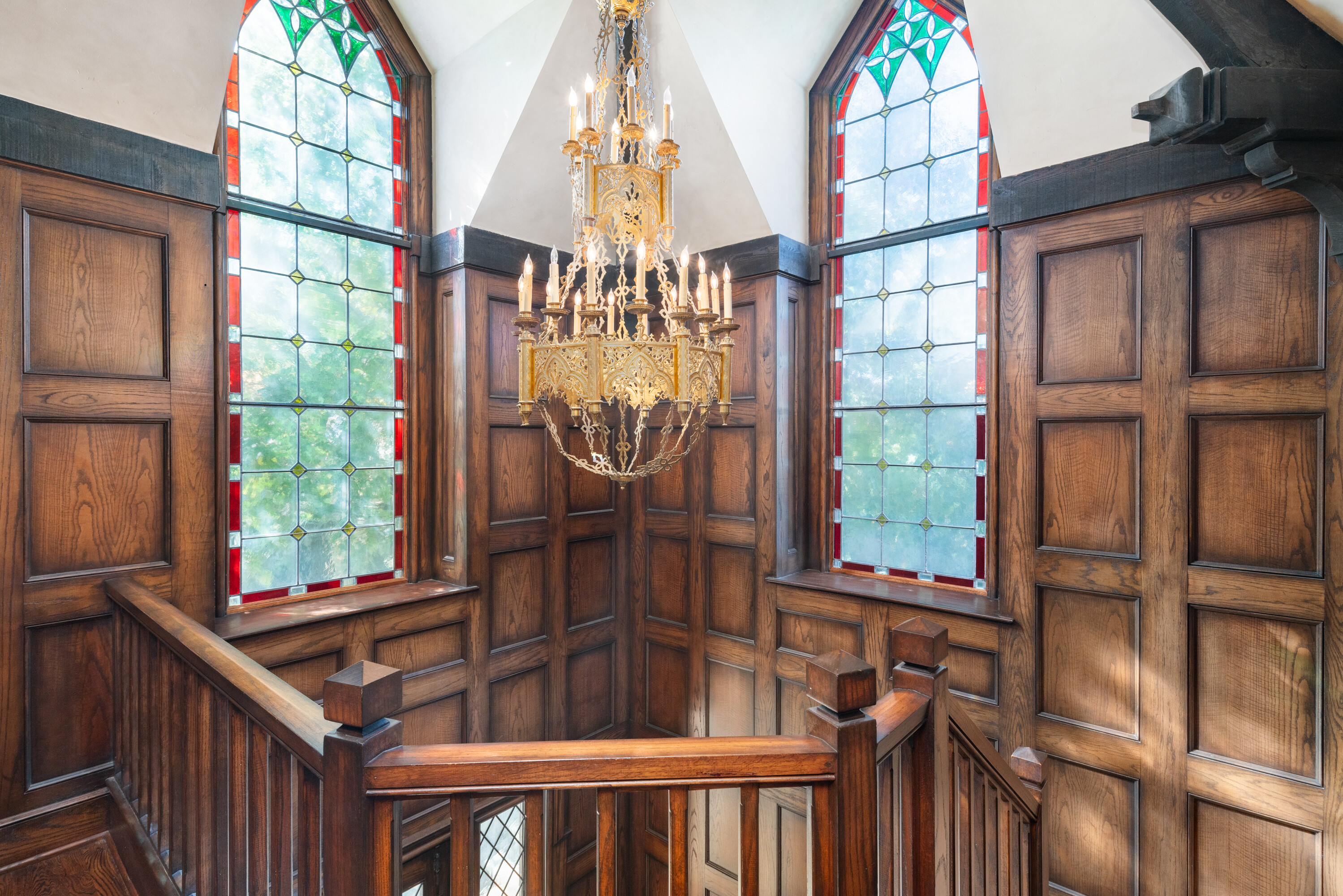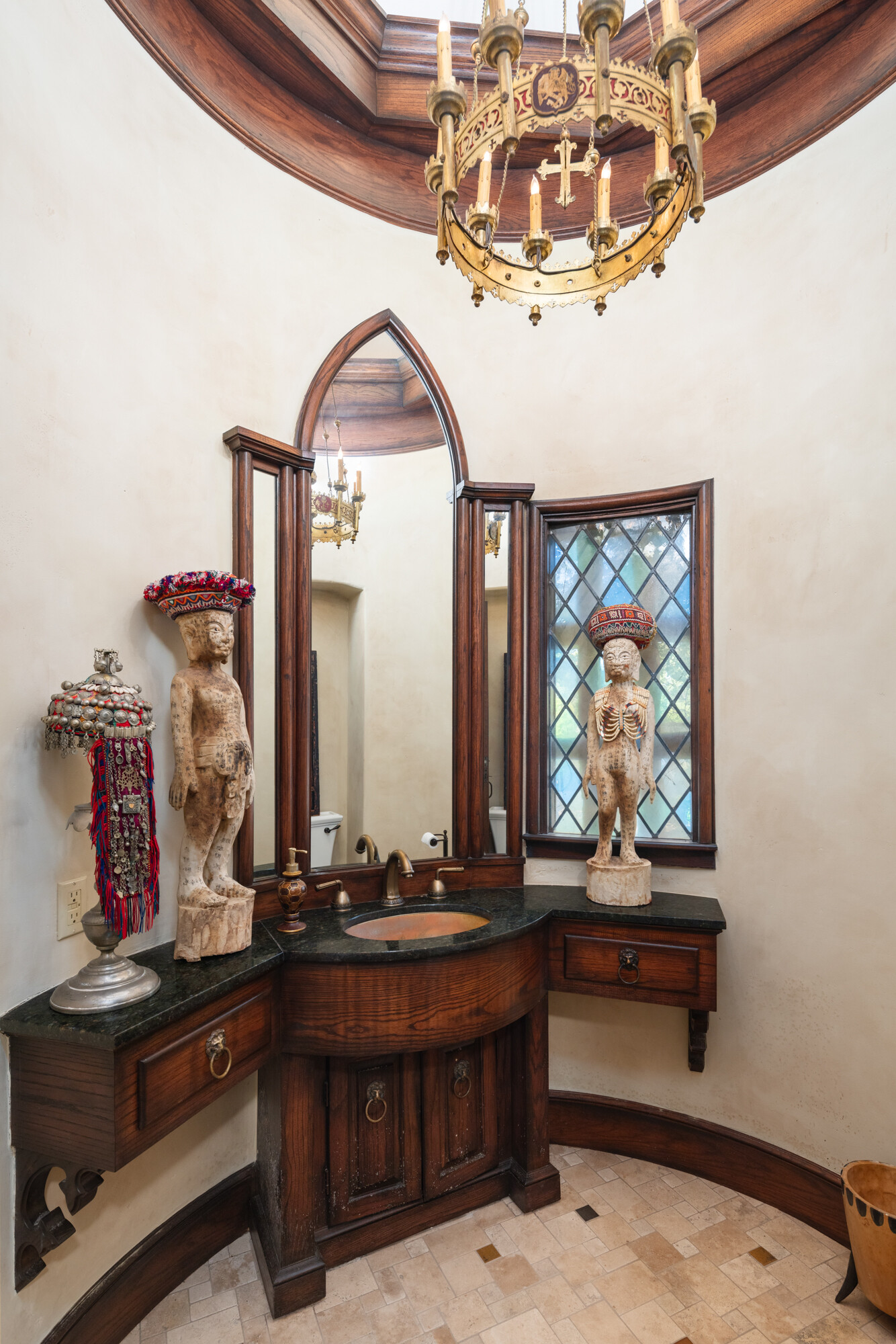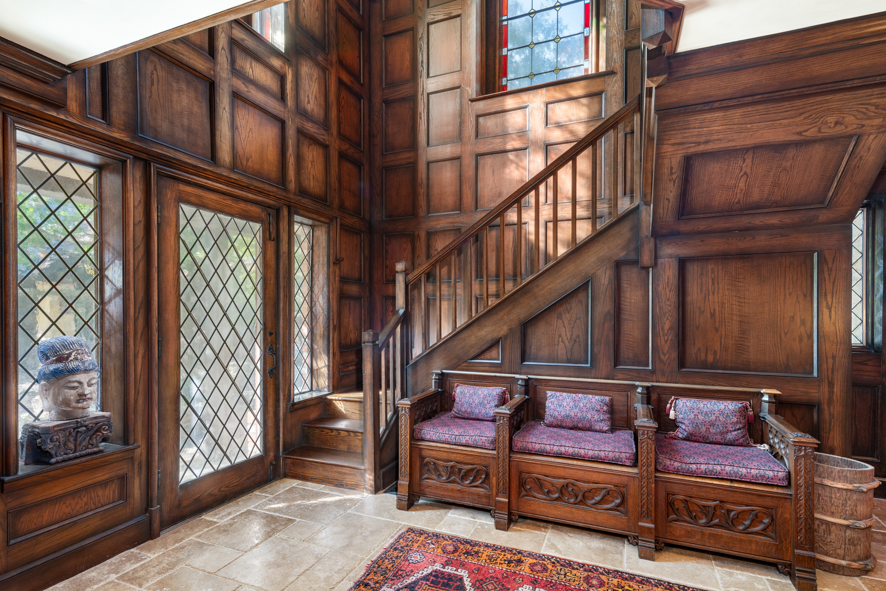 Welcome to 5106 Deloache, a Charles Dilbeck masterpiece! Dilbeck's careful approach to design resulted in warm and inviting homes. This beauty exemplifies his eclectic and visionary style. Upon arrival you are greeted by a gorgeous stone wall and custom-made security gate where this French Norman home presents itself. You will be overwhelmed by the stunning cathedral ceilings, rough-hewn log beams, gorgeous paneling, incredible oversized fireplaces, stained glass windows and all the nooks and crannies a Charles Dilbeck designed home offers. The property is as captivating as the home. This beautiful lot is 1.6 acres is canopied by abundance of trees, a koi pond, running river, cathedral like cabana with a massive fireplace, inviting pool, sport-pickle ball court, play yard, fire pit, gorgeous stone paved porches and bridges. The quarters above the oversized 3 car garage are an additional 1278 sqft, can be a great game room-office and guest house. Truly one-of-a-kind home sitting on the most beautiful lot. Don't miss this opportunity to own one of the few true architecturally significant homes in Dallas