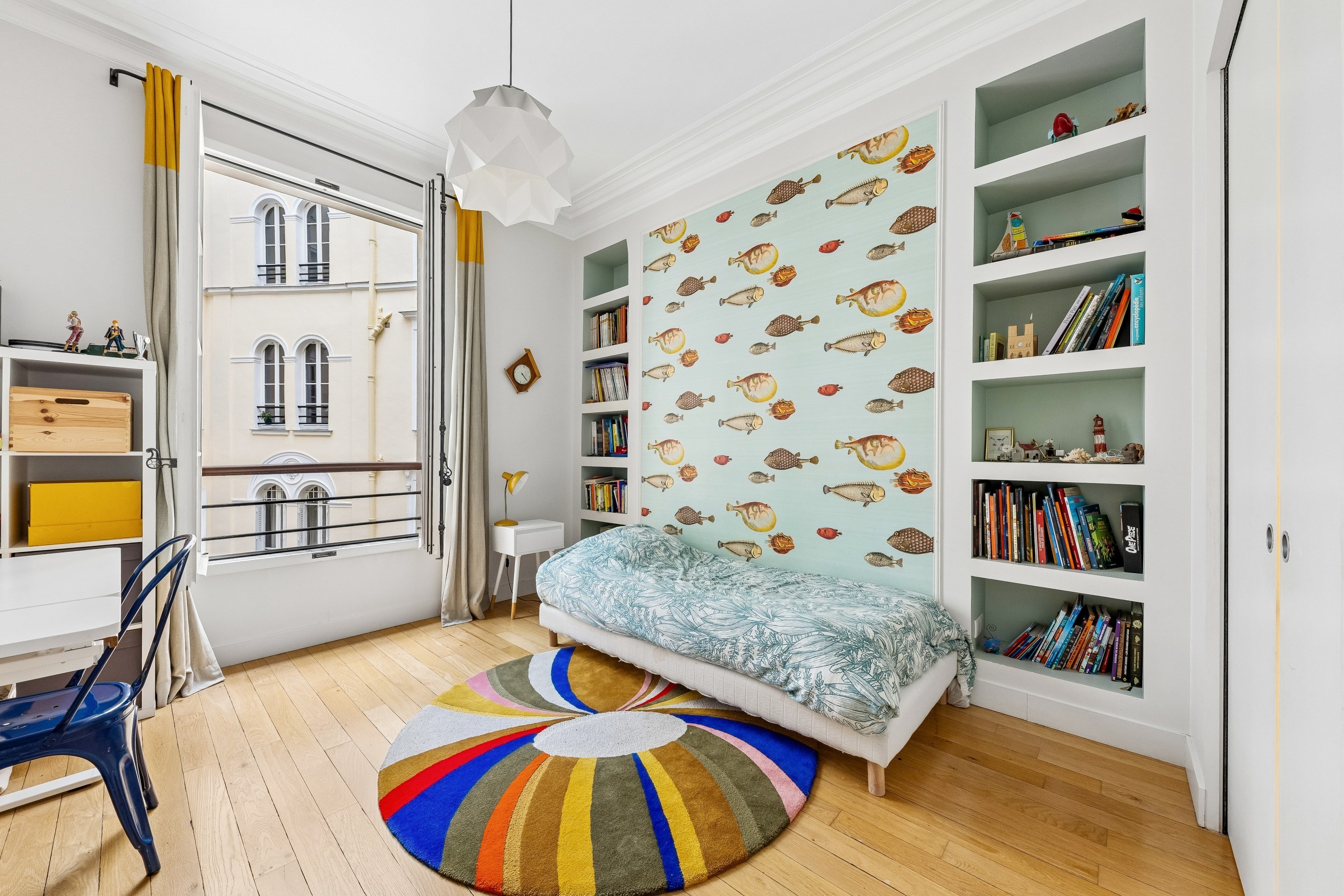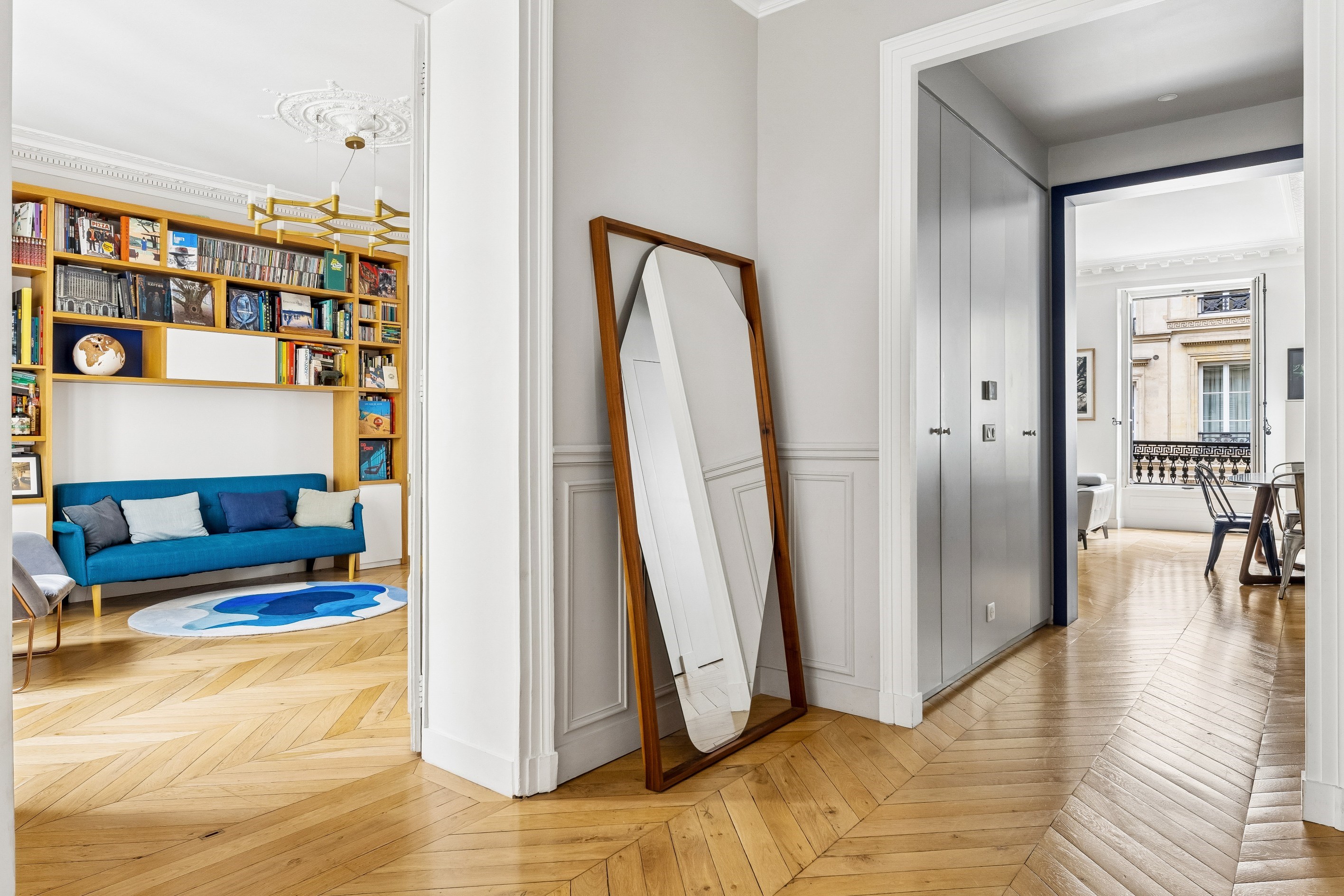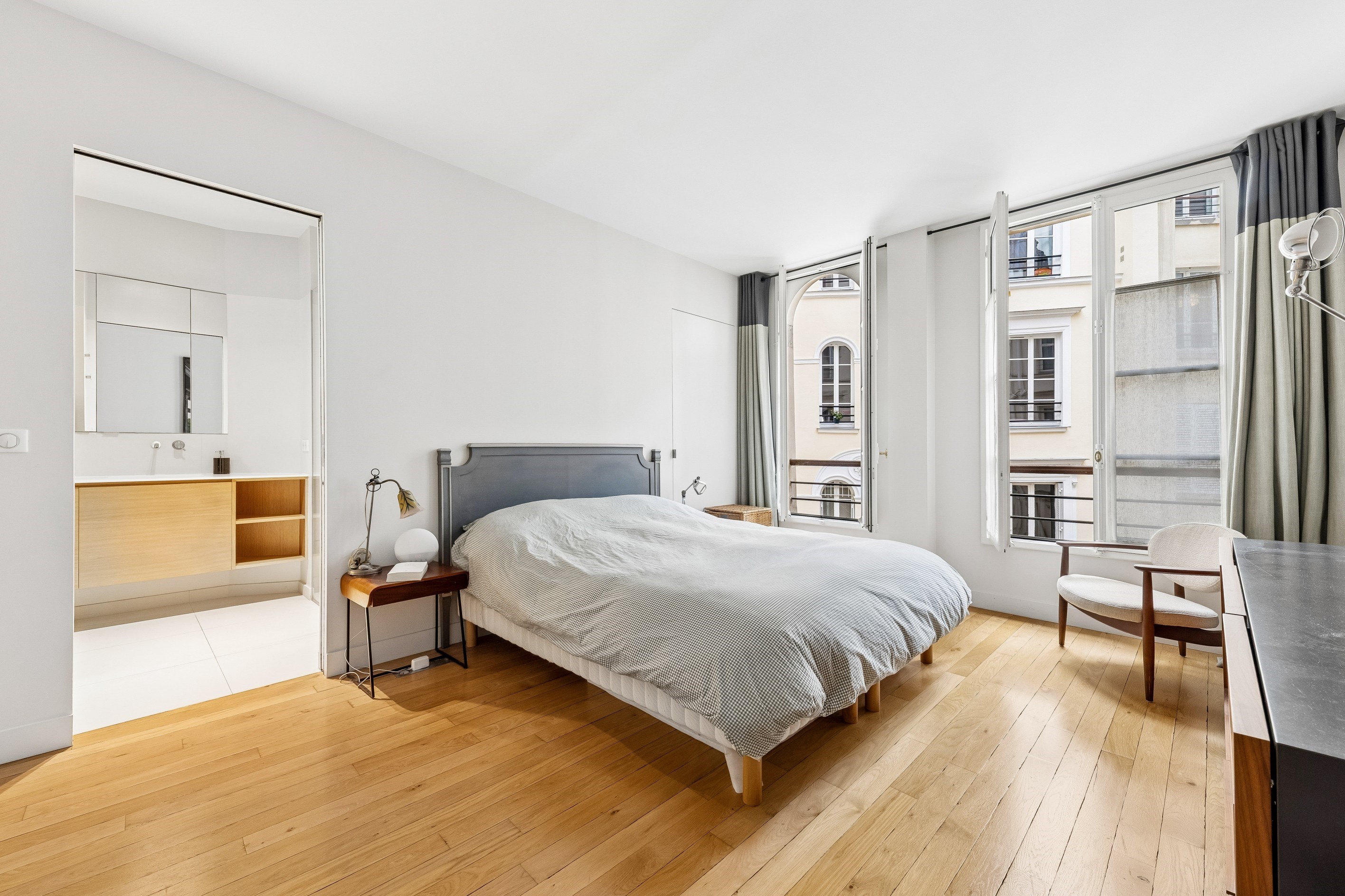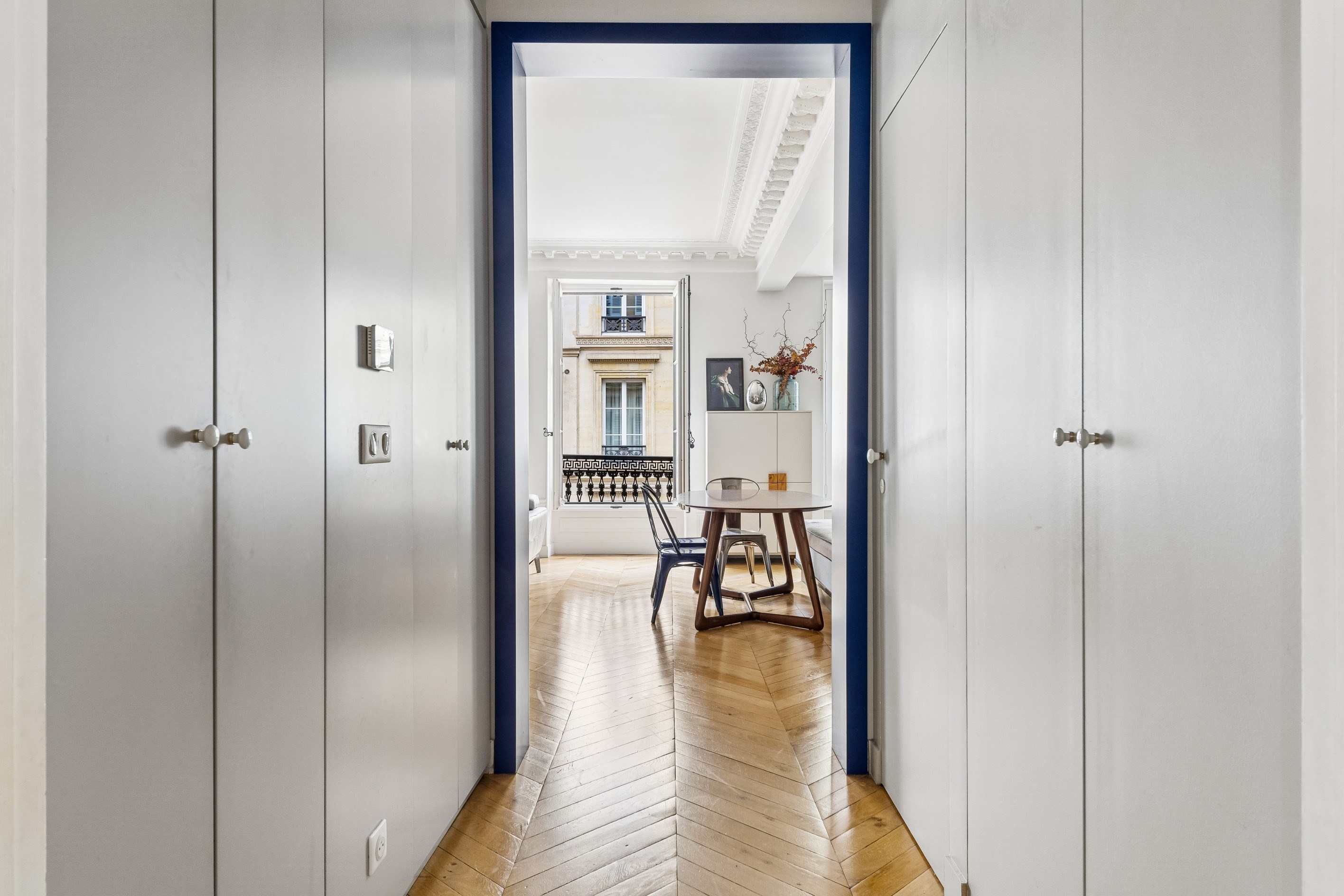 Sole agent Paris IX – Saint-Georges / Martyrs Ideally located near Place Saint-Georges and the shops of Rue des Martyrs, on the second floor with elevator of a very beautiful building, a 152m2 apartment (147,48m2 Carrez law) in perfect condition redone by an architect offering high-end services. It includes an entrance with custom-made storage, a large bright double living room with an open fitted and equipped kitchen, a master suite with bathroom, toilet and dressing room, two other bedrooms with integrated storage, a bathroom with walk-in shower, an office (or 4th bedroom), a laundry area and a separate bathroom. This light and bright apartment (southwest and east exposure), has been completely renovated by an architect with high quality materials and benefits from all the charm of the old. A cellar in the basement completes this property.