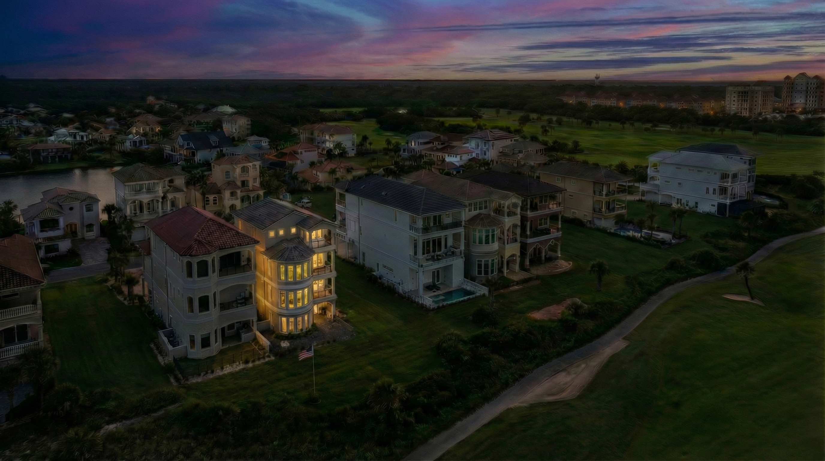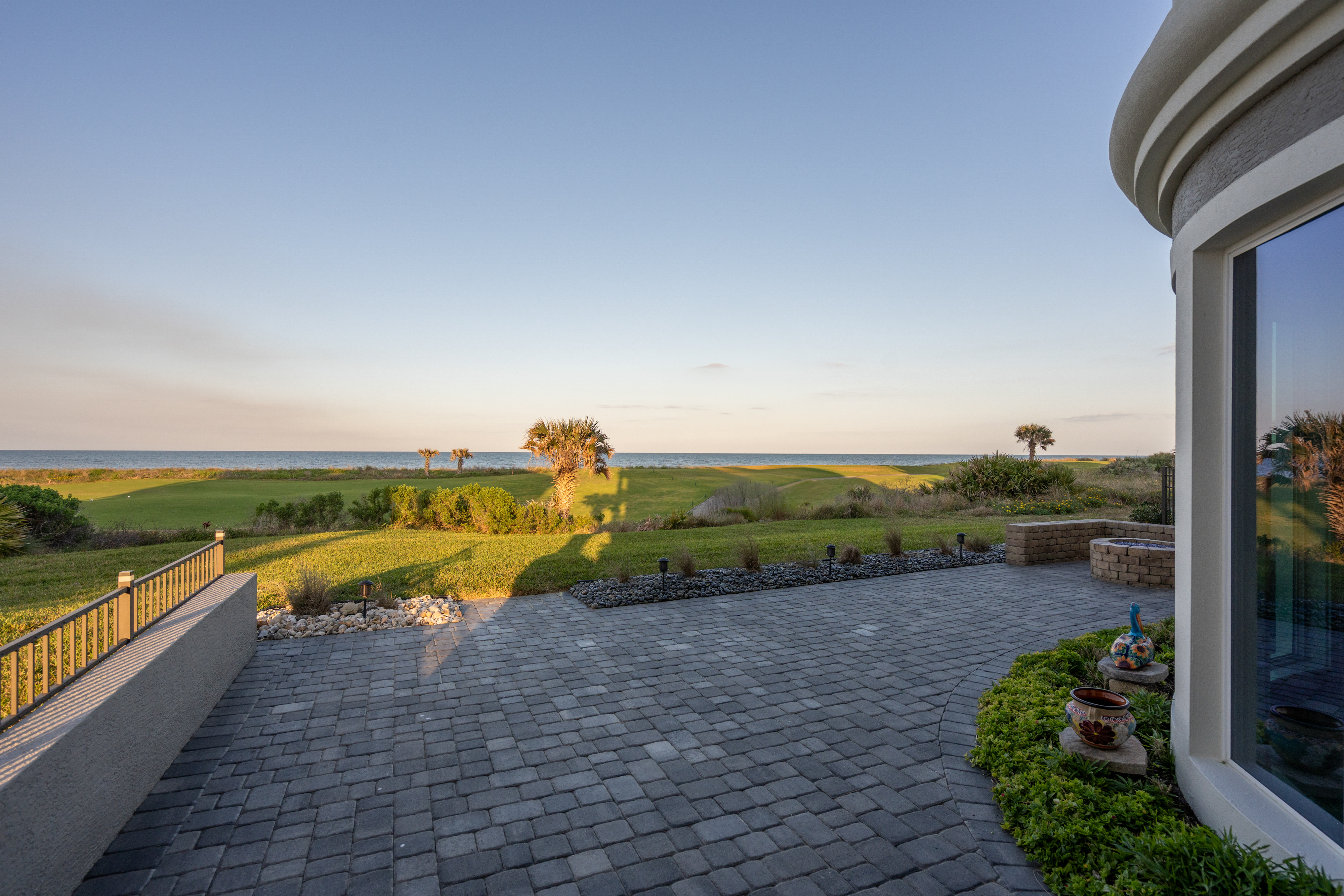 Welcome to 52 Hammock Beach Circle, the largest oceanfront residence on the 9th hole of the Jack Nicklaus designed Ocean Course, where modern luxury meets refined coastal elegance. This exceptional four level home offers over 6,600 square feet of thoughtfully designed living space, showcasing travertine flooring throughout and breathtaking views of both the Atlantic Ocean and championship golf course. The first level is designed for effortless entertaining, featuring a custom bar, a cozy living room with fireplace, and a unique media room. A whole-house generator, built in fire protection whole house sprinkler system, and whole-house water filtration system provide peace of mind, safety, and comfort. The second level hosts four spacious guest suites, including two oceanfront suites with a private balcony, along with a wet bar and a conveniently located laundry room ideal for guests or family living. The third level is an entertainer’s dream, showcasing an open-concept dining area, great room, and chef-inspired kitchen equipped with Sub-Zero appliances, a walk-in pantry, and a large central island. An additional living space, highlighted by a captivating half-moon design, features stunning custom windows and a built-in rounded bench an inviting retreat to relax while taking in serene ocean views. Occupying the entire fourth floor, the private owner’s suite offers panoramic ocean views, a dedicated office, and a private laundry room. The spa-inspired bath features a luxurious walk-in shower with a rain head and multiple body sprays, creating a true resort-style experience. An elevator provides seamless access to all levels, while the home’s Apple Home smart system integrates sound and automation throughout. The outdoor living space is equally impressive, offering both direct oceanfront access and sweeping golf course views. Enjoy al fresco dining at the outdoor cooking center, relax by the firepit on the brick paver deck, or entertain against the backdrop of ocean breezes. Just steps away is a private neighborhood pool, reserved exclusively for residents, adding an extra layer of convenience and luxury. Located within a well-maintained village where landscaping and irrigation are included in the HOA, this home offers effortless, low-maintenance living. Optional membership to Hammock Beach Golf Resort & Spa allows access to world-class amenities, including the Jack Nicklaus-designed Ocean Course, the Tom Watson–designed Conservatory Course, a 91,000-square-foot pool complex with lazy river and water flume, eight dining venues with ocean views, a luxury spa, and award-winning tennis and pickleball facilities. Residents also enjoy a state-of-the-art fitness center and a lifestyle recognized among the world’s finest resort communities. 52 Hammock Beach Circle is a rare offering where oceanfront living, championship golf, and modern sophistication converge to create the ultimate coastal lifestyle.