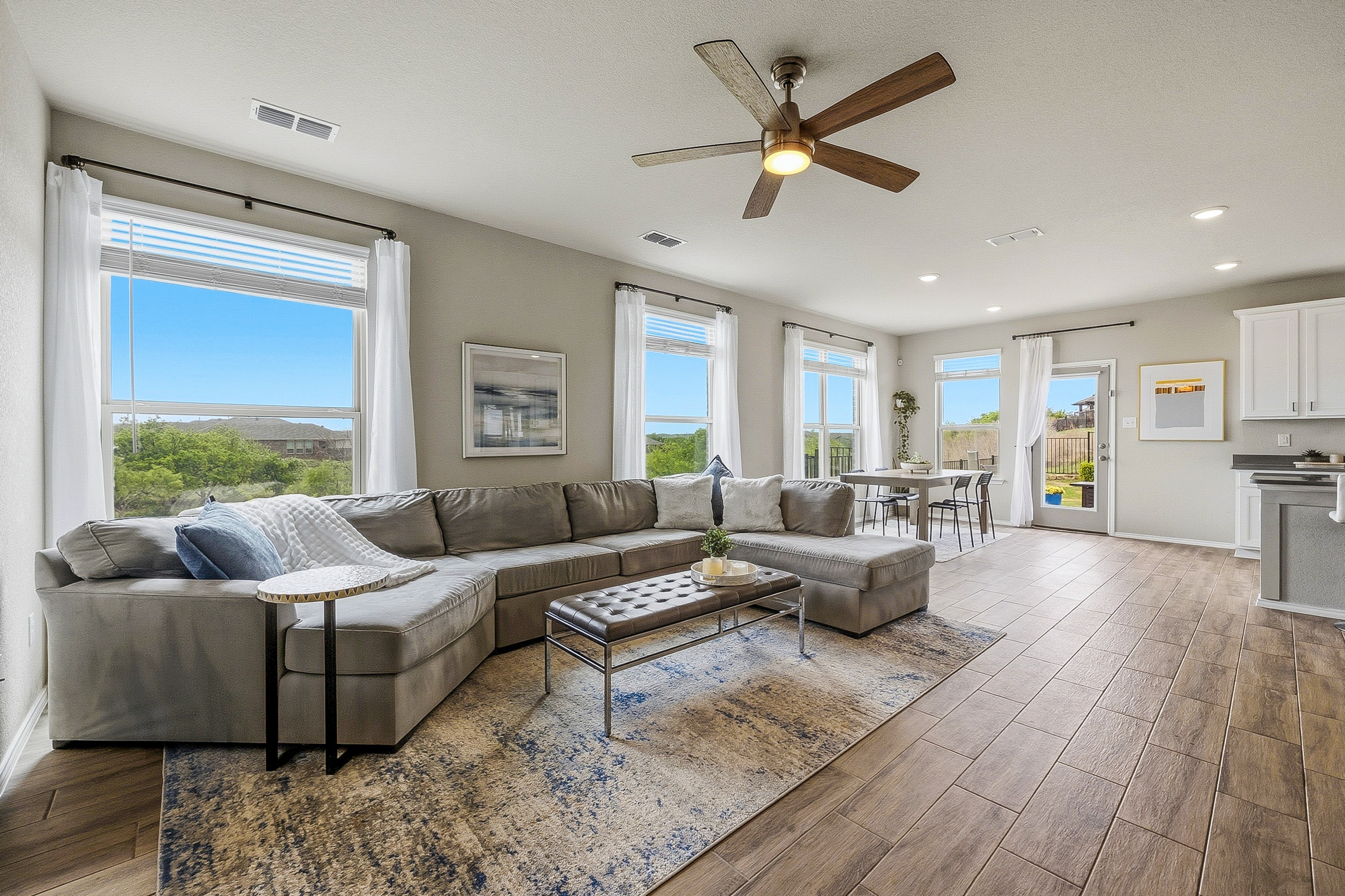 ONE-OF-A-KIND BLUFF RETREAT WITH SPECTACULAR 180° VIEWS — THE ONE YOU’VE BEEN WAITING FOR!Perched at the end of a quiet cul-de-sac on an oversized premium lot in sought-after Palmilla Springs, this STUNNING 2022-built home delivers panoramic bluff views that truly stop you in your tracks — from sunrise to sunset.Designed for the way people live today, this light-filled, modern home offers an open, effortless flow with FOUR SPACIOUS BEDROOMS, FOUR BATHS, a dedicated office (or optional 5TH BEDROOM), media-game room, and a cozy library alcove — giving everyone their own space while still feeling connected.Walls of windows flood the home with natural light and frame the breathtaking views, creating a bright, uplifting atmosphere throughout. With two expansive living areas — one up and one down — the layout offers incredible flexibility for entertaining, relaxing, or hosting guests with ease.The main-level primary suite is a true private retreat, while a SECOND FULL ENSUITE UPSTAIRS provides rare flexibility for multi-generational living or long-term guests.Step outside and it only gets better — enjoy direct access to over three miles of scenic walking and jogging trails right from your backyard, plus a nearby dog park and playground just steps away. Award winning charter school is also a neighborhood plus. Whether it’s morning coffee overlooking the bluff or evenings on the patio grilling with a view — this is indoor-outdoor living at its best.Built with over $30K in thoughtfully selected upgrades, this energy-efficient home offers incredible versatility, abundant storage, and room to create your dream backyard oasis — including space for a pool, spa, and gourmet outdoor grilling kitchen.UNBEATABLE LOCATION - minutes to I-30, 820, and I-20, putting you close to top shopping, dining, live entertainment, and the Cultural District - with easy access in every direction.THIS IS MORE THAN A HOME — IT’S A VIEW, A LIFESTYLE, AND A RARE OPPORTUNITY.