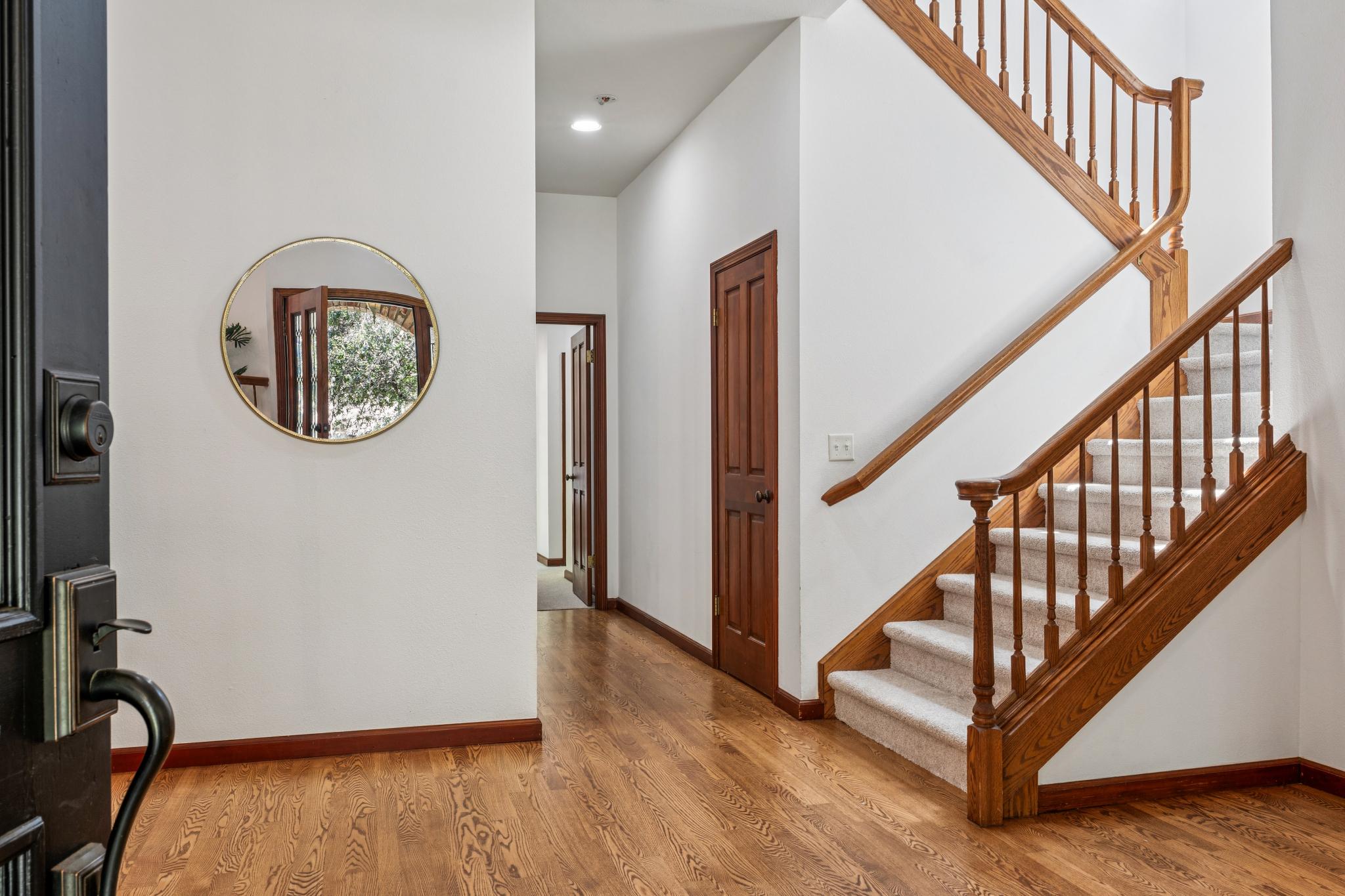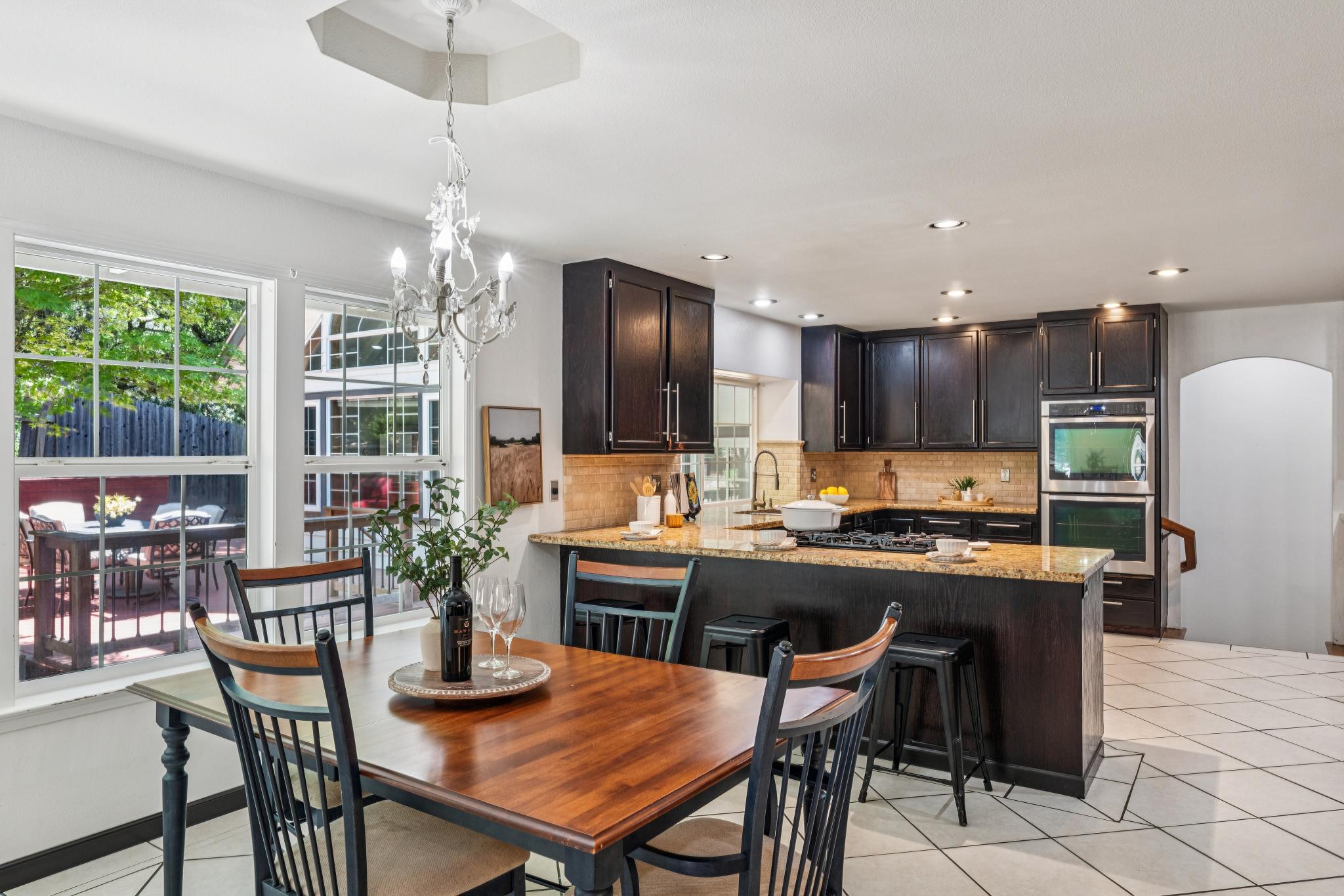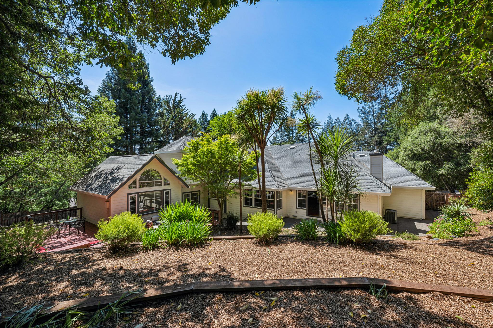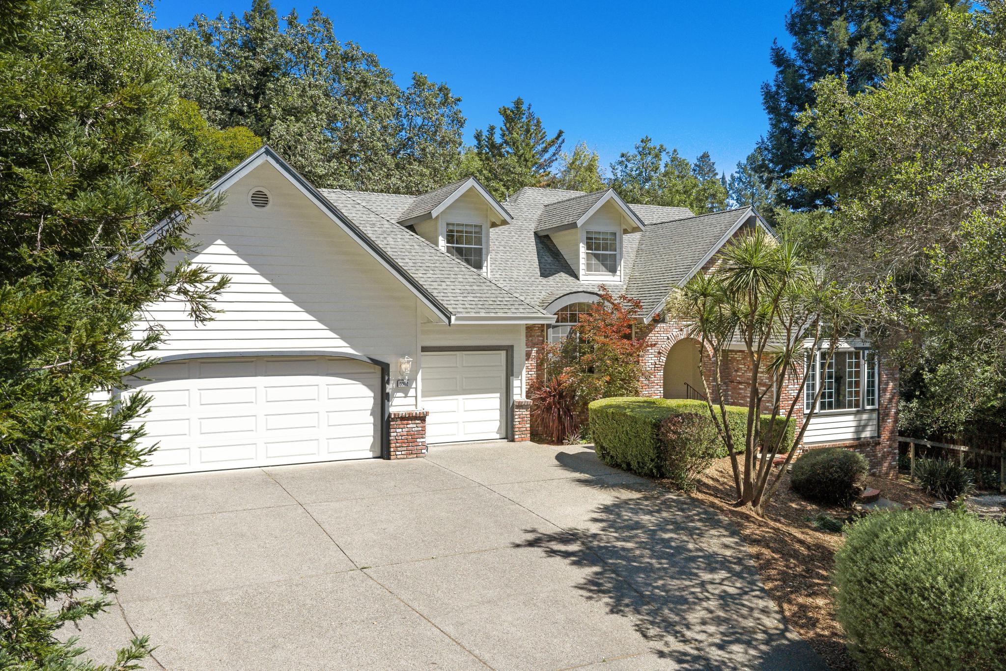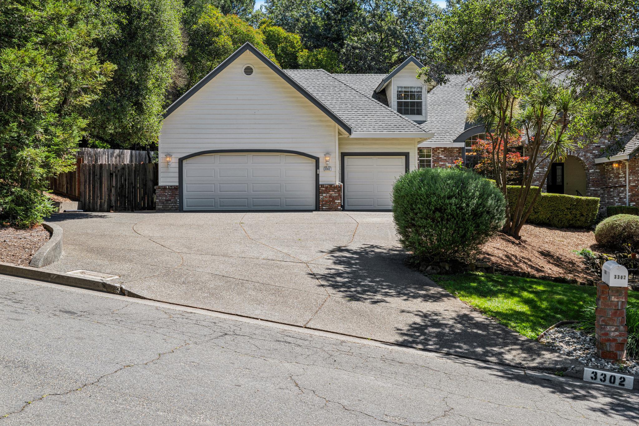 Elegant, architecturally interesting home in Northeast Santa Rosa. Set on a beautifully landscaped, private half-acre lot, this 3,247± sq ft home offers 4 bedrooms, 2.5 bathrooms, and a 3-car garage. Classic hardwood floors flow throughout the main level, complemented by brand-new carpet in additional rooms and recessed lighting across both levels. The spacious main-level primary suite features a large walk-in closet, vaulted ceilings, and updated bathroom with dual vanities and a vessel tub. The well appointed kitchen includes solid stone counters, 5-burner gas stove, double ovens, and a built-in desk nook beside an integrated informal dining area. Just off the kitchen, the family room showcases a brick gas fireplace, built-ins and timeless french doors that open to the expansive backyard. Enjoy quiet evenings under Sonoma County’s Mediterranean climate or host outdoor dinner parties with ample space on the deck and patio, all surrounded by mature landscaping with automatic irrigation. Upstairs, you’ll find 3 additional bedrooms and a stylishly updated bathroom with floating dual sink vanities. Abundant storage space throughout the home including an oversized laundry room with folding counter & cabinetry, multiple closets & more. The large driveway offers plenty of parking in addition to the 3-car garage that boasts a dedicated area with built-in work bench and drawers for all your tools. 3302 Jeremy is located just minutes from award-winning Hidden Valley schools, Howarth Park, major hospitals (2.5 mi), Oliver’s Market (1.5 mi), Starbucks (2 mi), Hwy 101 entrance (2.4 mi), and the STS Airport (7.7mi). Experience all Sonoma County has to offer with easy access to wine country, hiking trails in Annadel State Park’s 5,000 acres of rolling hills and Spring Lake/Howarth Park, as well as world-renowned fine-dining restaurants, wineries & breweries.