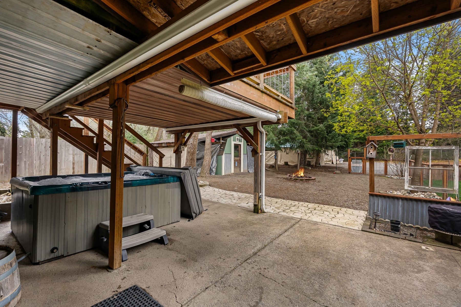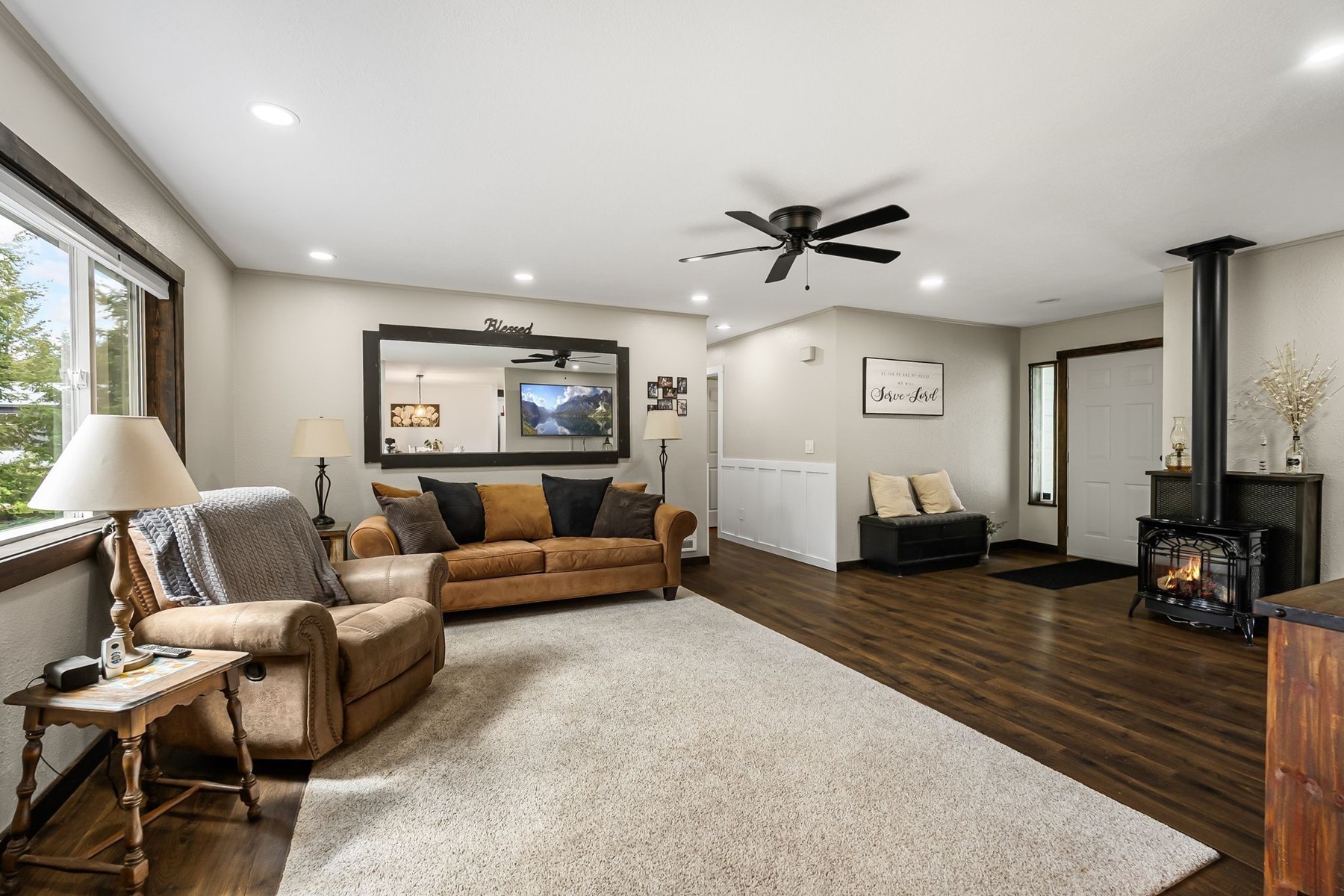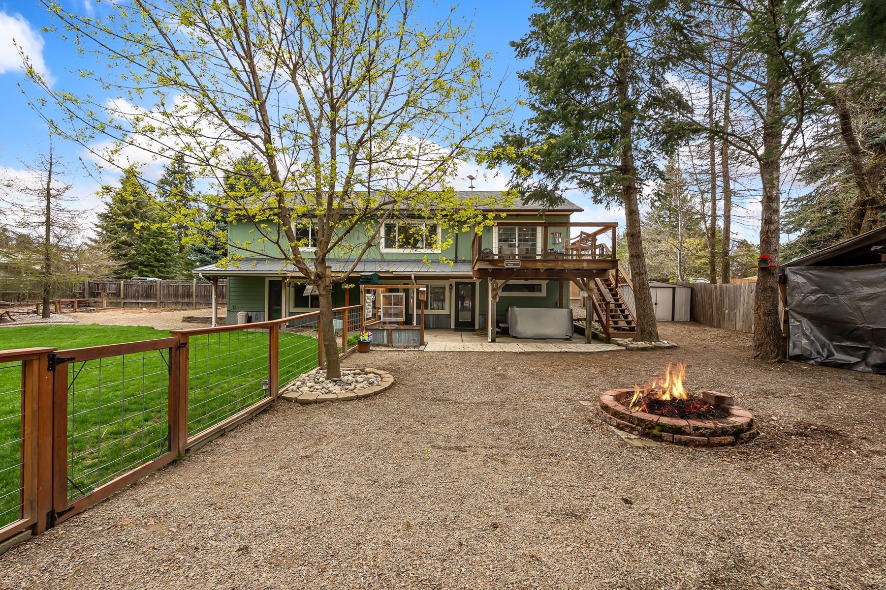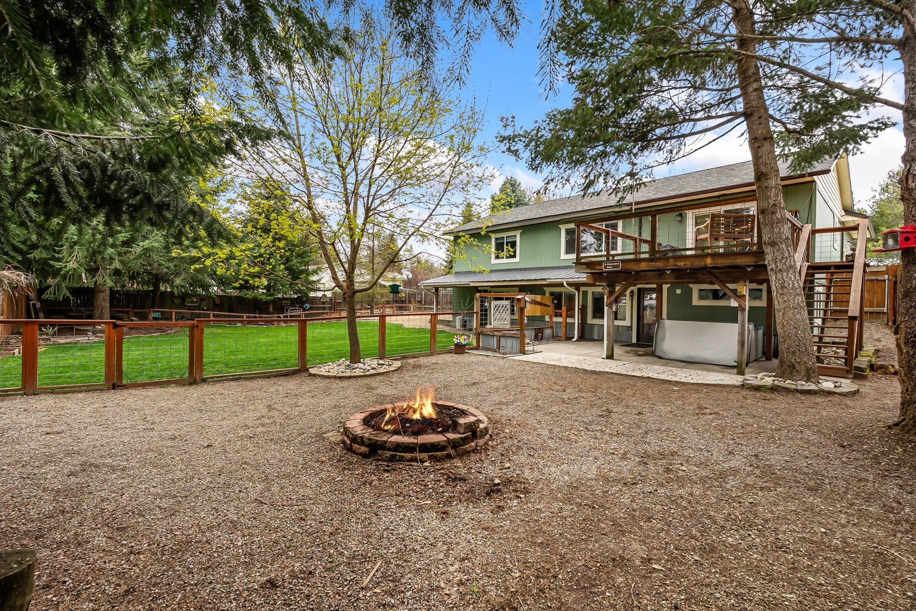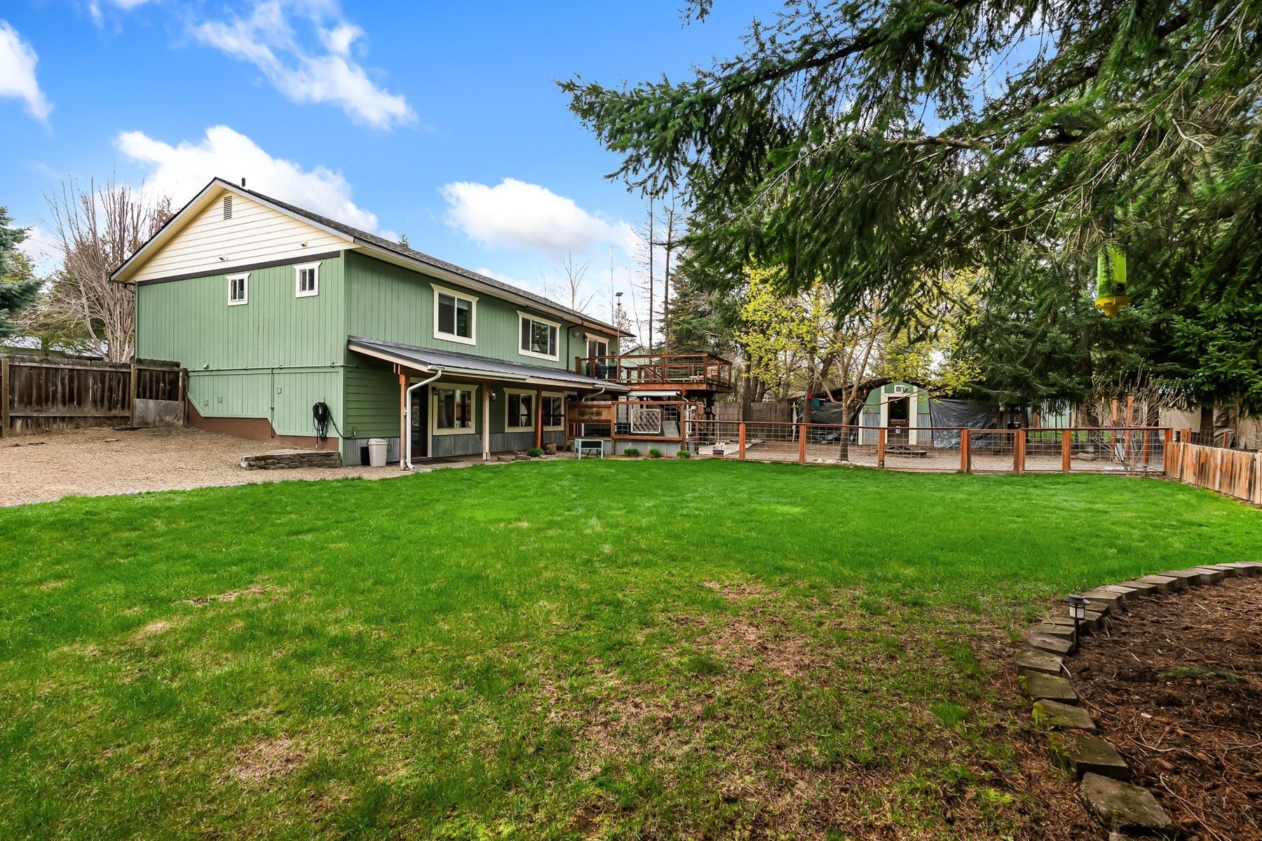 Welcome to this beautifully updated 2,632 sq ft home in Sagle, Idaho--offering the perfect blend of comfort, flexibility, and opportunity. With 4 bedrooms and 3 bathrooms, this thoughtfully designed property features two fully functional living spaces, making it ideal for multi-generational living, rental income, or extended guest accommodations. The main level spans 1,316 sq ft and includes 3 bedrooms and 2 bathrooms, along with a full kitchen, dining area, and inviting living room. Thoughtful custom touches throughout--such as interior wainscoting, unique sliding barn doors, and real wood flooring in the bedrooms--add warmth and character. Step out onto the deck to enjoy the peaceful surroundings--perfect for entertaining or relaxing. The fully finished 1,316 sq ft daylight basement is a standout feature, offering a complete second living space. It includes 1 bedroom, 1 bathroom, a huge walk-in closet, craft room, and its own full kitchen, dining area, and living room. With separate, self-sufficient living quarters, this lower level presents a rare opportunity for rental income, an in-law suite, or private space for extended family. Outside, the property truly shines with beautifully landscaped front and back yards designed for both enjoyment and functionality. Relax year-round in your private hot tub, while the fully fenced and cross-fenced yard provides a secure and versatile setup for pets. A small shop offers the perfect workspace for hobbies or projects, and multiple carports provide ample covered parking. In addition, the rear of the property--accessed via an alleyway--offers generous space for RV and trailer storage, a rare and highly desirable feature. Whether you're looking to offset your mortgage with rental potential or create a comfortable setup for multi-generational living, this home offers versatility that's hard to find in today's market--all in a desirable North Idaho location.