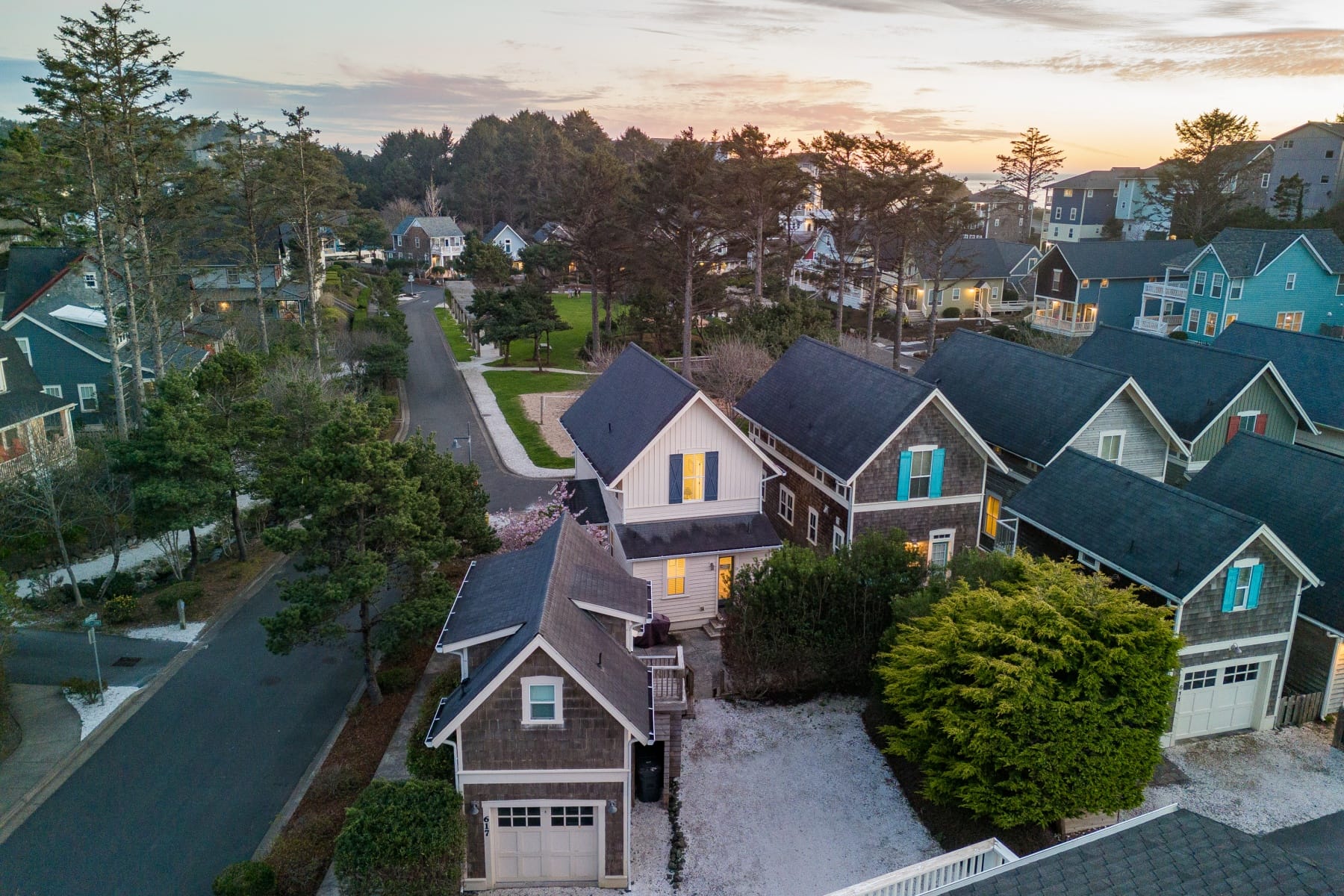 Experience the quintessential Oregon Coast lifestyle at this stunning Nantucket-style cottage located in the premier community of Olivia Beach. This home is perfectly positioned to offer both a private sanctuary and a high-performing investment opportunity, boasting a rare and transferable Short-Term Rental (STR) outright use. In a market where such permits are a Golden Ticket, this property allows you to generate significant income that can pay for the home while providing you the flexibility to use it whenever you wish. With the prime coastal rental season just beginning, a savvy buyer can secure the upcoming peak-season revenue immediately, gaining a massive financial head start that would be lost by waiting until later in the year. The home's layout is expertly designed for the modern traveler, featuring two spacious en-suite bedrooms upstairs for maximum privacy and a bright, open-concept living space on the main level. Outdoor living is a highlight, with a charming covered front porch that overlooks the vibrant community park'complete with sand volleyball, a playground, and fire pits'and a secluded rear courtyard perfect for BBQs after a day in the sun. Beyond the main house, the detached garage includes a versatile flex space, offering an ideal solution for an owner's lockout, home office, or guest overflow. Unlike many other homes here, this garage is not shared, creating a private feel for the entire property that you'll appreciate when you see in person. Situated just steps from a community trail, you have direct access to one of the prime surf beaches in Lincoln City, making this the ultimate coastal retreat for owners and renters alike.