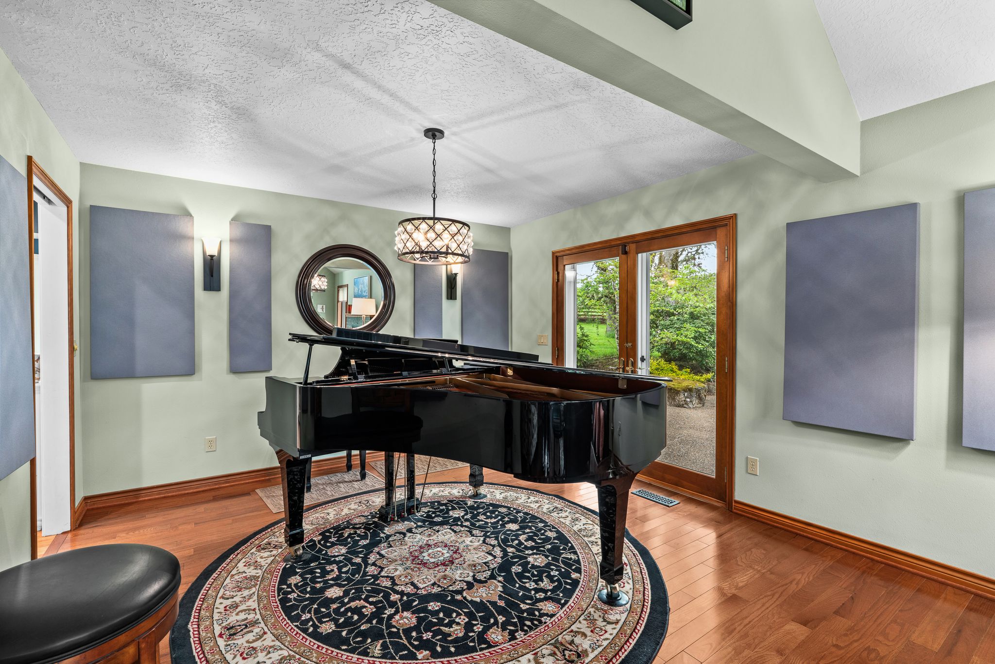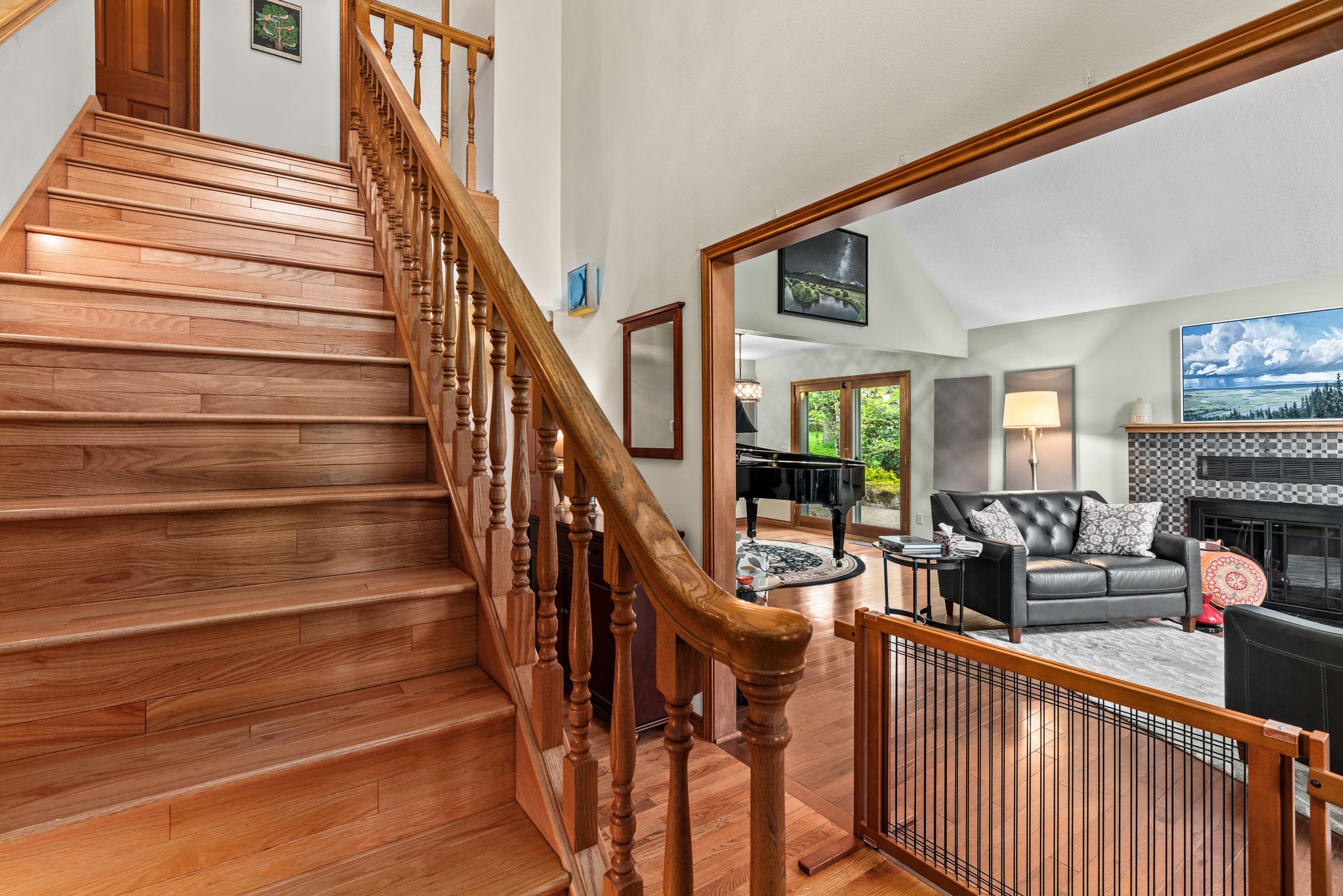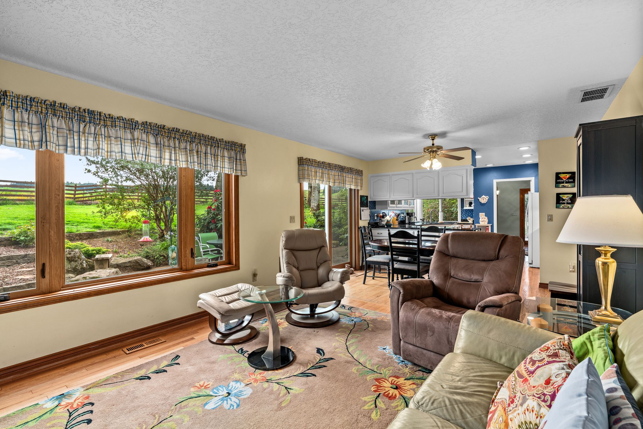 Private 5-acre old-growth oak savanna property with scenic views, pond, and park-like grounds. Tastefully updated 3,020 SF home featuring 4 bedroom, 3.5 bathroom, hardwood floors, granite countertops, and private main-level bedroom suite with bath and bonus room. Recent upgrades include hardwood floors 2017, new roof 2018, solar panels 2022, and heat pump 2025. Solar panels and energy efficient heat pump features offers utility bill savings. Well maintained and move-in ready. Peaceful setting with ambiance and privacy.