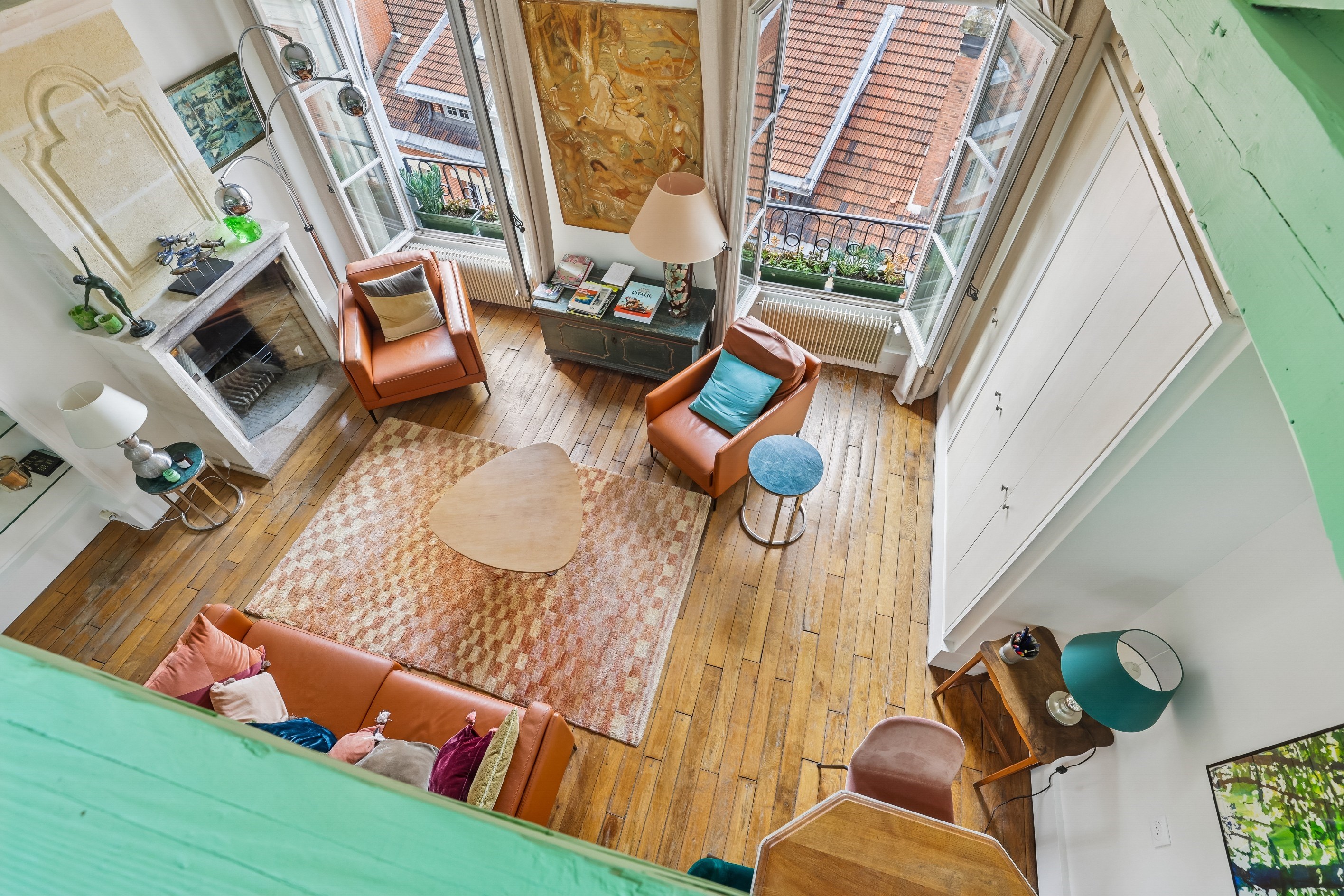 Located in the heart of the historic Marais district, just steps from the legendary Place des Vosges, this exceptional apartment occupies the 4th and top floor of a beautiful 17th-century building. This rare 95 m² Carrez property (115 m² of floor space) captivates with its authenticity and spectacular proportions (ceiling height of 3.80 m). Living Area: Spanning the width of the building and bathed in light (east/west exposure), it features a spacious 42 m² living room with a stone fireplace, a fully equipped kitchen with dining area, a pantry, and a laundry room. On the mezzanine, an office/TV lounge area completes this space. The sleeping area: Two spacious bedrooms, including a 20 m² suite, a bathroom, a shower room, and custom-built storage. Features: Absolute charm: Exposed beams, period hardwood floors, unobstructed views over the rooftops of Paris. Modern comfort: Air conditioning, total tranquility, perfectly maintained building. Appendix: A dry cellar. A prestigious address nestled among art galleries and gourmet shops. You’re sure to fall in love with it.