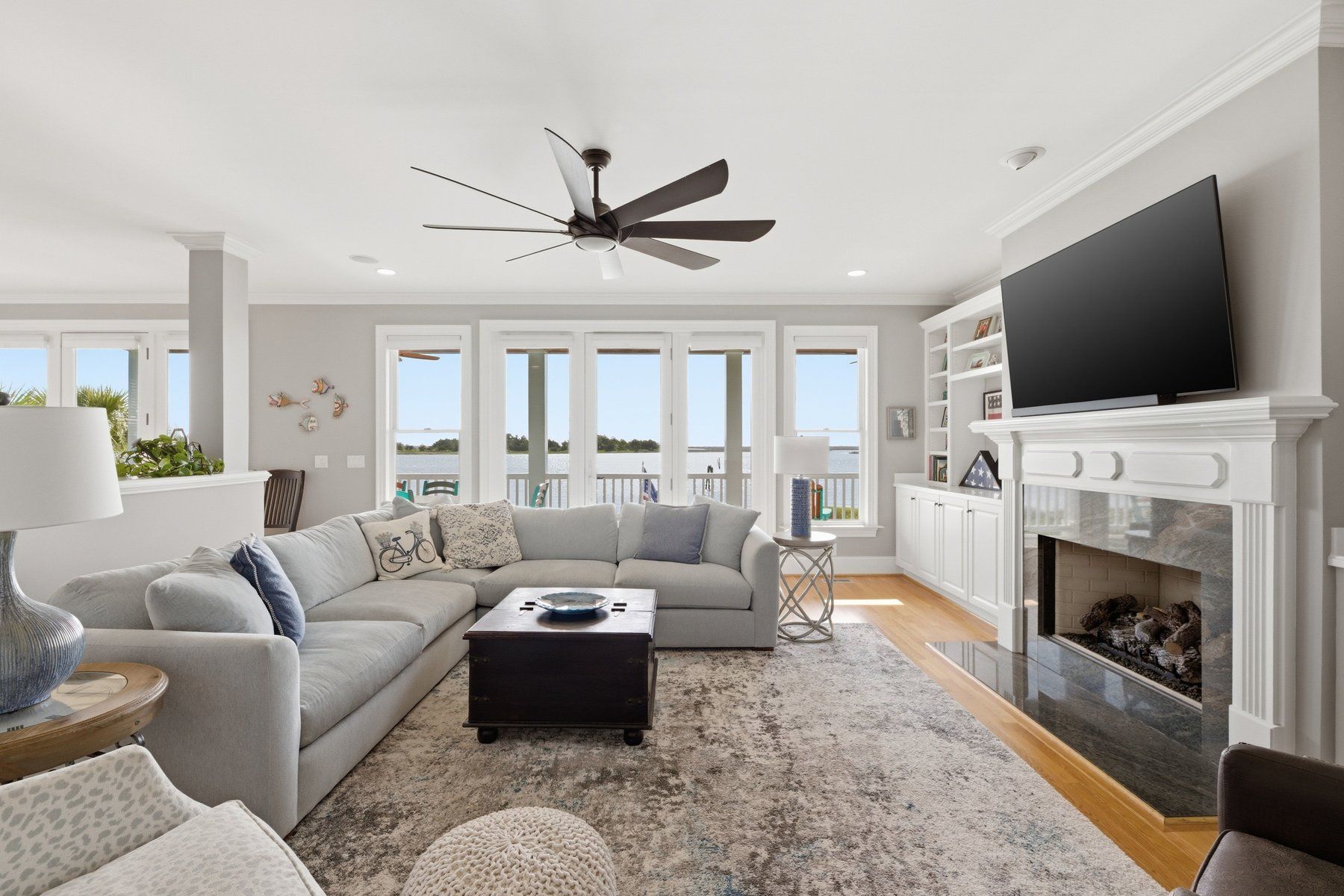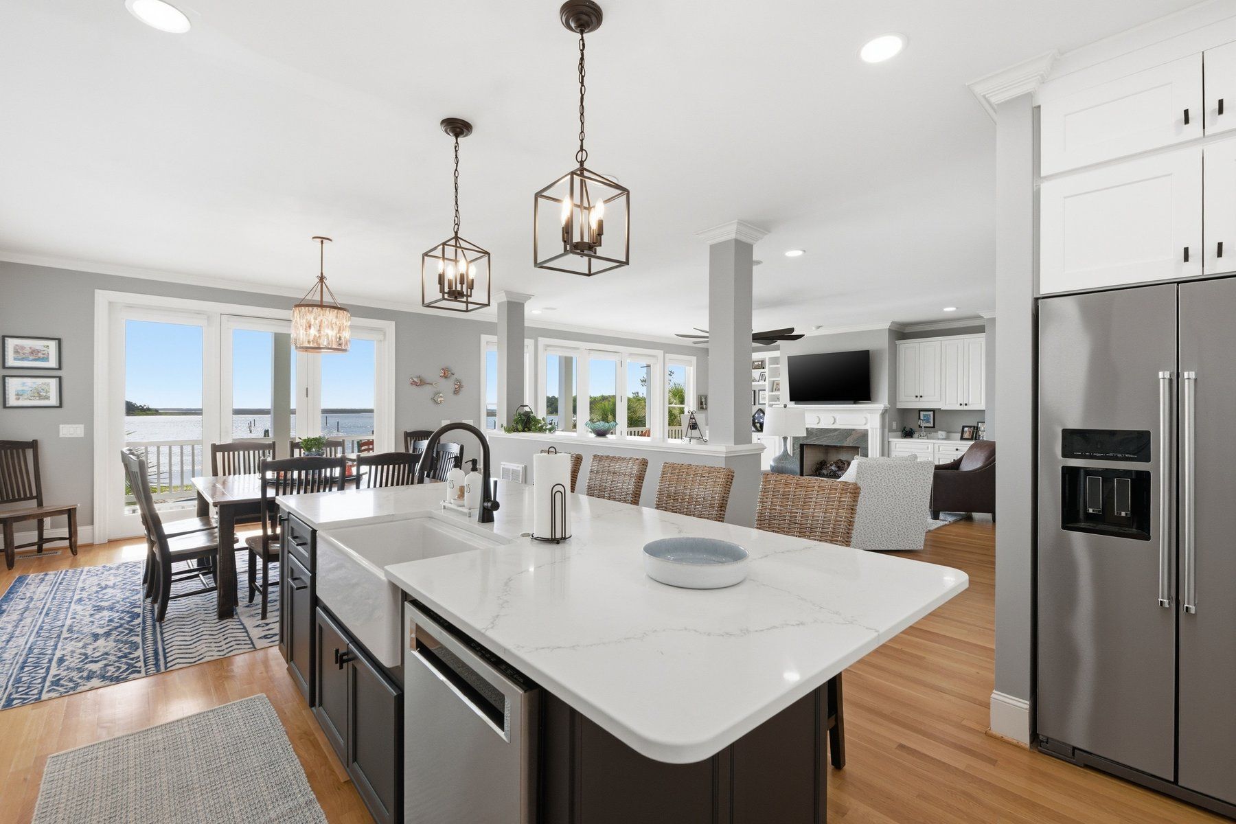 Rare Intracoastal front opportunity in Masonboro Harbour with a 32-ft boatslip in a protected marina. This exquisite 5BR/6.5BA waterfront residence is masterfully designed to capture sweeping water views, with expansive glass, multiple waterfront living spaces, and seamless indoor-outdoor flow. A luxurious main-level primary suite with fireplace and private porch anchors the home, complemented by a beautifully updated chef's kitchen and elegantly renovated baths. Four upstairs guest suites--two directly waterfront--offer refined comfort, each with private baths. Recent enhancements include Trex decking and a hurricane-rated roof, while a ground-level game room, dual garages, and a plumbed attic for future expansion complete this exceptional offering.