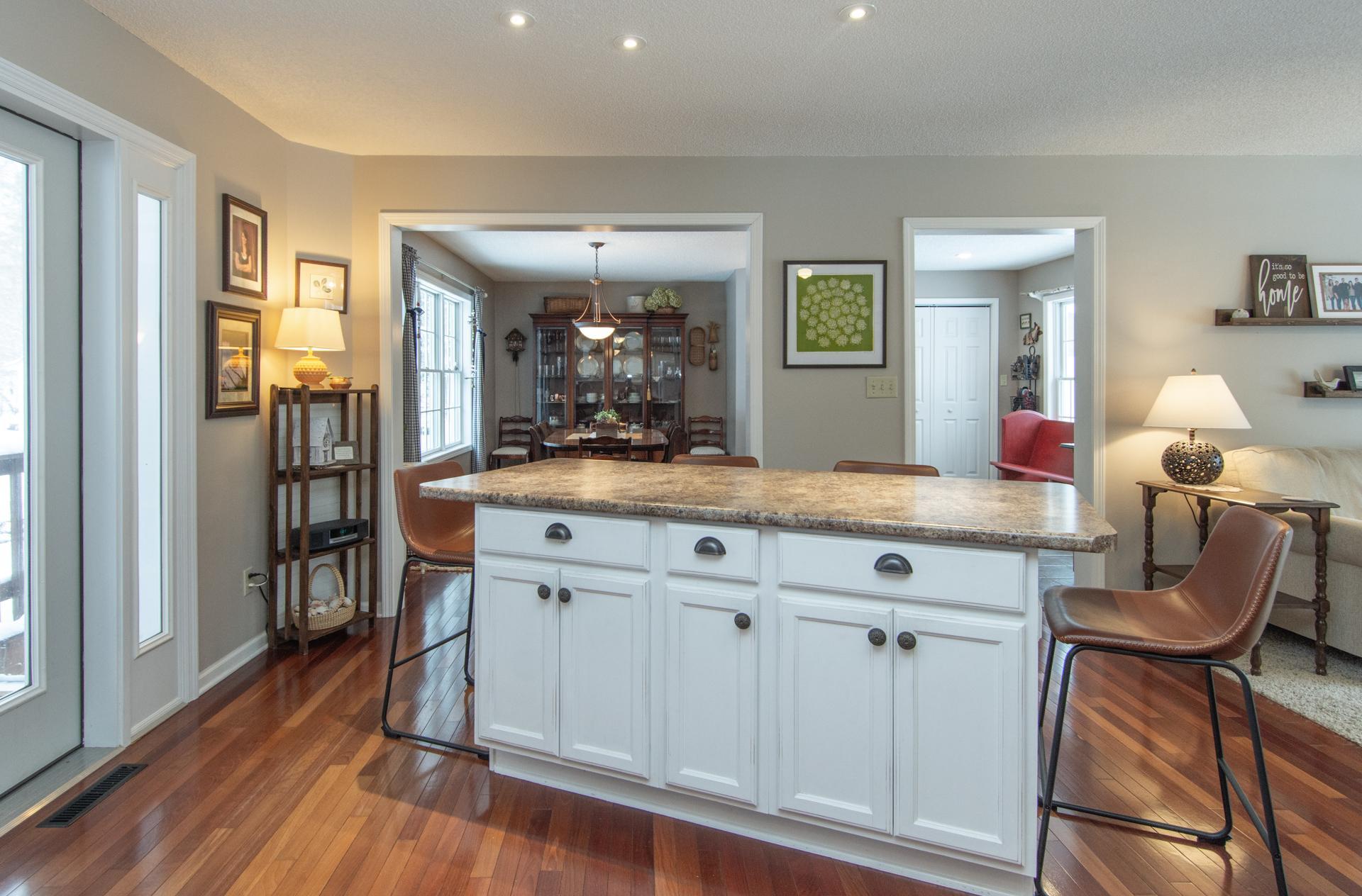 Set on a well-maintained 1-acre lot in Deerwood, this home is designed for comfortable, functional everyday living with a natural connection to the outdoors. The main level features Brazilian Cherry hardwood floors, a kitchen with island seating, separate dining area, and sliding doors leading to a screened porch for easy indoor-outdoor use. A welcoming living room, two bedrooms, full bath, and office or flex room complete the main level. A breezeway/mudroom connects to the attached insulated three-stall garage with workshop.The lower level includes a family room with gas fireplace, a bedroom with walk-in closet, 3/4 bath, laundry, and utility space.Outdoor features include an in-ground sprinkler system, garden area, storage shed, and backyard patio.Located near Serpent Lake access and minutes from Crosby’s shops, restaurants, CRMC, and the Cuyuna Mountain Bike Trails, this property offers a well-cared-for setting with access to year-round recreation.