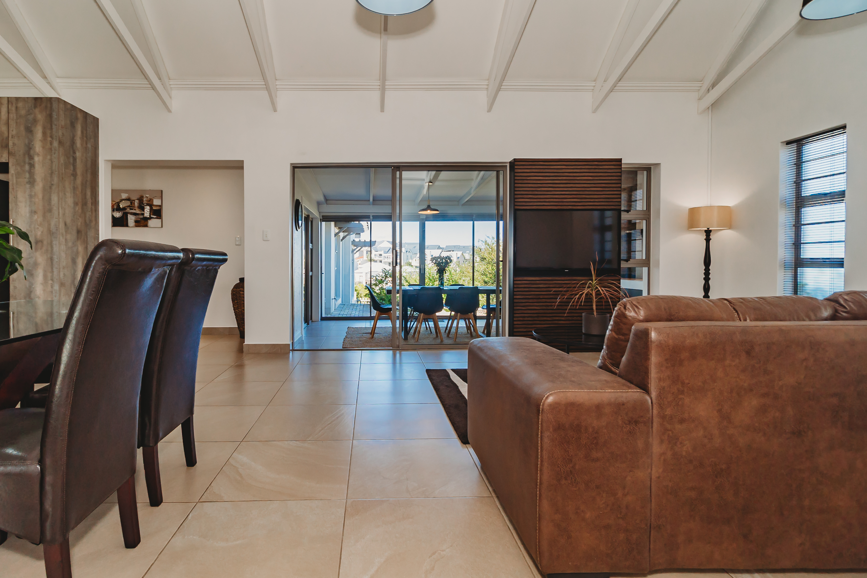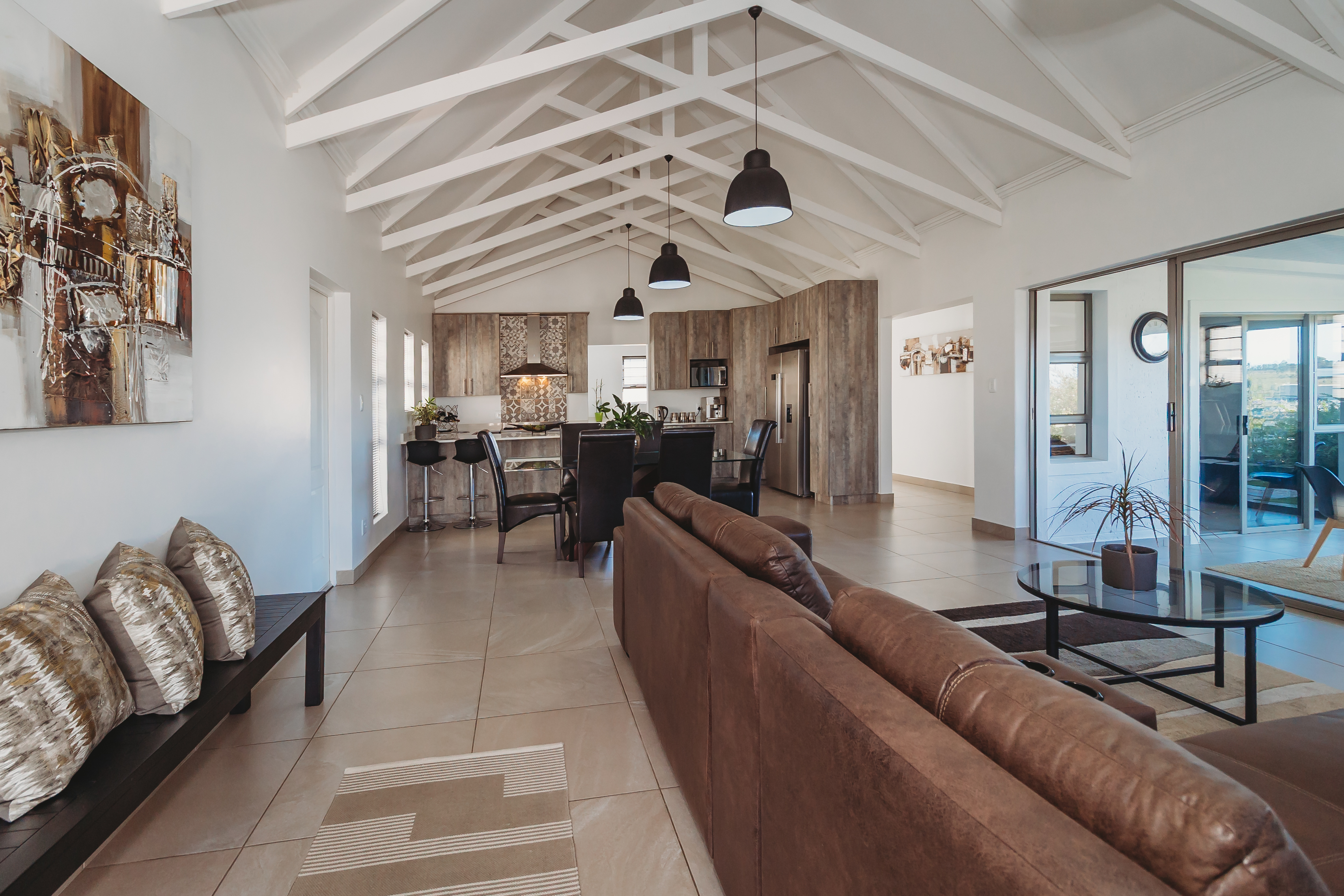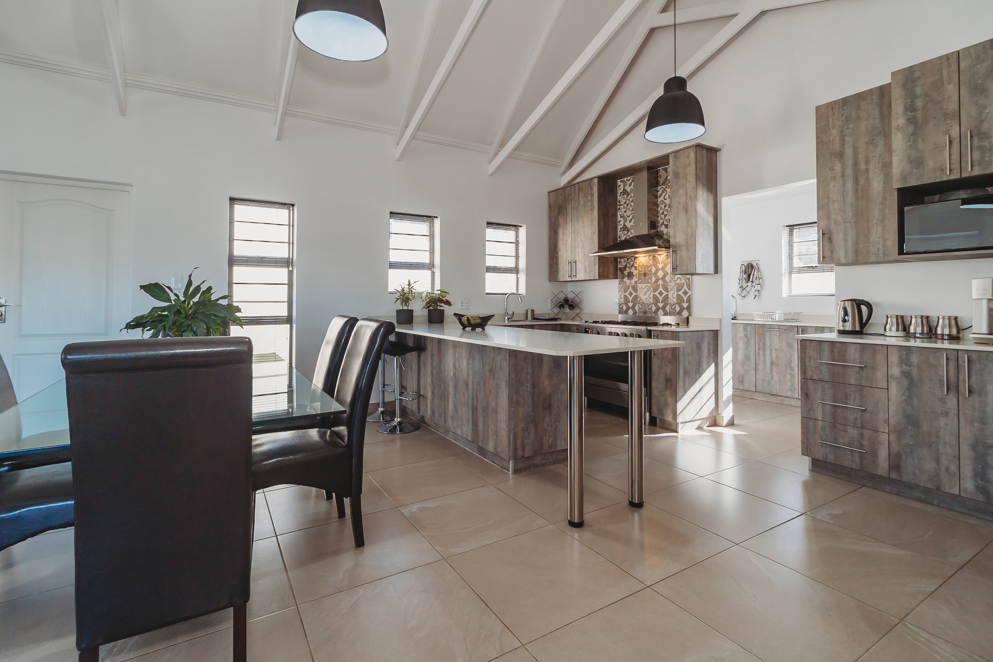 Positioned in the sought-after Blue Mountain Village—just minutes from top schools, major shopping centres, and the region’s stunning beaches. Designed with the modern family in mind, this stylish home offers the ideal balance of space, comfort, and privacy. The light-filled open-plan living area features high ceilings, exposed beams, and large-format tiled flooring, creating a contemporary yet welcoming atmosphere. At the heart of the home is a beautifully appointed designer kitchen, complete with a 900cm gas hob, electric oven, extractor fan, and prep bowl with a built-in water filtration system. A separate scullery provides space for three appliances, keeping the main living area sleek and uncluttered. Entertain effortlessly in the indoor braai room, fitted with a gas braai and sliding doors that open out to the garden—perfect for relaxed family living and year-round gatherings. Additional features include tinted windows, blinds throughout, a double carport, and an extra-wide, extra-long single garage. The home is equipped with an irrigation system, water tank with pressure pump, and a hybrid inverter system—offering both convenience and peace of mind. This is a home where modern living meets effortless convenience—an opportunity not to be missed.