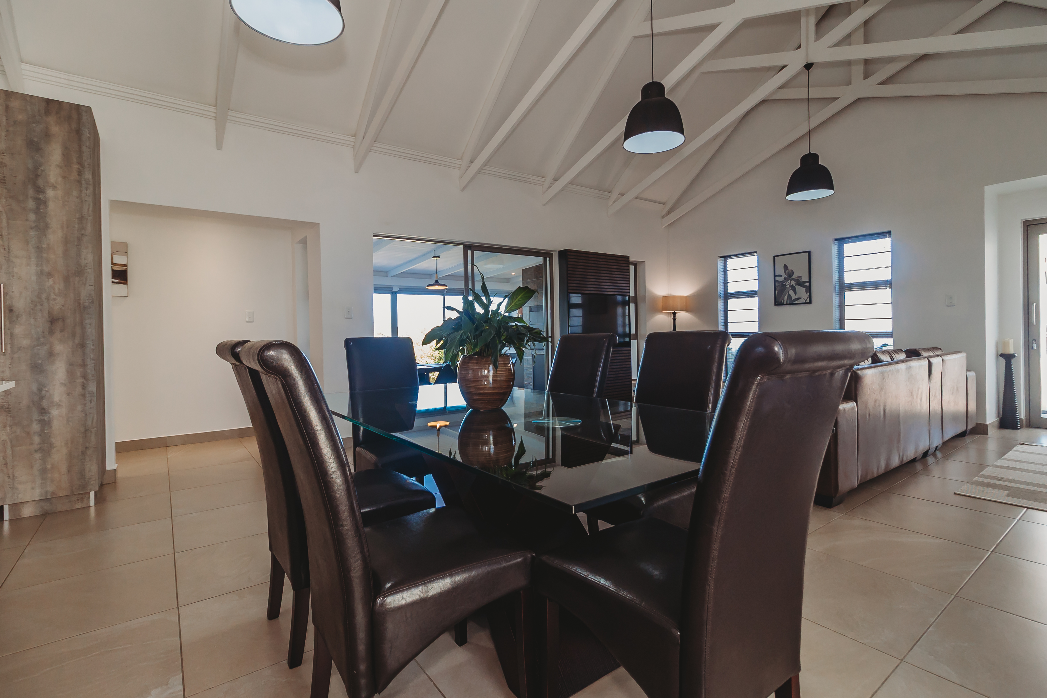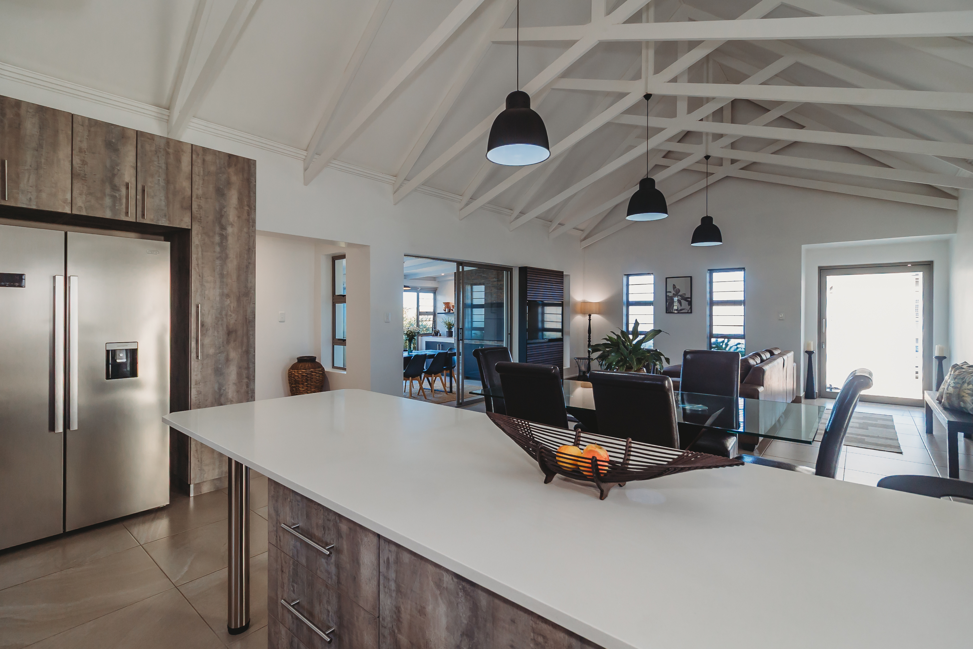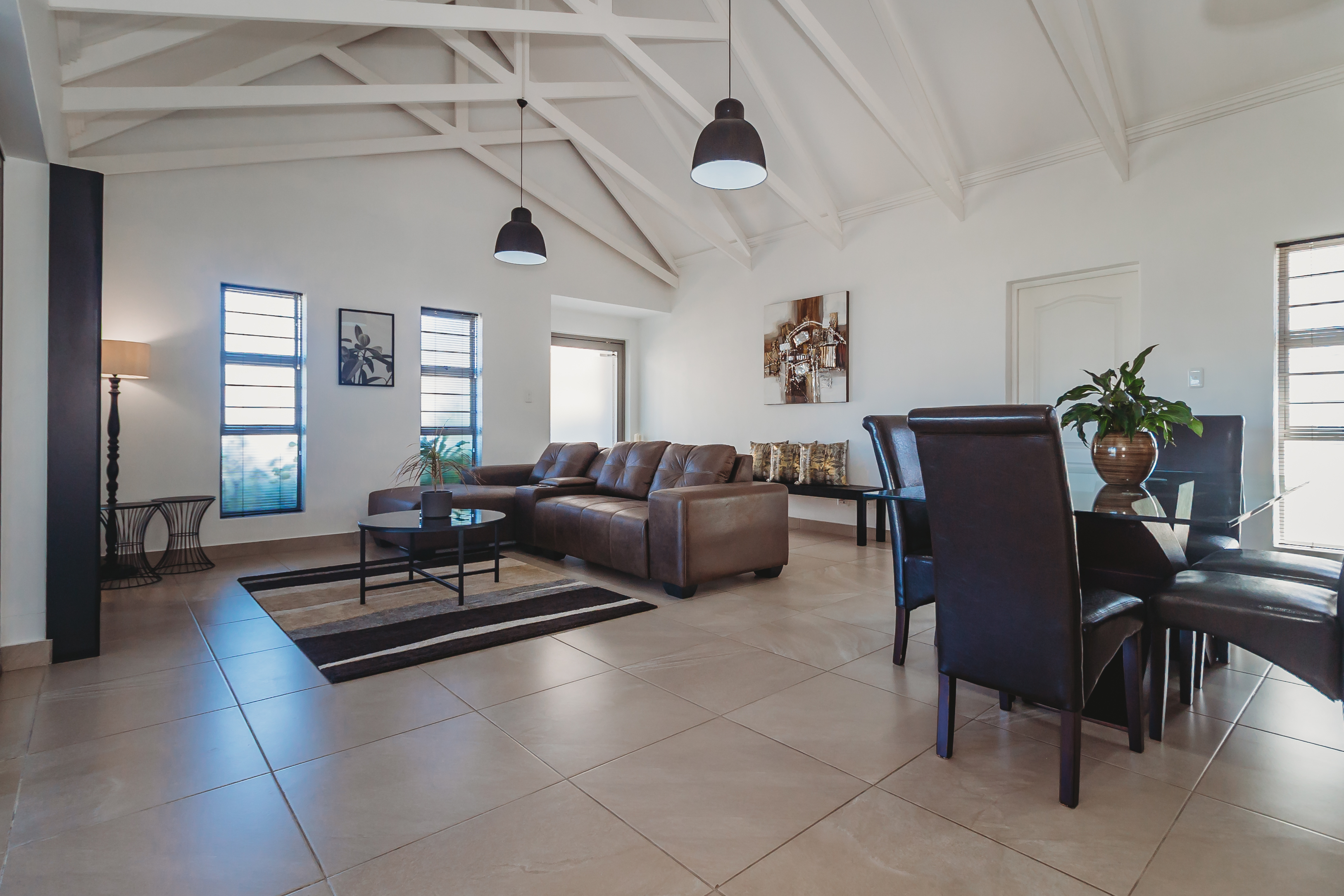 Positioned in the sought-after Blue Mountain Village—just minutes from top schools, major shopping centres, and the region’s stunning beaches. Designed with the modern family in mind, this stylish home offers the ideal balance of space, comfort, and privacy. The light-filled open-plan living area features high ceilings, exposed beams, and large-format tiled flooring, creating a contemporary yet welcoming atmosphere. At the heart of the home is a beautifully appointed designer kitchen, complete with a 900cm gas hob, electric oven, extractor fan, and prep bowl with a built-in water filtration system. A separate scullery provides space for three appliances, keeping the main living area sleek and uncluttered. Entertain effortlessly in the indoor braai room, fitted with a gas braai and sliding doors that open out to the garden—perfect for relaxed family living and year-round gatherings. Additional features include tinted windows, blinds throughout, a double carport, and an extra-wide, extra-long single garage. The home is equipped with an irrigation system, water tank with pressure pump, and a hybrid inverter system—offering both convenience and peace of mind. This is a home where modern living meets effortless convenience—an opportunity not to be missed.