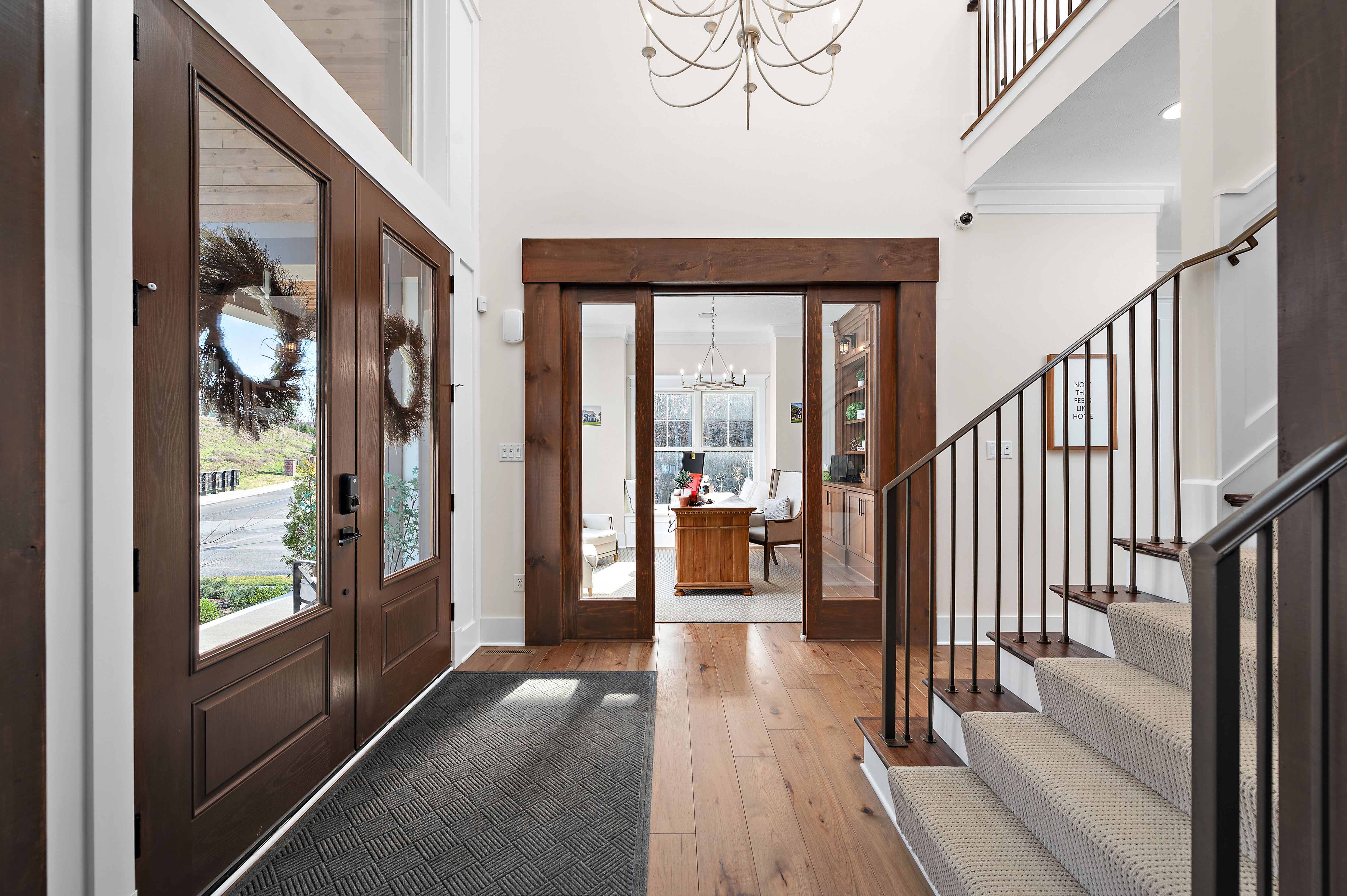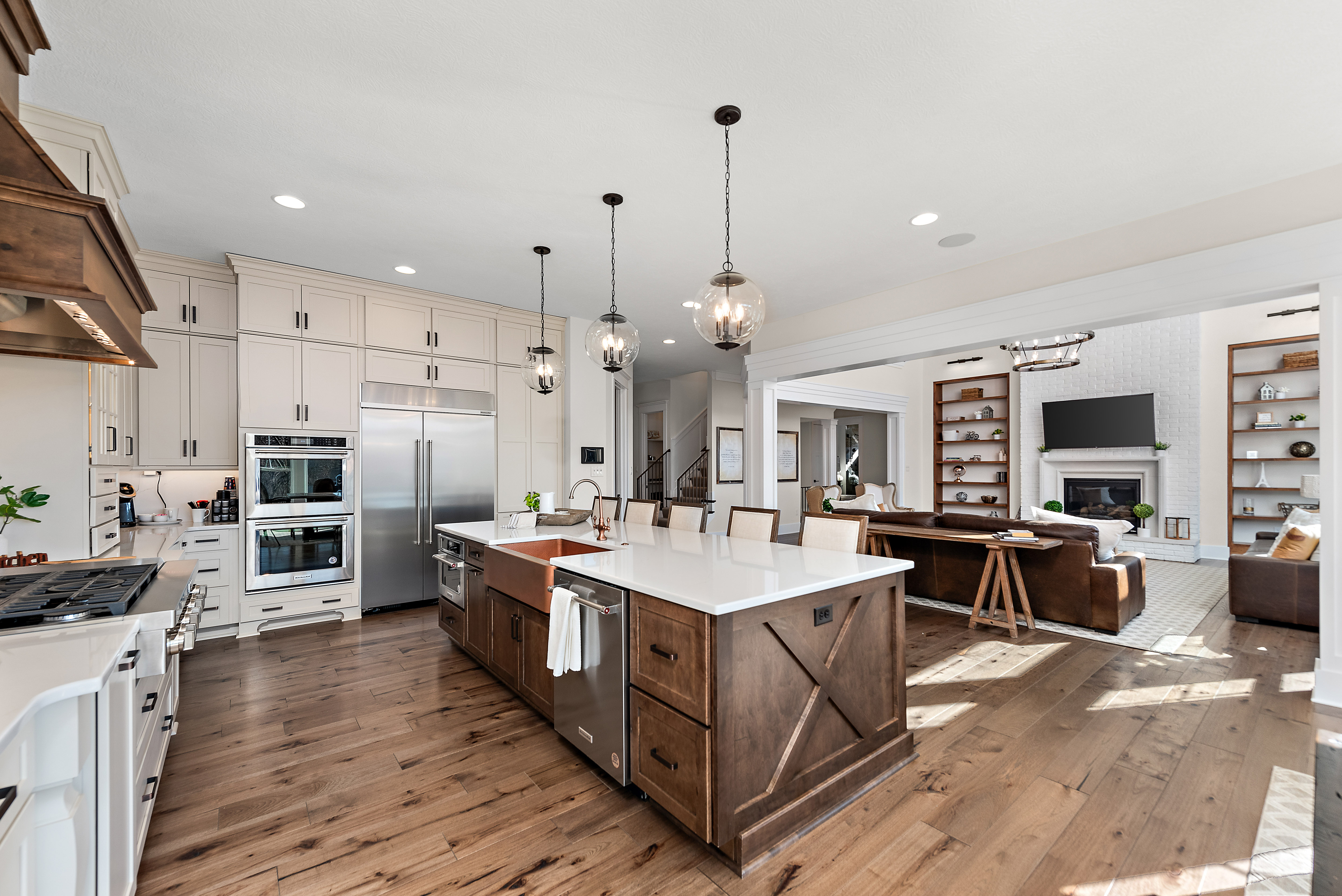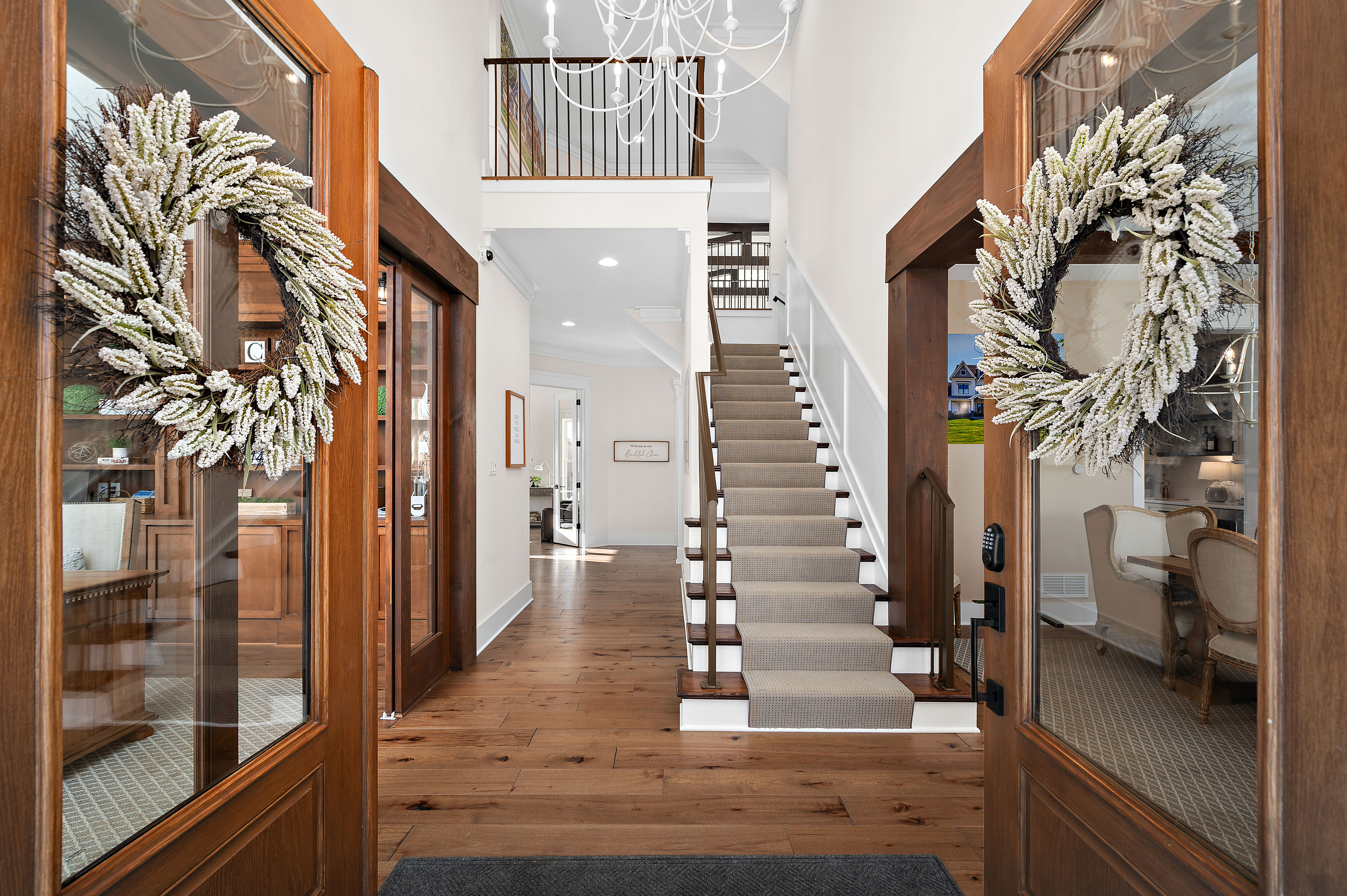 Originally selected as the community’s showcase model, Havenport reflects the highest expression of design and craftsmanship within the neighborhood. Thoughtfully appointed across four finished levels, this residence blends refined architectural detail with welcoming spaces designed for gathering and everyday living.The main level centers around a statement kitchen featuring Calacatta Miraggio Gold countertops and backsplash, a 48” KitchenAid range and refrigerator, custom hood, copper farmhouse sink, expansive island, butler’s pantry, beverage refrigeration, and layered designer lighting. Rich hickory flooring flows throughout, connecting the great room with its fireplace focal point, a private office with custom built-ins, flex space, and a sunroom overlooking the outdoor living area.Upstairs, the owner’s suite offers a private retreat complete with a sitting area, fireplace, wet bar, custom cabinetry, and a spa-inspired bath featuring a freestanding soaking tub, vessel sinks, rainfall shower, and curated tile selections. Additional bedrooms are generously sized and supported by well-appointed en suite and Jack & Jill baths.The third floor expands the living space with a full lounge, bar area, and additional bath; ideal for guests, recreation, or private retreat space.The finished lower level continues the home’s elevated design with a large gathering area, fireplace, custom bar with premium countertops, beverage refrigeration, dishwasher, and ample entertaining space, plus an additional full bath.Outdoor living is equally intentional. A covered porch with a wood-burning fireplace, outdoor kitchen with built-in grill and refrigeration, and thoughtfully selected exterior finishes create a seamless extension of the interior.As the original showcase residence, Havenport was curated with premium upgrades, architectural lighting, layered textures, and custom details throughout, representing a rare opportunity to own one of the most comprehensively appointed homes within the community.Located in Cranberry Township accessible to the local private and public schools, the growing amenities within Cranberry and Wexford, and with convenient access to major roadways, Pittsburgh International Airport, and downtown Pittsburgh.Havenport is where elevated design meets the way you truly live.